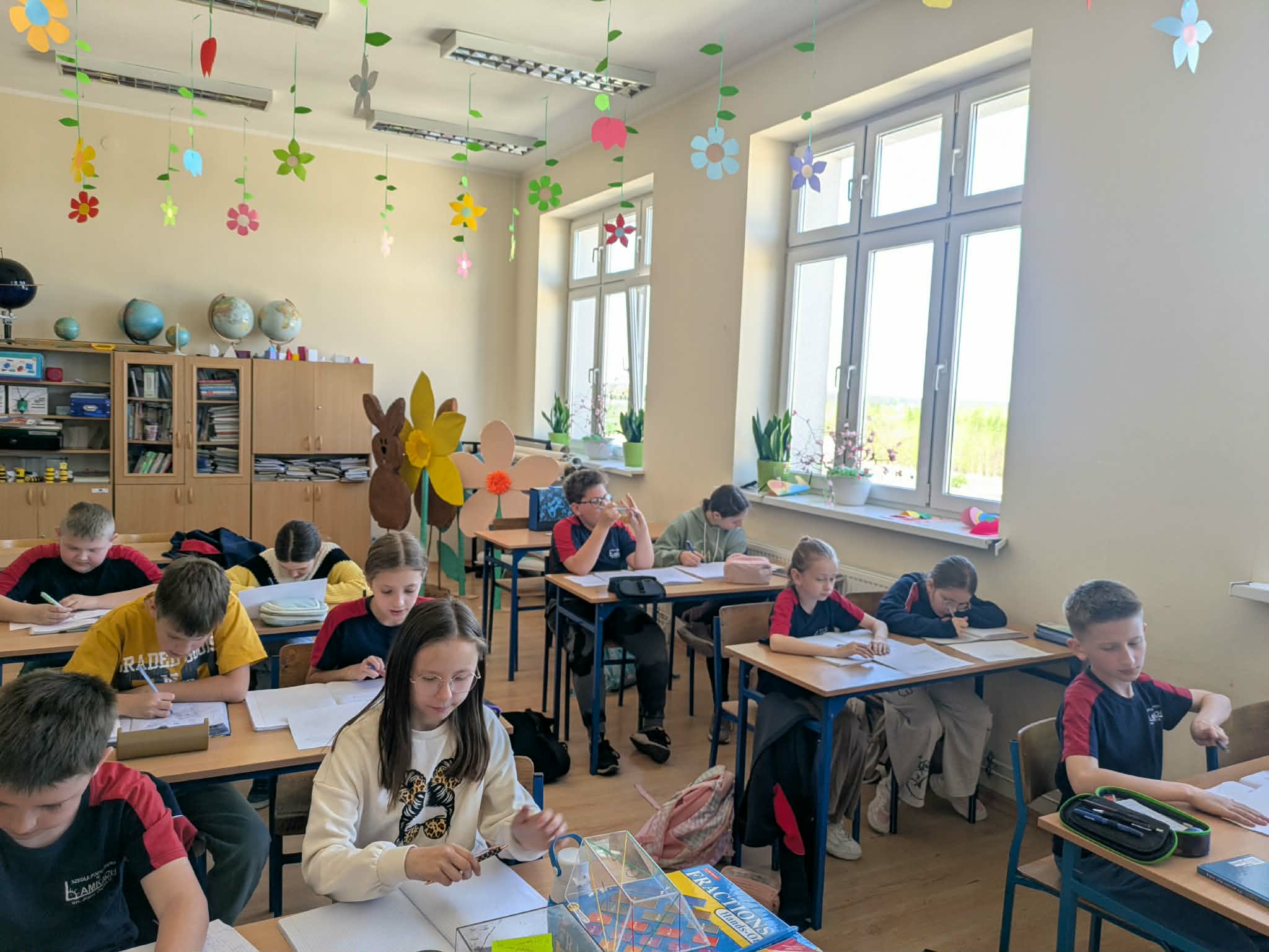 Uczniowie klasy siódmej i ósmej rozwiązywali różnorodne zadania matematyczne, związane z tematyką pszczół, uli i miodu. Przy okazji utrwalali i rozwijali swoje umiejętności matematyczne. Zadania obejmowały obliczanie prędkości lotu pszczół, czasu przelotu oraz pokonanej drogi, wyznaczanie objętości słoików i pojemników na miód, obliczanie cen miodu i kosztów zakupów. Pojawiły się także zadania procentowe, dotyczące ilości zebranego miodu. Uczniowie rozwiązywali zadania z ułamkami oraz analizowali dane liczbowe. Całość stała się ciekawą przygodą, połączoną z poznawaniem fascynującego świata pszczół.
