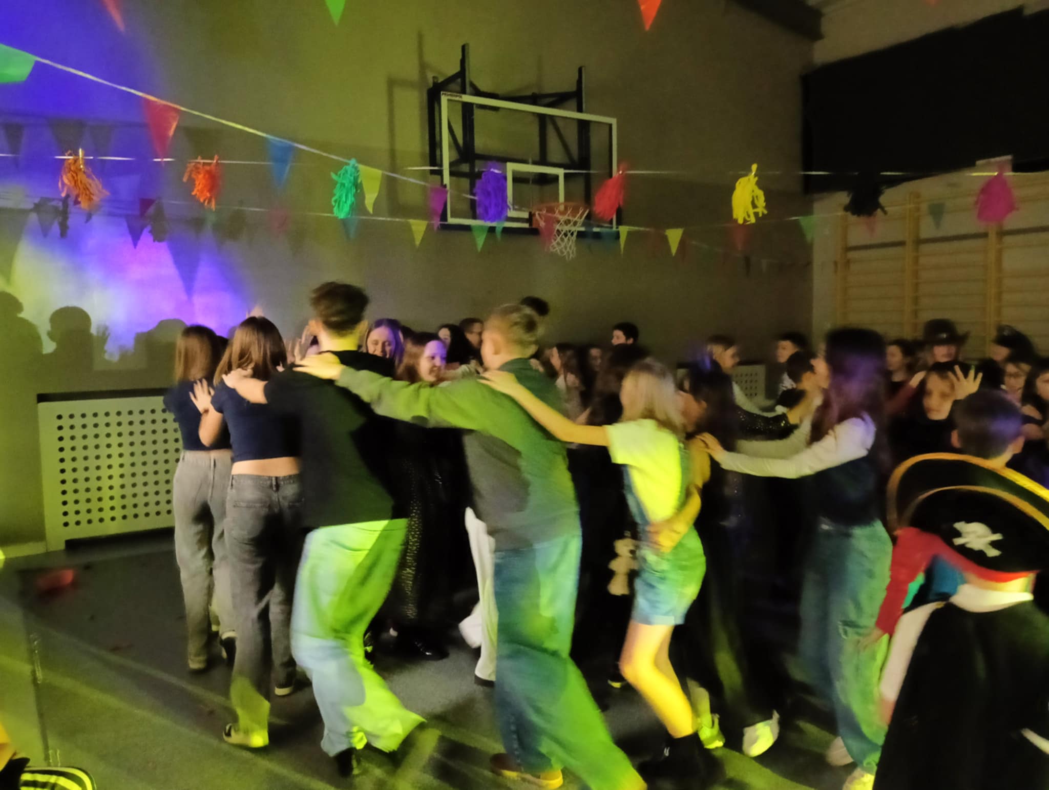 Dzień balu karnawałowego dla społeczności naszej szkoły to dzień niezwykły, często wyczekiwany przez wiele tygodni. Jest atrakcją bardzo lubianą, dostarczającą uczniom wielu przeżyć i radości. Ta niecodzienna atrakcja miała miejsce 21 lutego 2025 r. W tym dniu pojawiły się kolorowe postacie. Uczniowie byli przebrani za bohaterów znanych bajek, które możemy podziwiać na poniższych zdjęciach grupowych i indywidualnych. Na sali podczas pląsów robiło się kolorowo, głośno. Wszyscy bawili się wesoło, uśmiech nie znikał z twarzy mimo chwilowego zmęczenia.