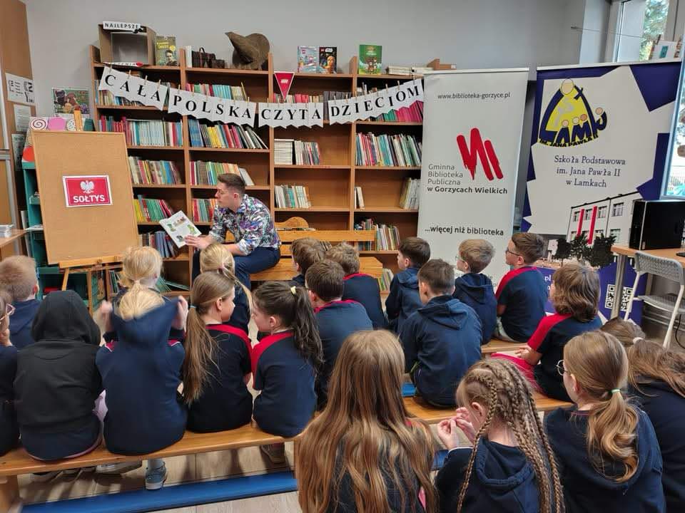 W Å›rodÄ™ 12 marca naszÄ… bibliotekÄ™ odwiedziÅ‚ pan soÅ‚tys, Damian Wróbel. To spotkanie na zaproszenie paÅ„ bibliotekarek w ramach akcji CaÅ‚a Polska Czyta Dzieciom. Pan Damian nie pierwszy raz czytaÅ‚ uczniom naszej szkoÅ‚y, poprzednio, w ramach „zaczytanych poranków” jako tata Zosi, dziÅ›, jako soÅ‚tys Lamek z okazji wczorajszego Dnia SoÅ‚tysa. BibliotekÄ™ odwiedzili również uczniowie klas 1-3 wraz z wychowawczyniami oraz dyrektor szkoÅ‚y, pan Tomasz Mocek, który zÅ‚ożyÅ‚ panu soÅ‚tysowi życzenia w imieniu spoÅ‚ecznoÅ›ci szkolnej. Nasz gość przeczytaÅ‚ dzieciom bajkÄ™ pt. „Franklin i książka z biblioteki”, a nastÄ™pnie zapytany przez dzieci o swojÄ… pracÄ™ i obowiÄ…zki opowiedziaÅ‚, w jaki sposób reprezentuje miejscowość i jej mieszkaÅ„ców, dba o okolice i pomaga ludziom, stara siÄ™ być czuÅ‚ym na potrzeby innych. DodaÅ‚, że na szczęście bardzo lubi to co robi, a skoro na dodatek czyta, wnioskujemy, że musi być bardzo szczęśliwym czÅ‚owiekiem. To byÅ‚ bardzo miÅ‚y poranek i dobrze spÄ™dzony czas. Serdecznie zapraszamy do czytania naszym dzieciom. Akcja zorganizowana zostaÅ‚a przy wspóÅ‚pracy biblioteki SzkoÅ‚y Podstawowej w Lamkach oraz Gminnej Biblioteki Publicznej z filiÄ… w Lamkach. ZdjÄ™cia pochodzÄ… od zaprzyjaźnionej biblioteki publicznej z filiÄ… w Lamkach.
