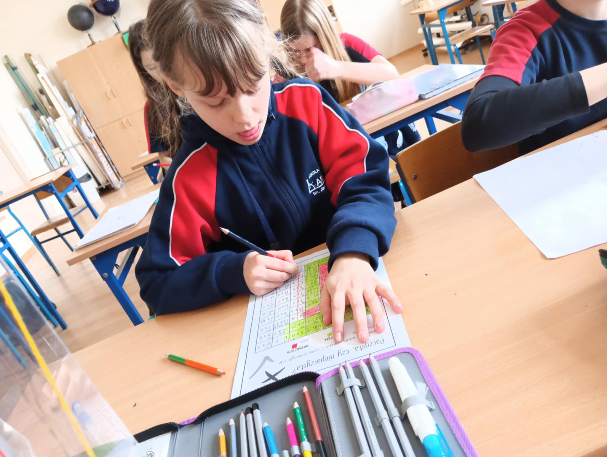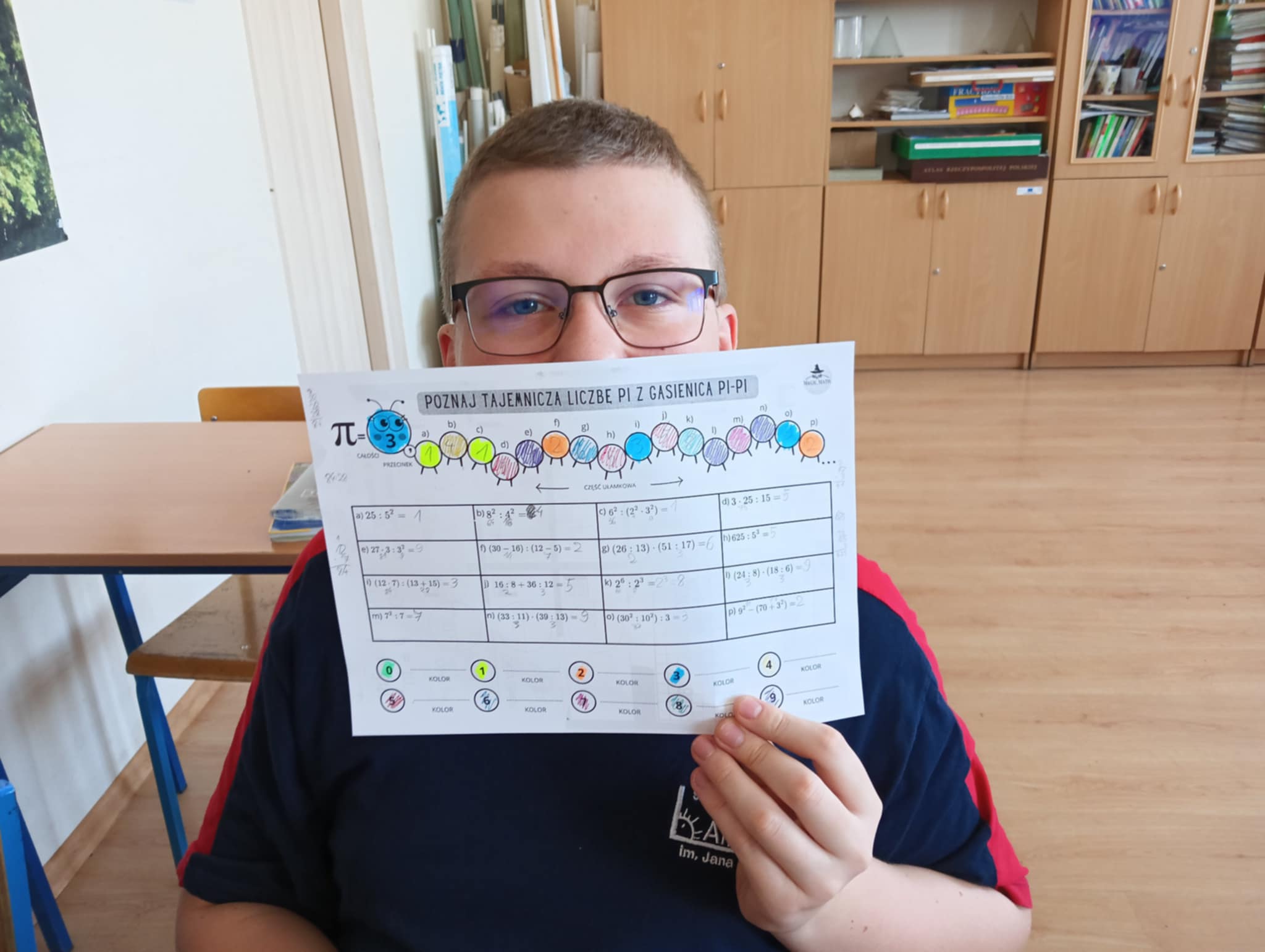Jednym z głównych tematów była liczba PI, którą uczniowie poznawali na różne sposoby. Przez wykonywanie działań na ułamkach odkrywali jej rozwinięcie dziesiętne, co było świetną okazją do utrwalenia umiejętności rachunkowych. Uczniowie klas czwartych przeprowadzili ciekawe doświadczenie, w ramach którego mierzyli obwód oraz średnicę różnych przedmiotów o okrągłym kształcie. Następnie obliczali iloraz tych liczb, co pozwoliło im samodzielnie odkryć przybliżoną wartość liczby PI. Była to niezwykle angażująca i edukacyjna lekcja matematyki w praktyce. Starsze klasy, czyli uczniowie siódmych i ósmych klas, wzięli udział w emocjonującej grze matematycznej związanej z datą 12 marca. Zadania wymagały logicznego myślenia, umiejętności rozwiązywania równań oraz znajomości faktów historycznych dotyczących matematyki. Rywalizacja była zacięta,