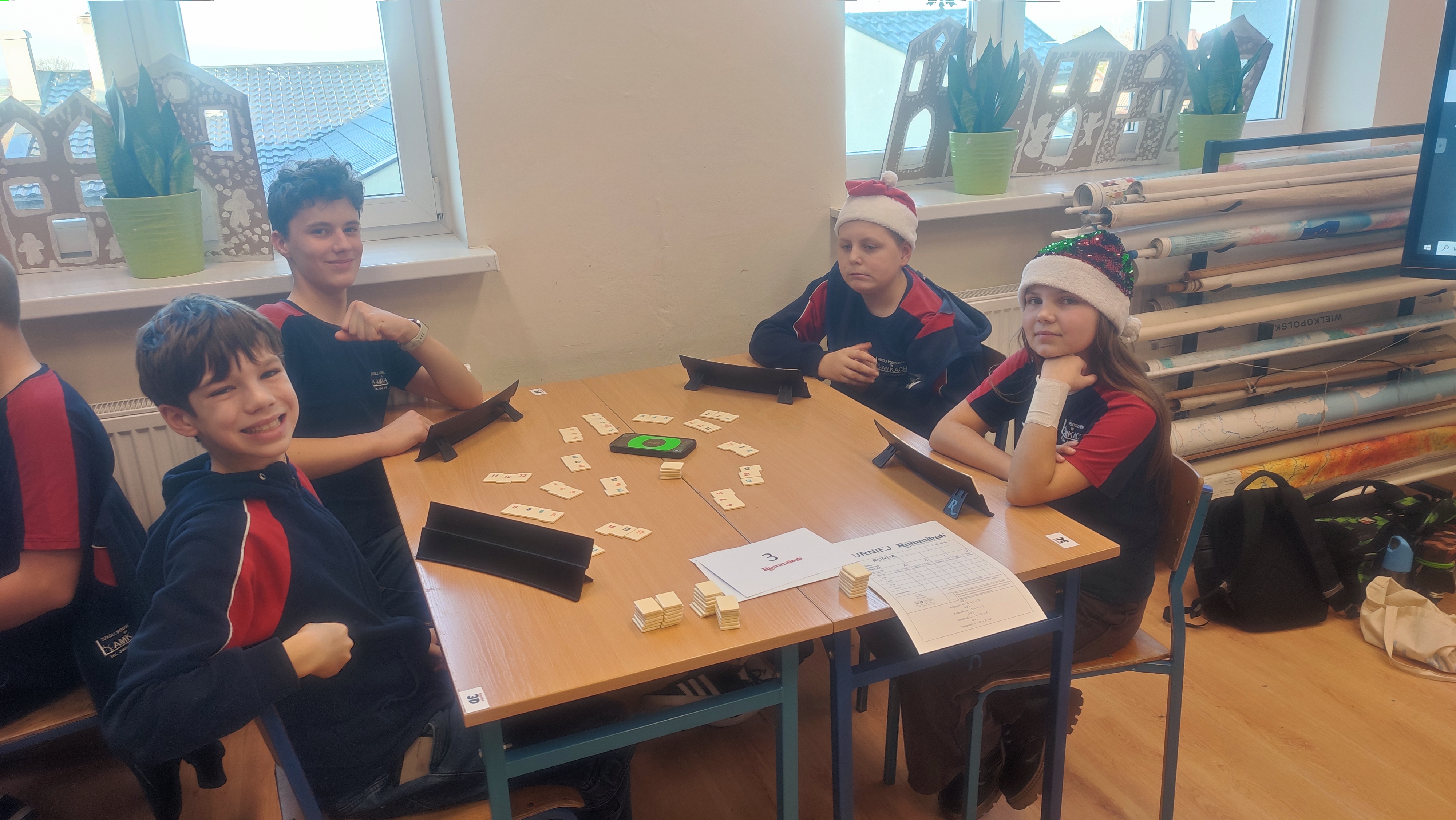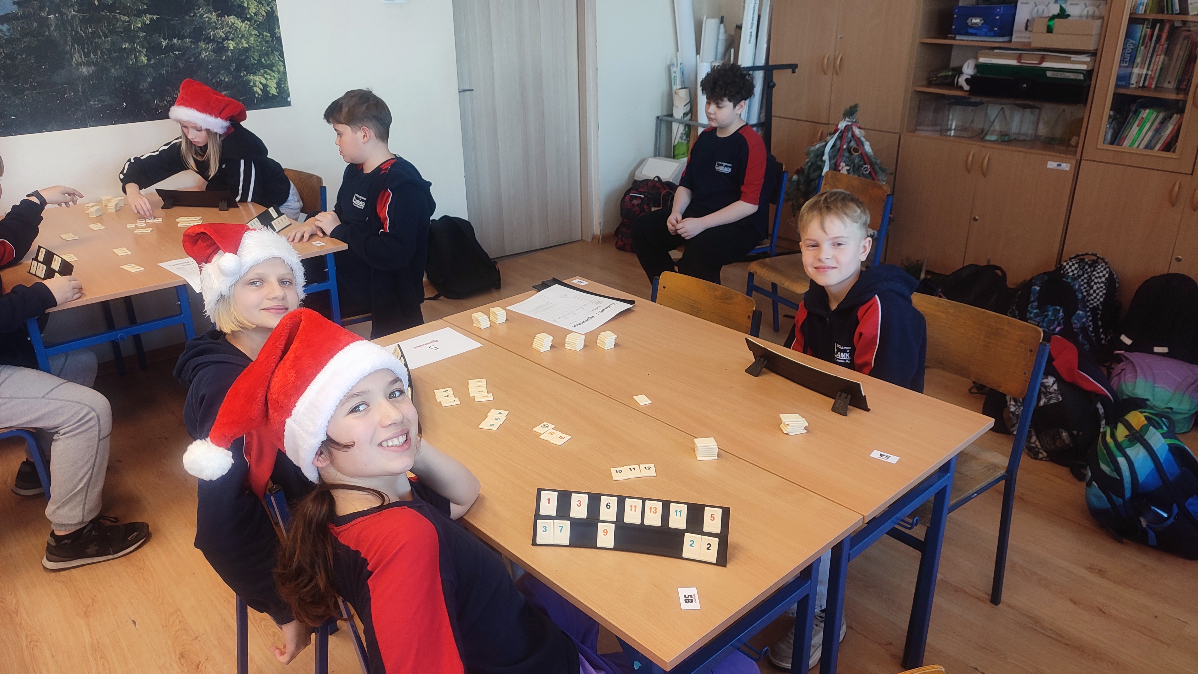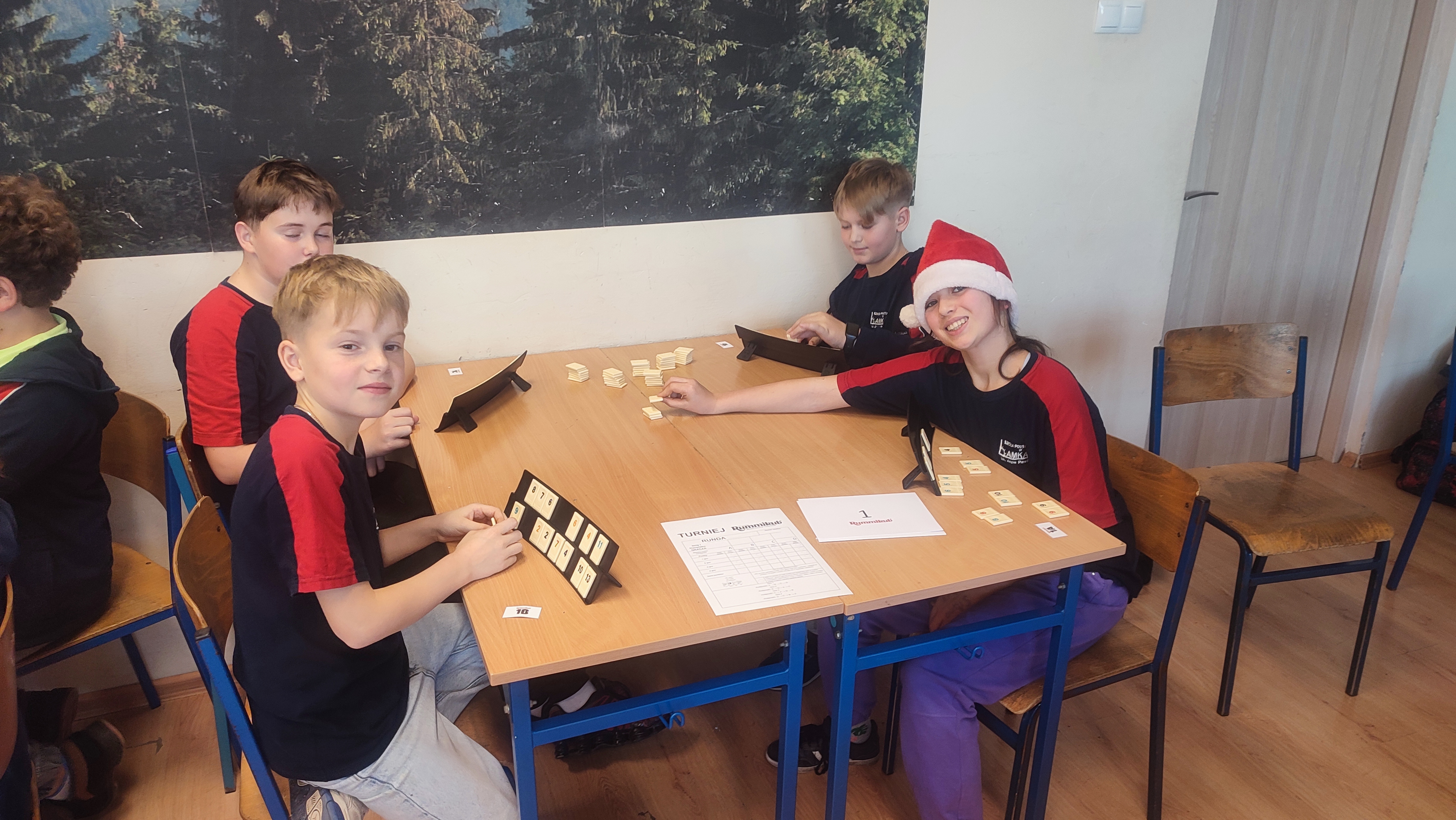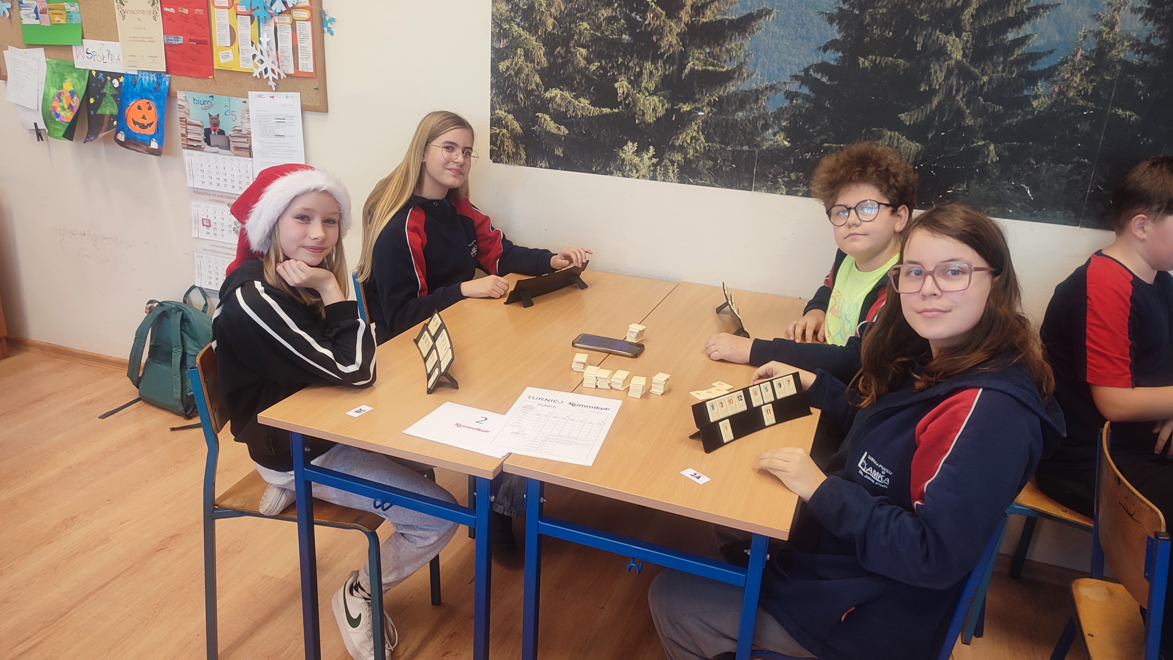Poniedziałkowe popołudnie 15 grudnia skupiło fanów gry Rummikub w naszej szkole. Silna reprezentacja klasy 5, ale także uczniowie z klasy 4,6 i 8 wzięli udział w I Mikołajkowym Szkolnym Turnieju Rummikuba. Oprócz fantastycznej atmosfery spotkanie pełne było wielu ciekawych  rozgrywek. Każdy uczestnik turnieju otrzymał słodką niespodziankę. Wśród najlepszych uczestników znaleźli się :