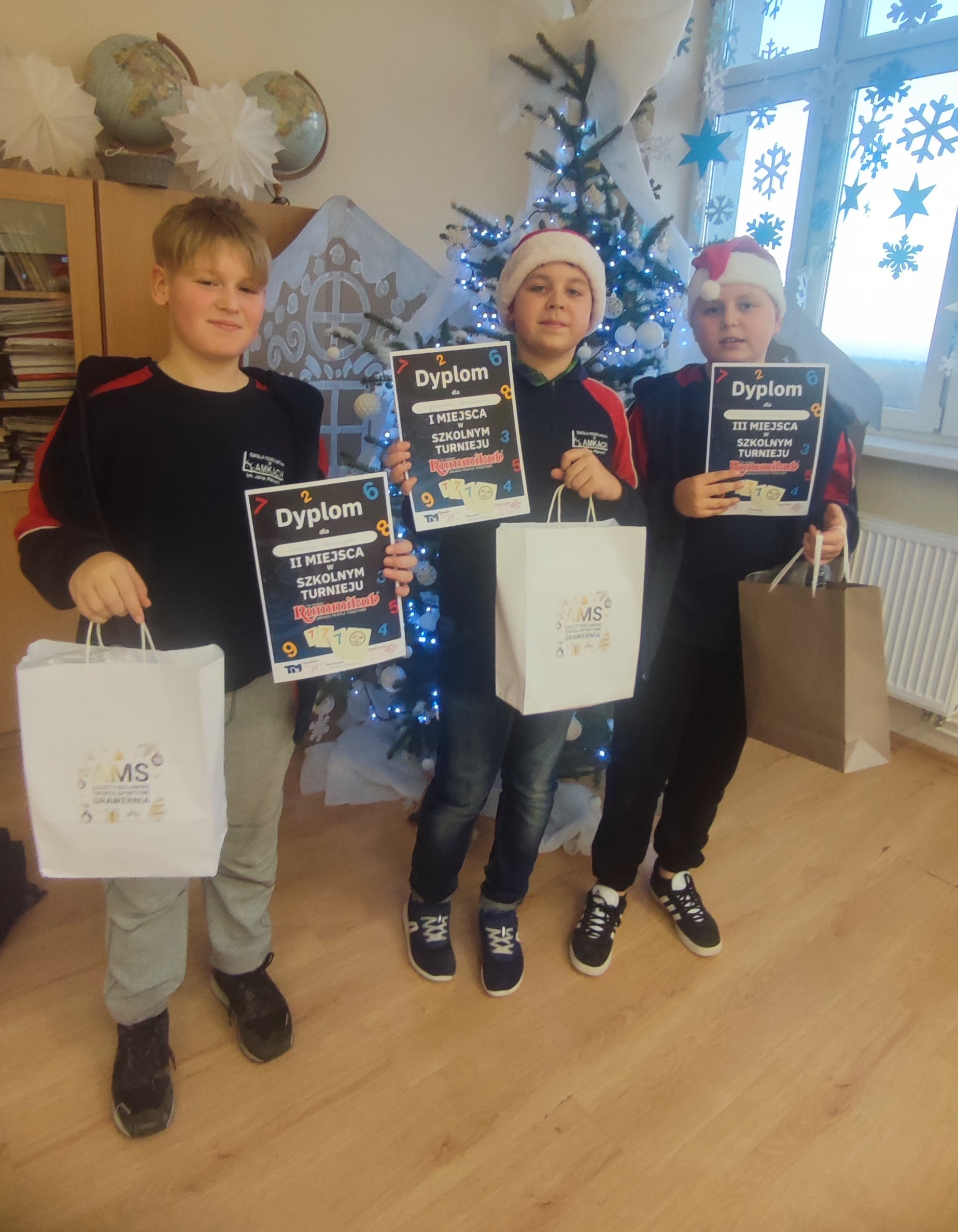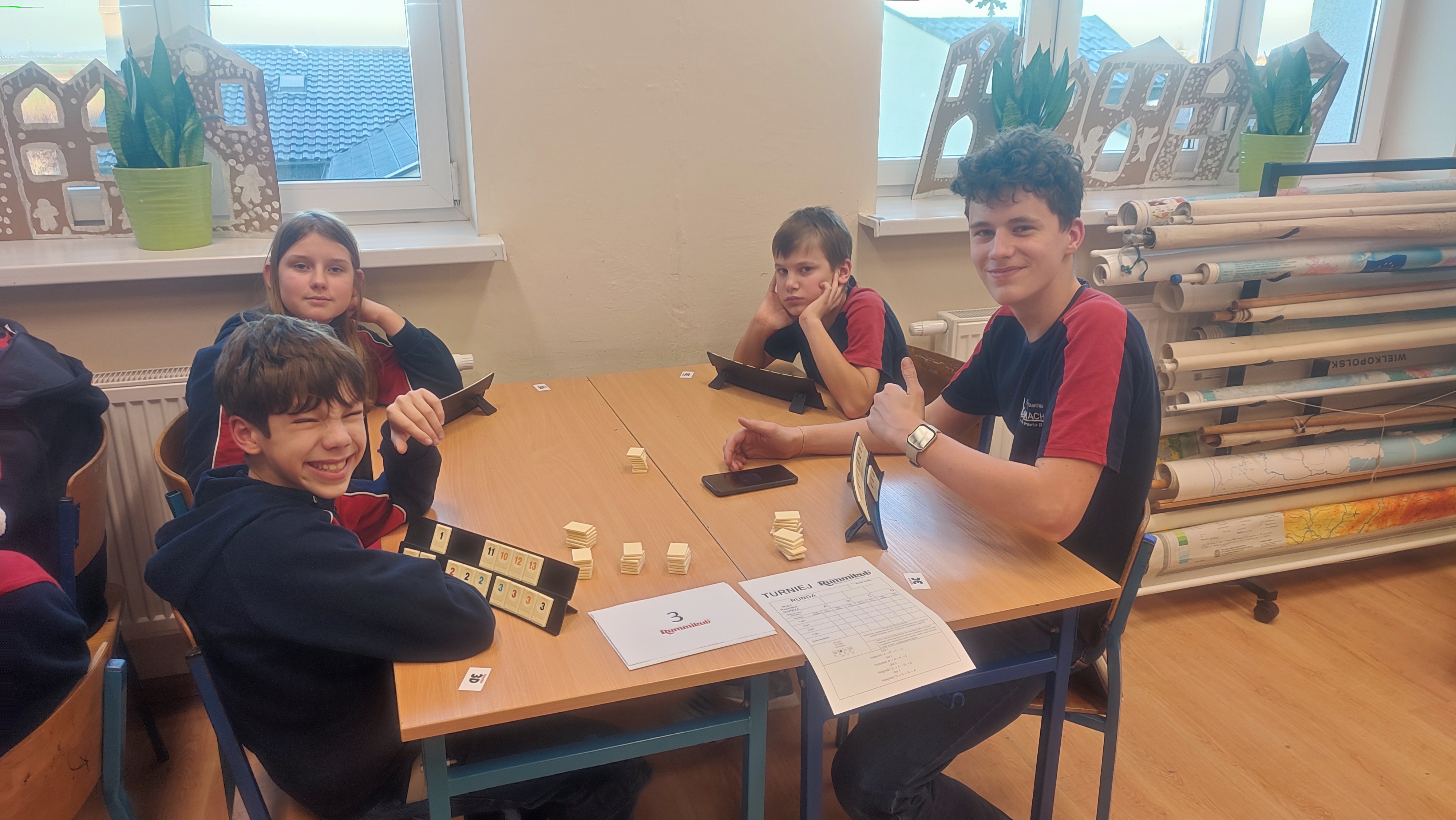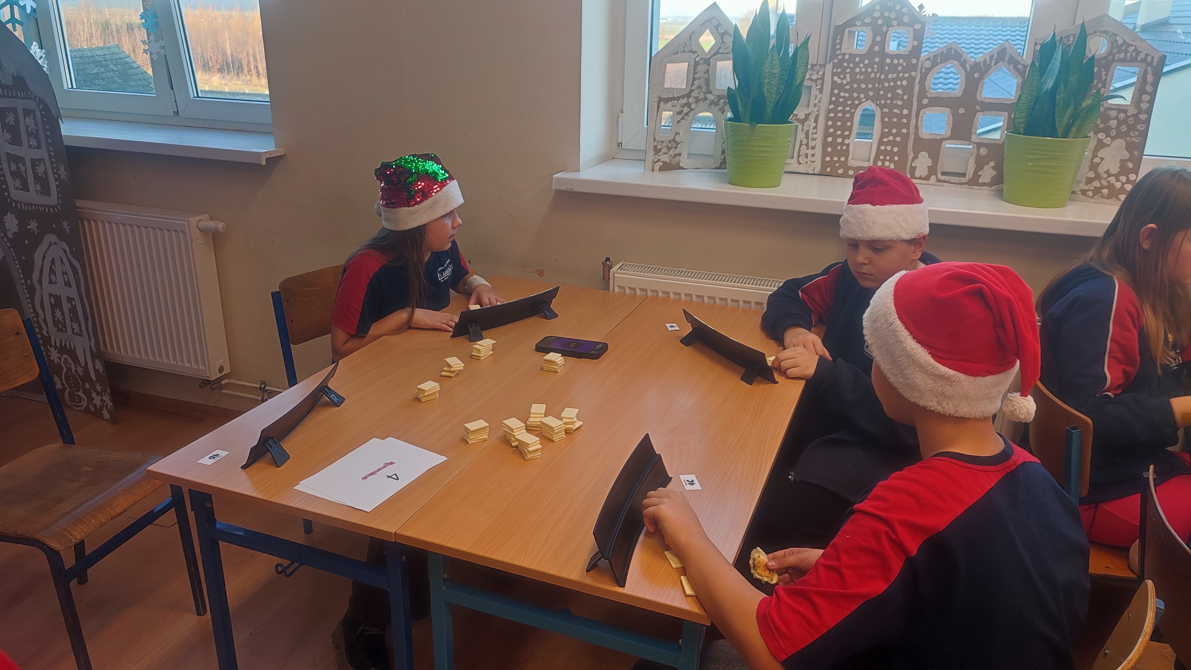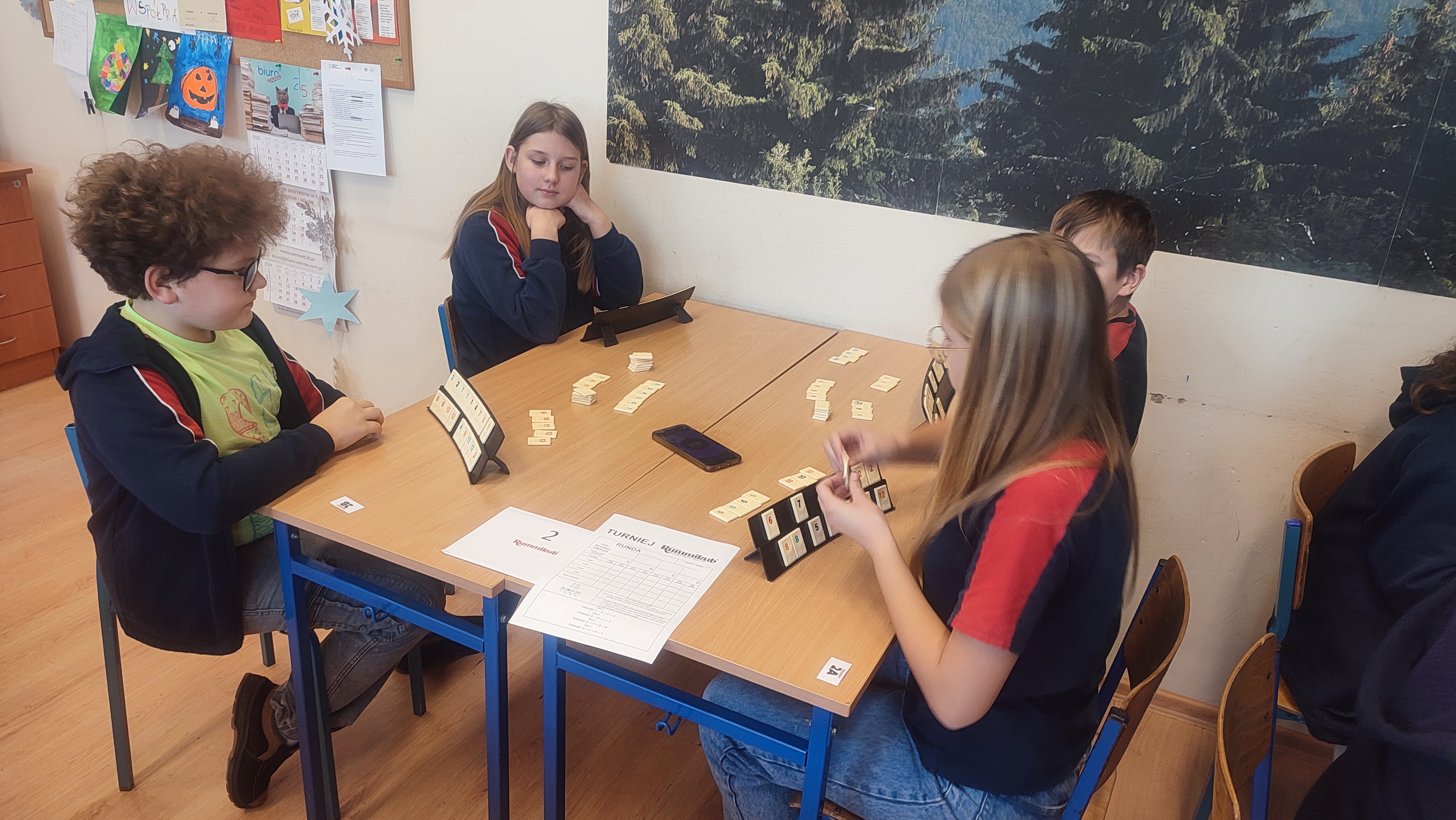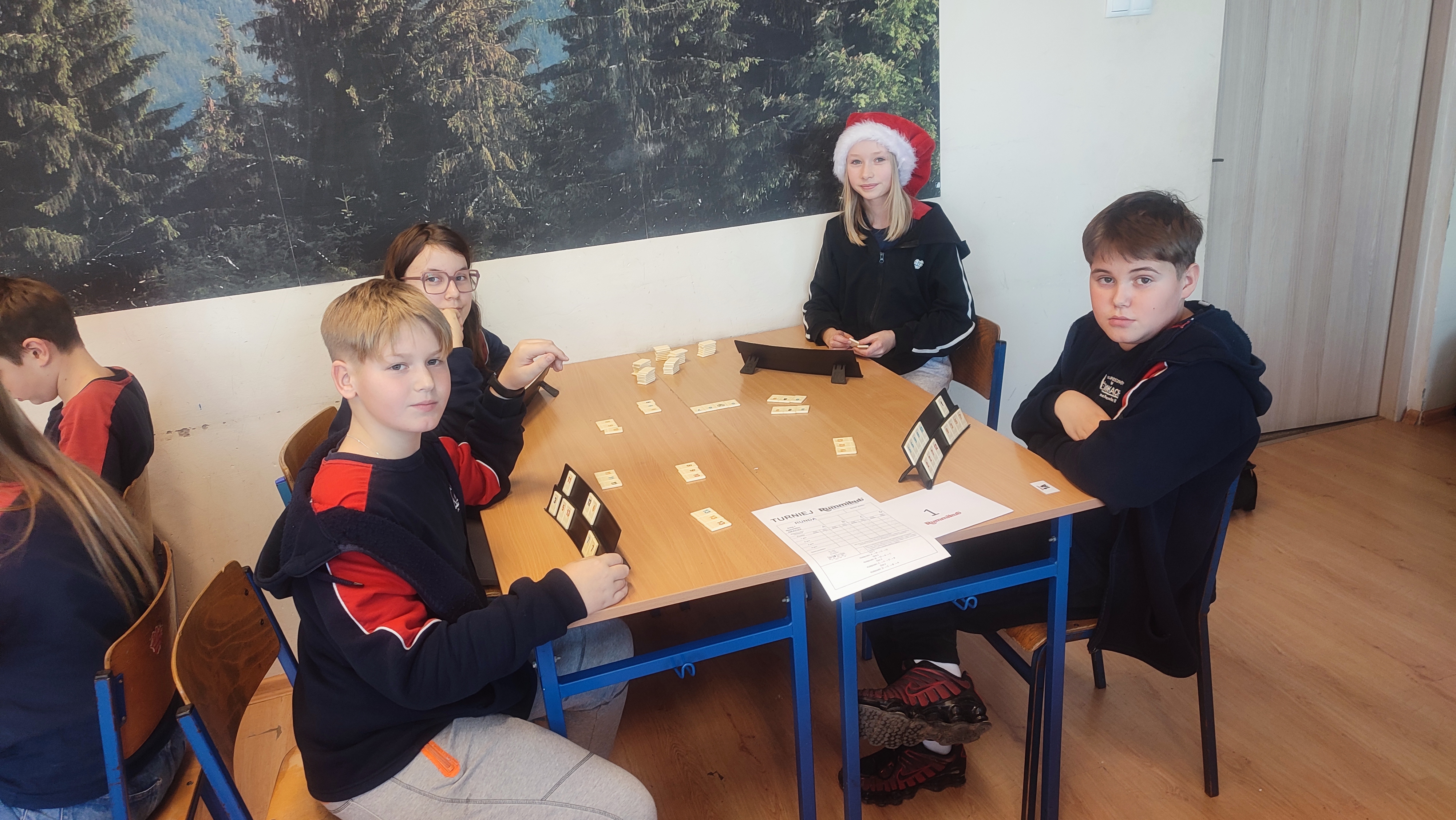 Poniedziałkowe popołudnie 15 grudnia skupiło fanów gry Rummikub w naszej szkole. Silna reprezentacja klasy 5, ale także uczniowie z klasy 4,6 i 8 wzięli udział w I Mikołajkowym Szkolnym Turnieju Rummikuba. Oprócz fantastycznej atmosfery spotkanie pełne było wielu ciekawych  rozgrywek. Każdy uczestnik turnieju otrzymał słodką niespodziankę. Wśród najlepszych uczestników znaleźli się :