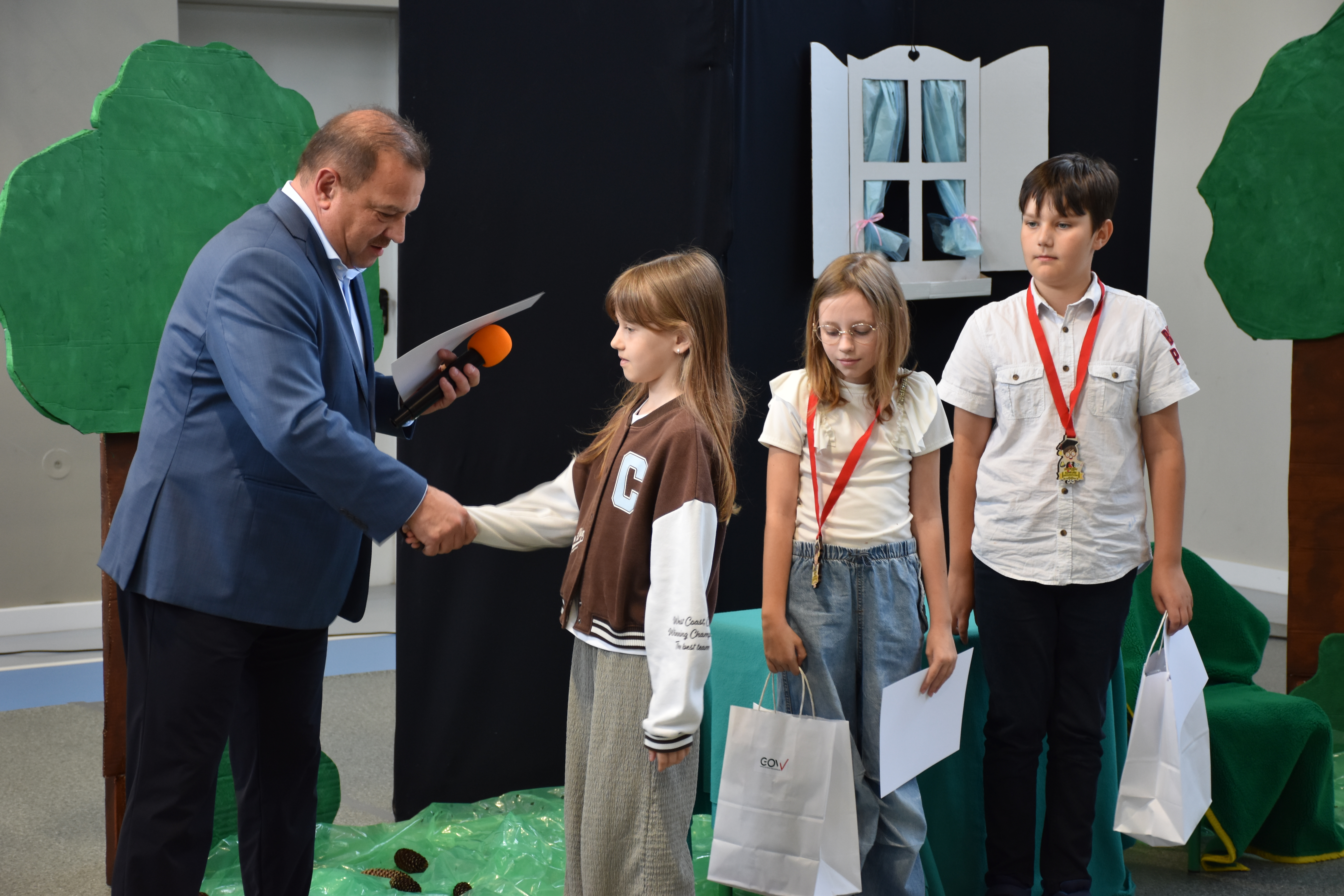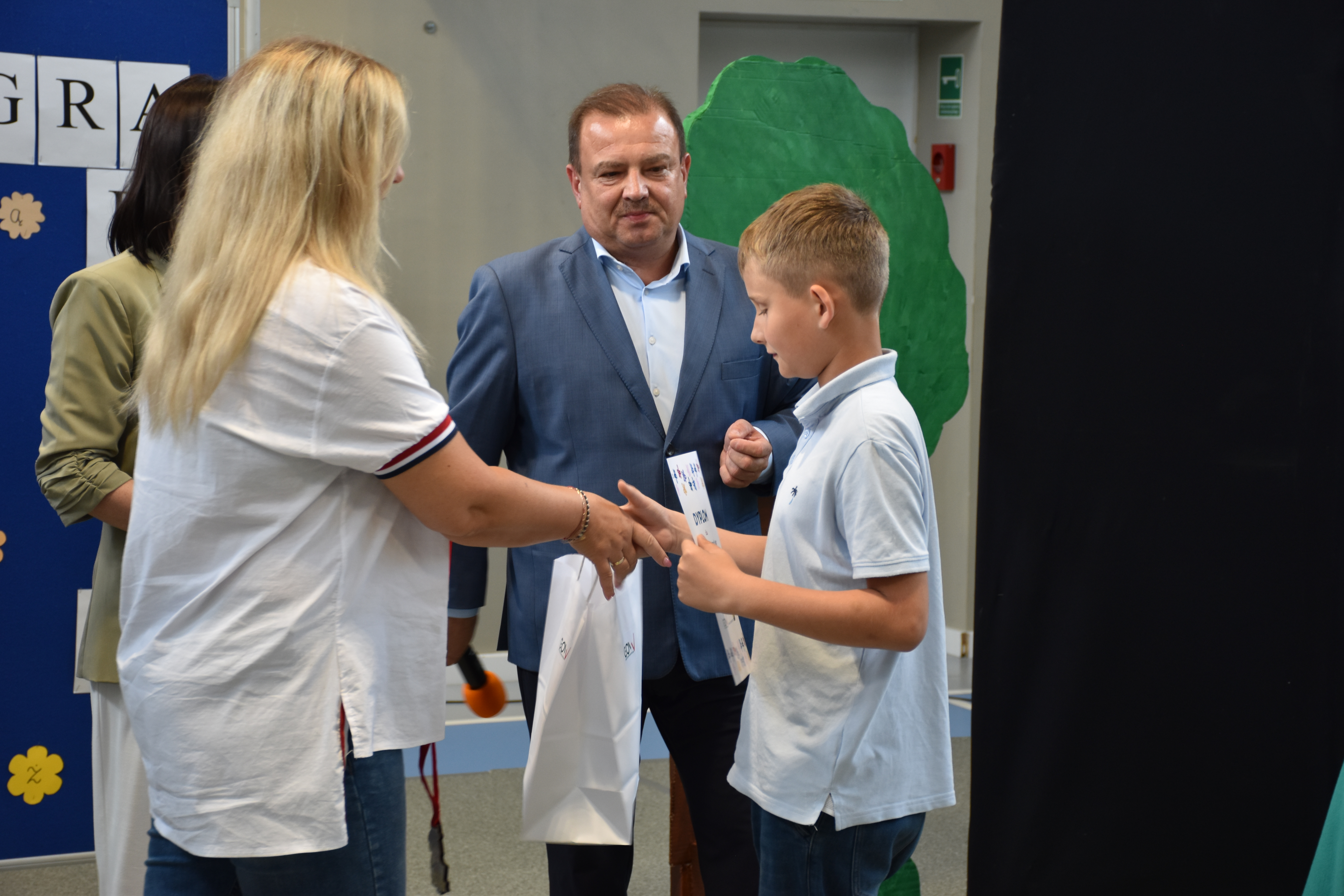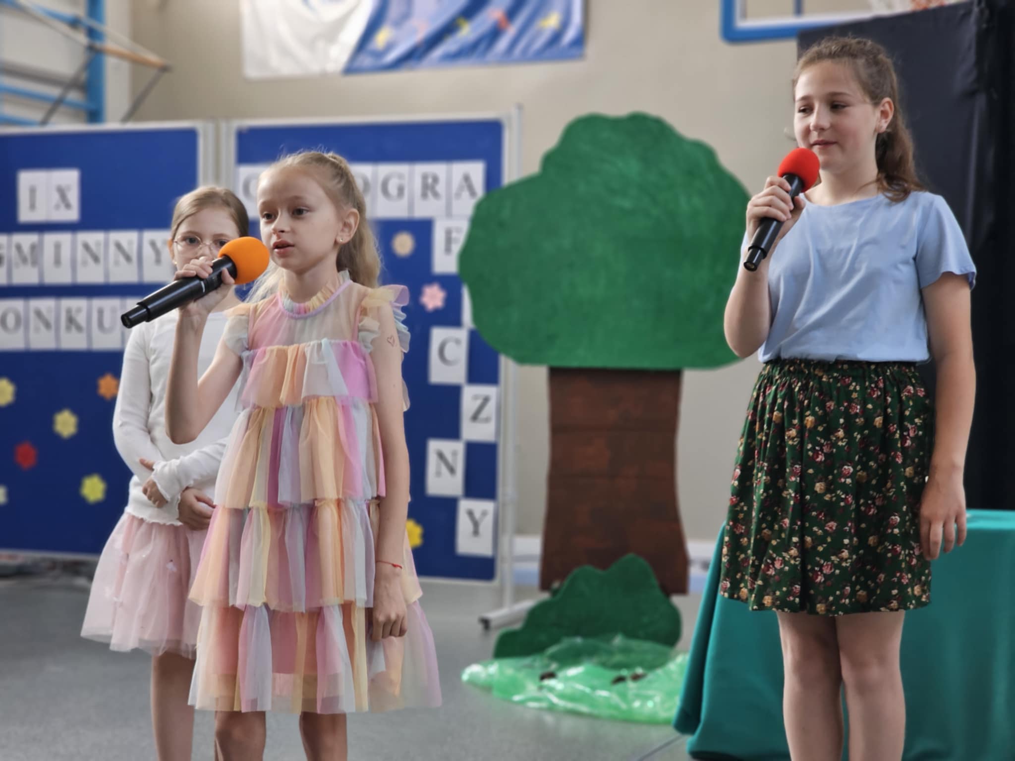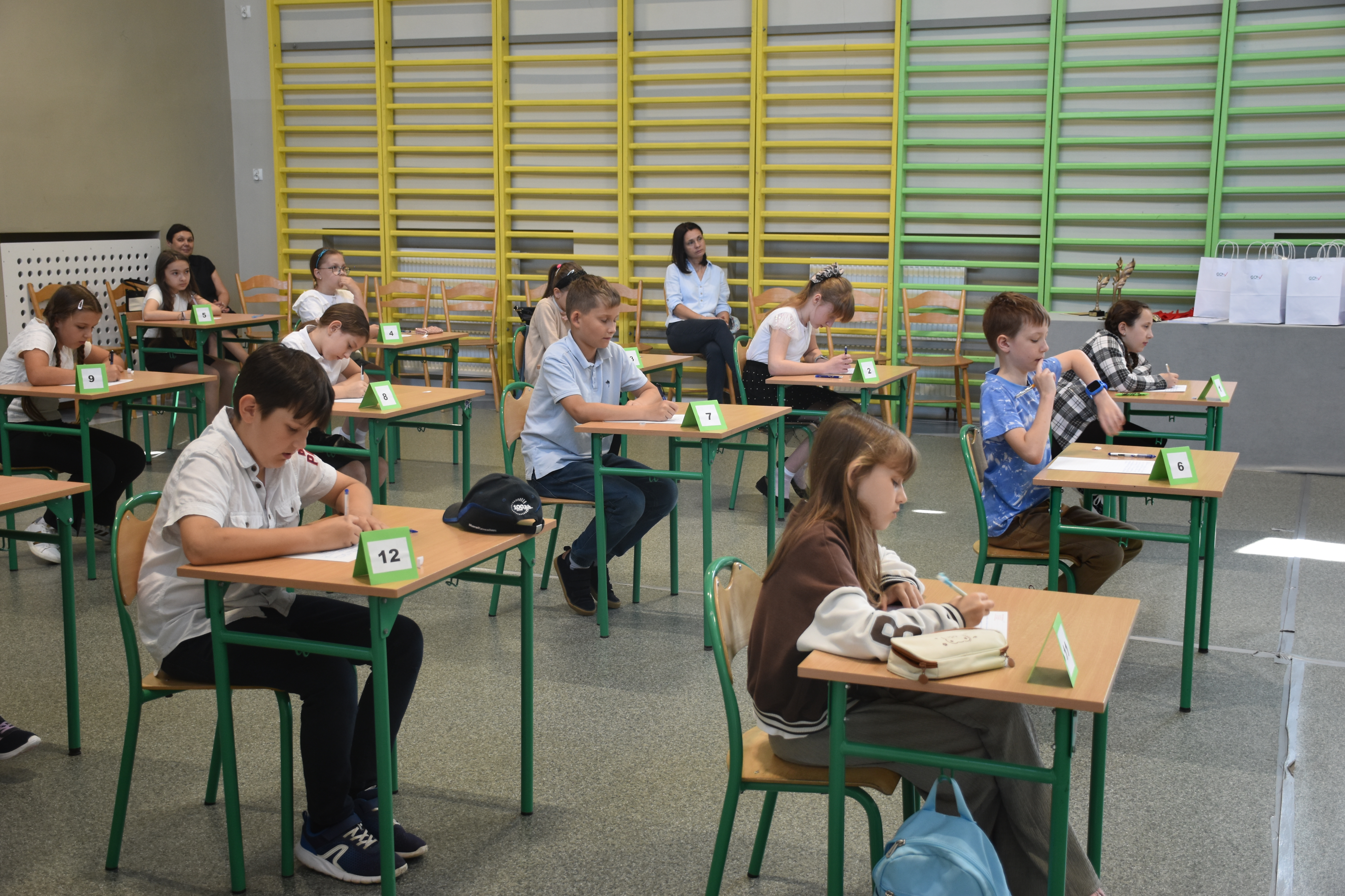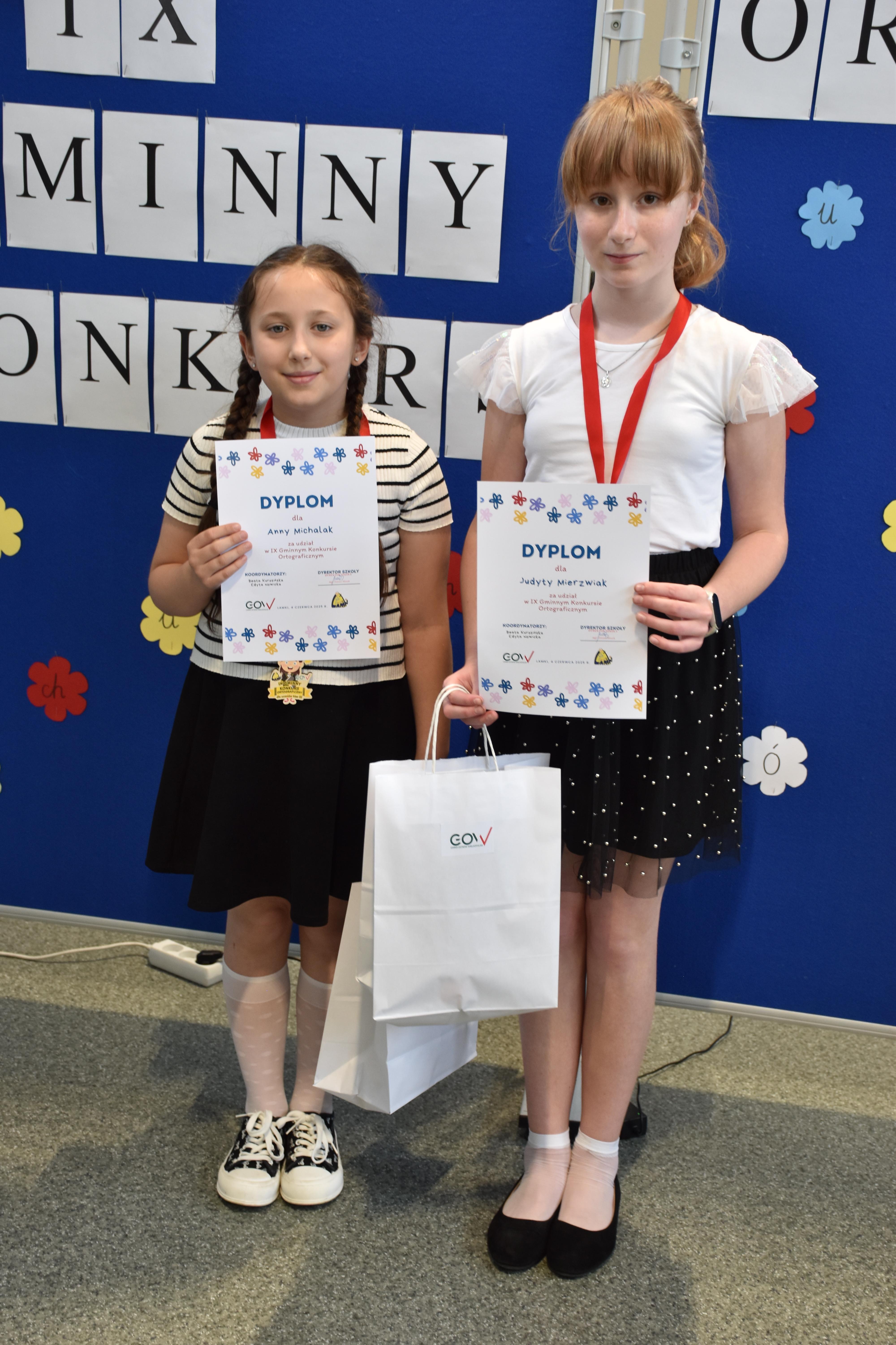Nagrody dla finałowej trójki, dyplomy za udział w konkursie, podziękowania dla nauczycieli za przygotowanie do konkursu oraz podziękowania dla komisji sprawdzającej wręczyli, dyrektor Szkoły Podstawowej pan Tomasz Mocek, Kierownik Referatu Oświaty i Polityki Społecznej pani Aneta Kasprzak i radna Gminy Ostrów Wielkopolski pani Karolina Przytuła.