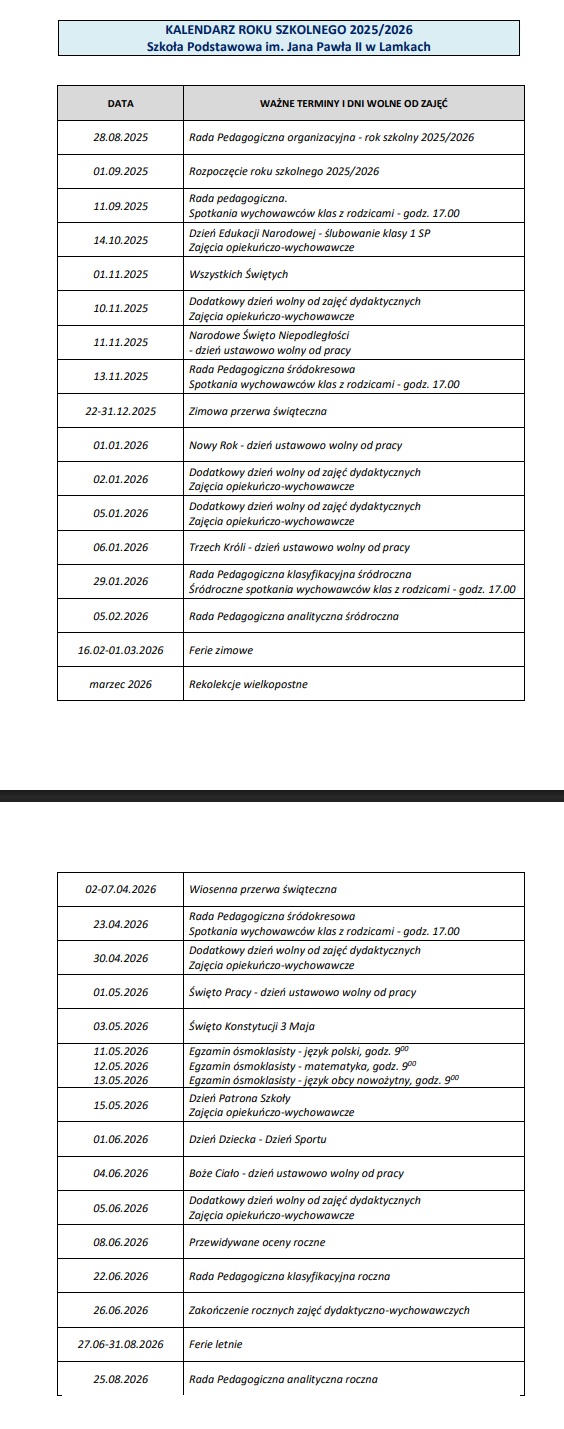 Kalendarz roku szkolnego