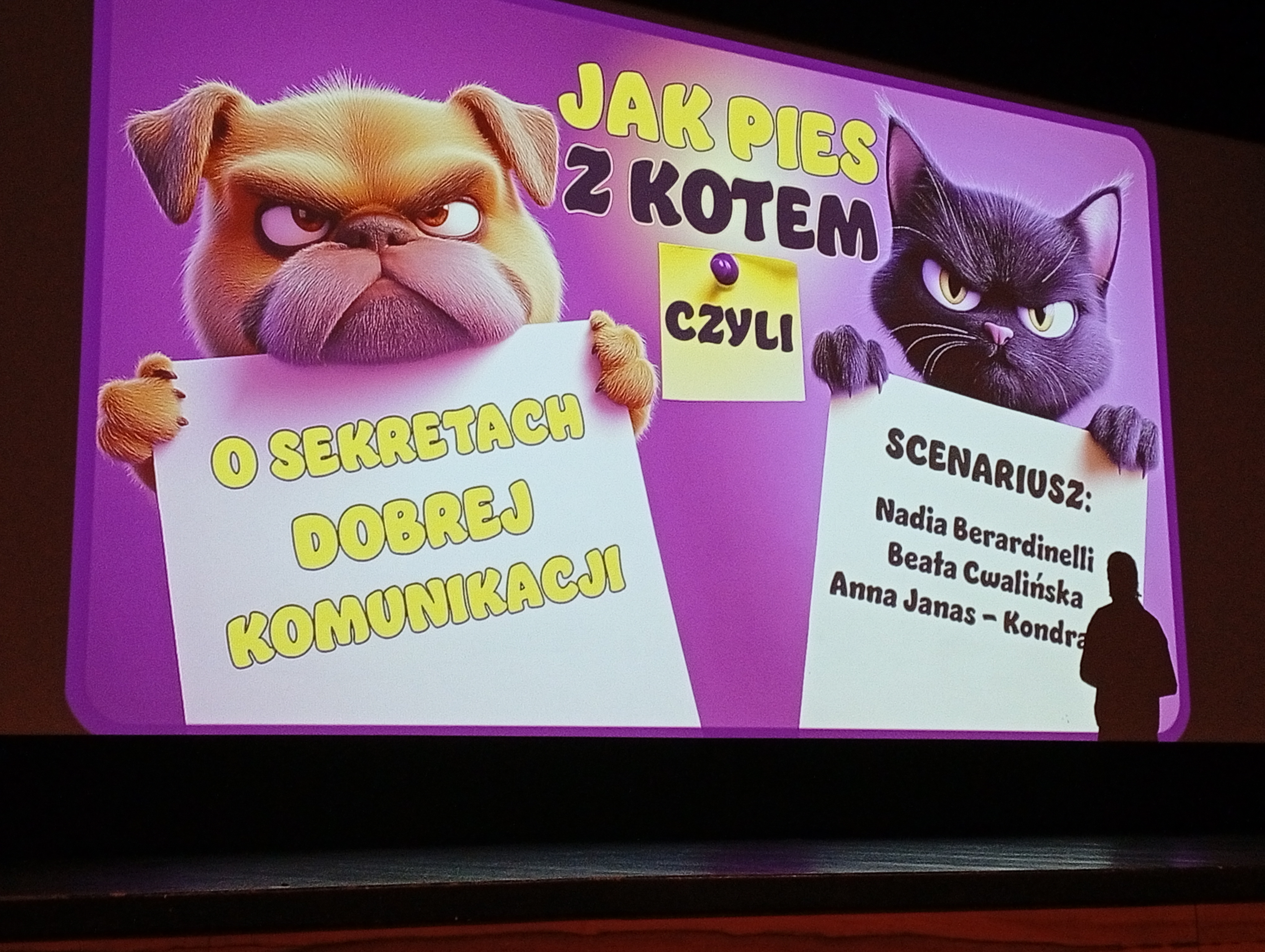 20 maja uczniowie z klas I-III wzięli udział w lekcji w kinie pod hasłem  ,,Jak pies z kotem, czyli o sekretach dobrej komunikacji". Podczas warsztatów dzieci odkrywały tajniki skutecznego porozumiewania się. Dowiedziały się, jak ważne są współpraca, empatia i poczucie własnej wartości, zwłaszcza w trudnych sytuacjach. Spotkanie nie tylko dostarczyło im wiedzy, ale także rozwinęło umiejętności niezbędne do budowania dobrych relacji z innymi. Na zakończenie obejrzeli film “Był sobie kot”- zabawną opowieść o wdzięczności, przyjaźni i miłości. Seans filmowy był doskonałym dopełnieniem zdobytych informacji, a całe wydarzenie okazało się nie tylko świetną zabawą, ale i cenną lekcją życia. Dzięki niej uczniowie lepiej zrozumieją siebie i innych, co z pewnością zaowocuje w przyszłości.