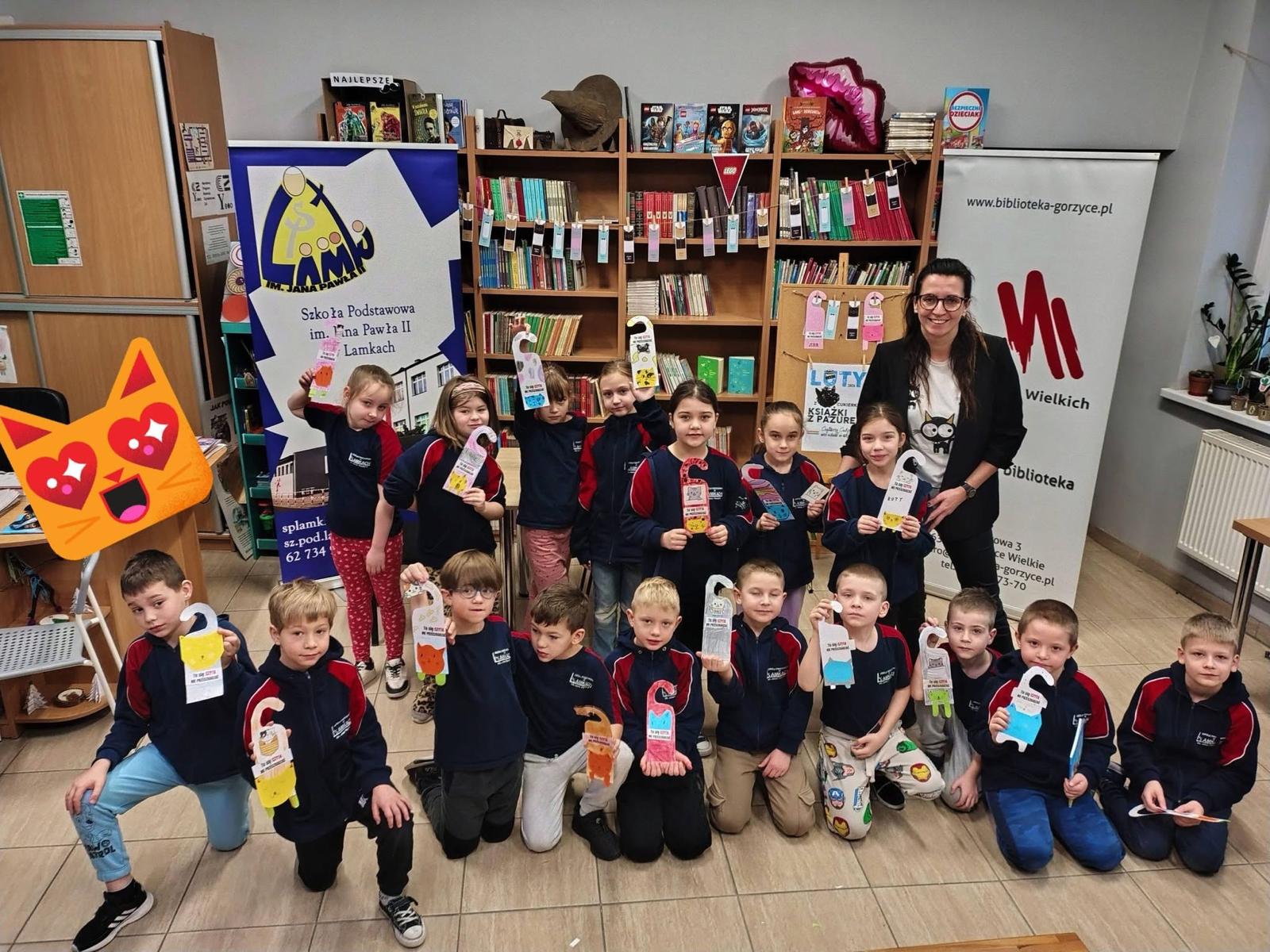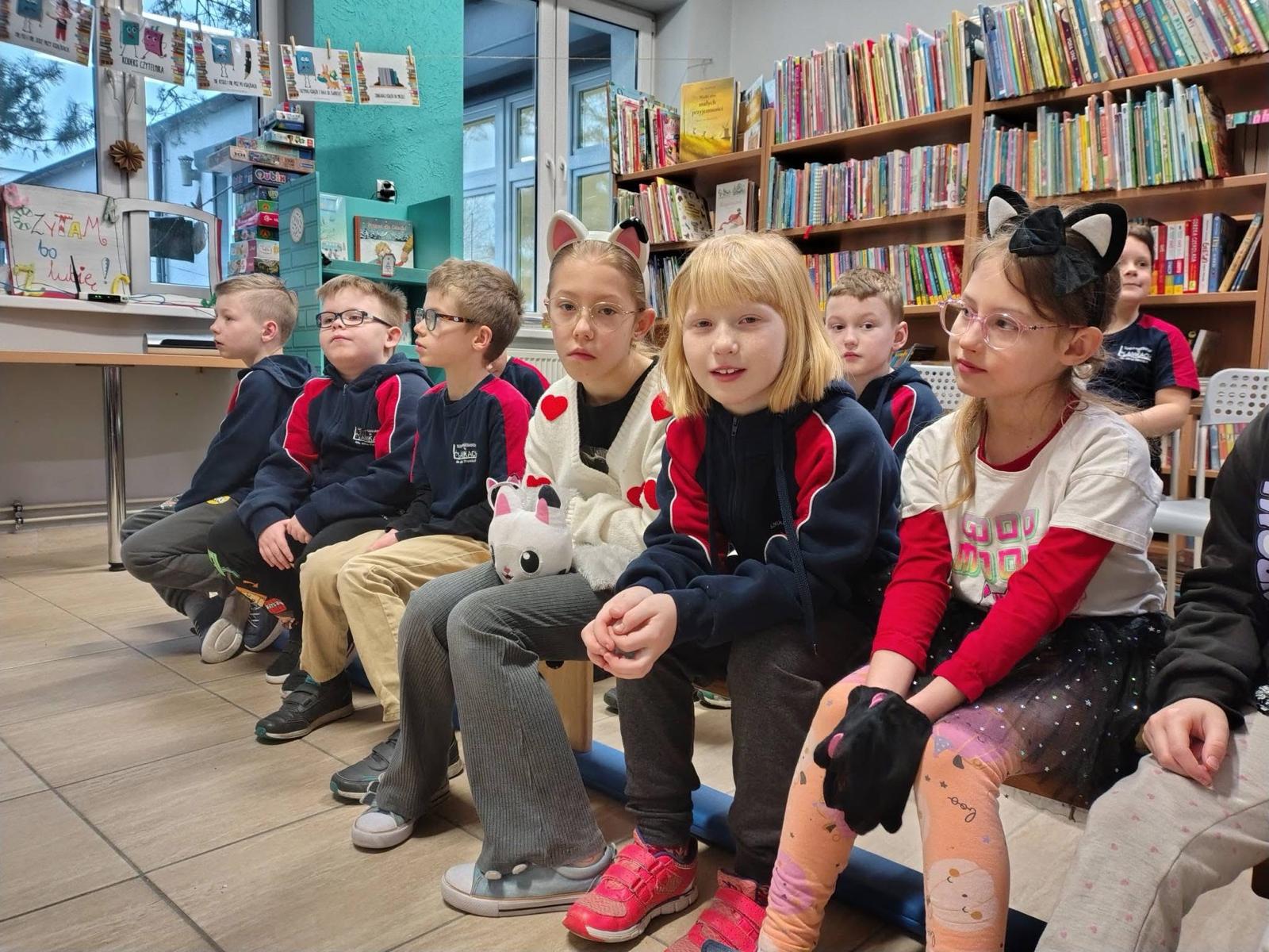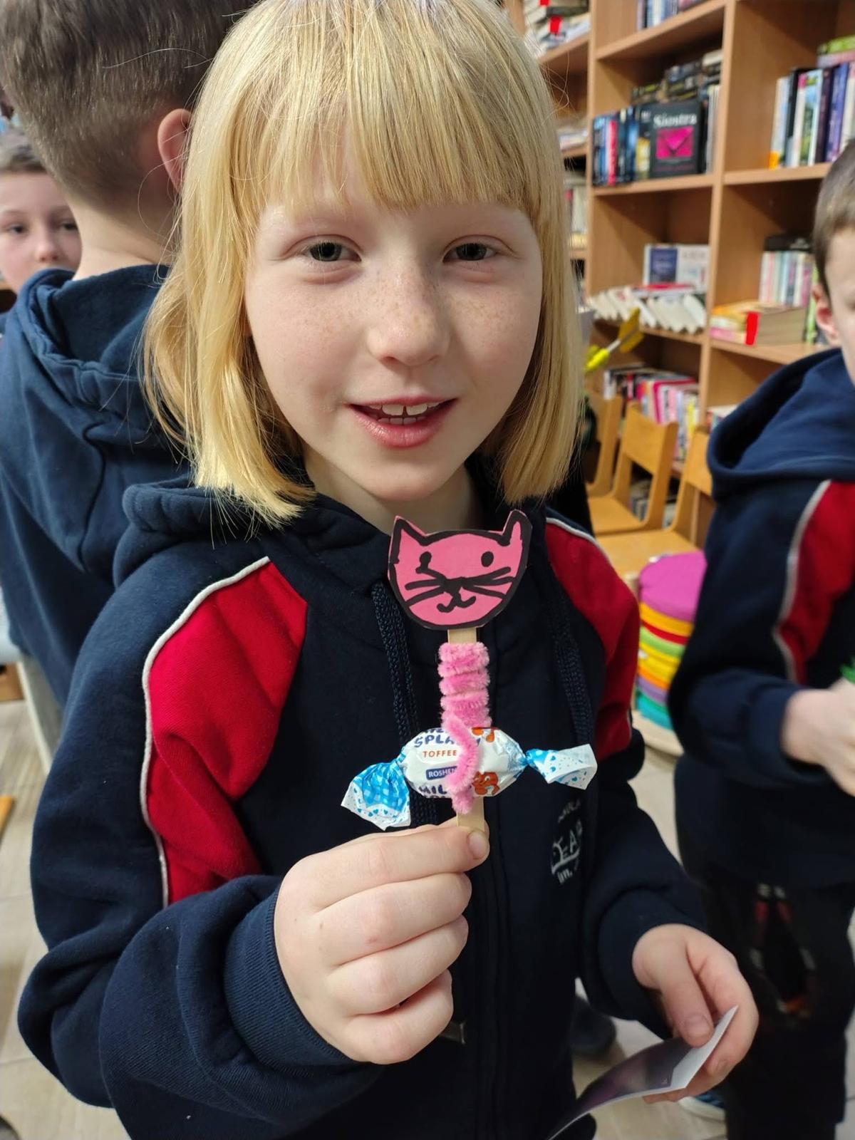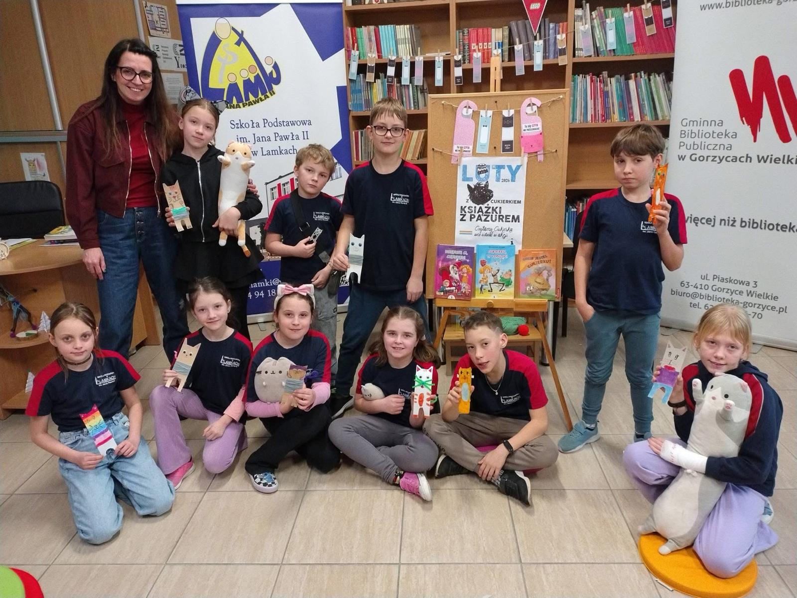 W lutym nasza biblioteka zamieniła się w krainę kocich przygód! Wszystko za sprawą ogólnopolskiej akcji czytelniczej „Luty z Cukierkiem – Książki z Pazurem”, organizowanej przez Wydawnictwo Żwakowskie. Głównym bohaterem naszych spotkań został nie kto inny, jak Cukierek – najbardziej niesforny, pręgowany dachowiec na świecie, stworzony przez Waldemara Cichonia.