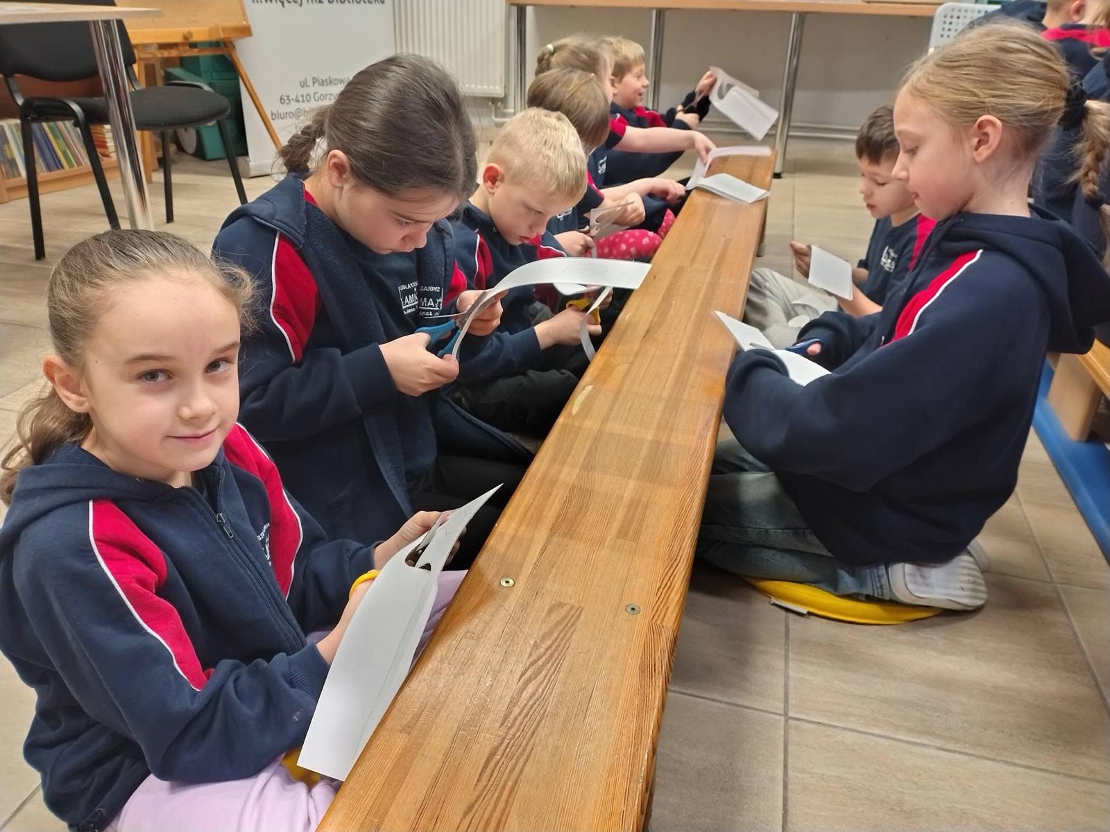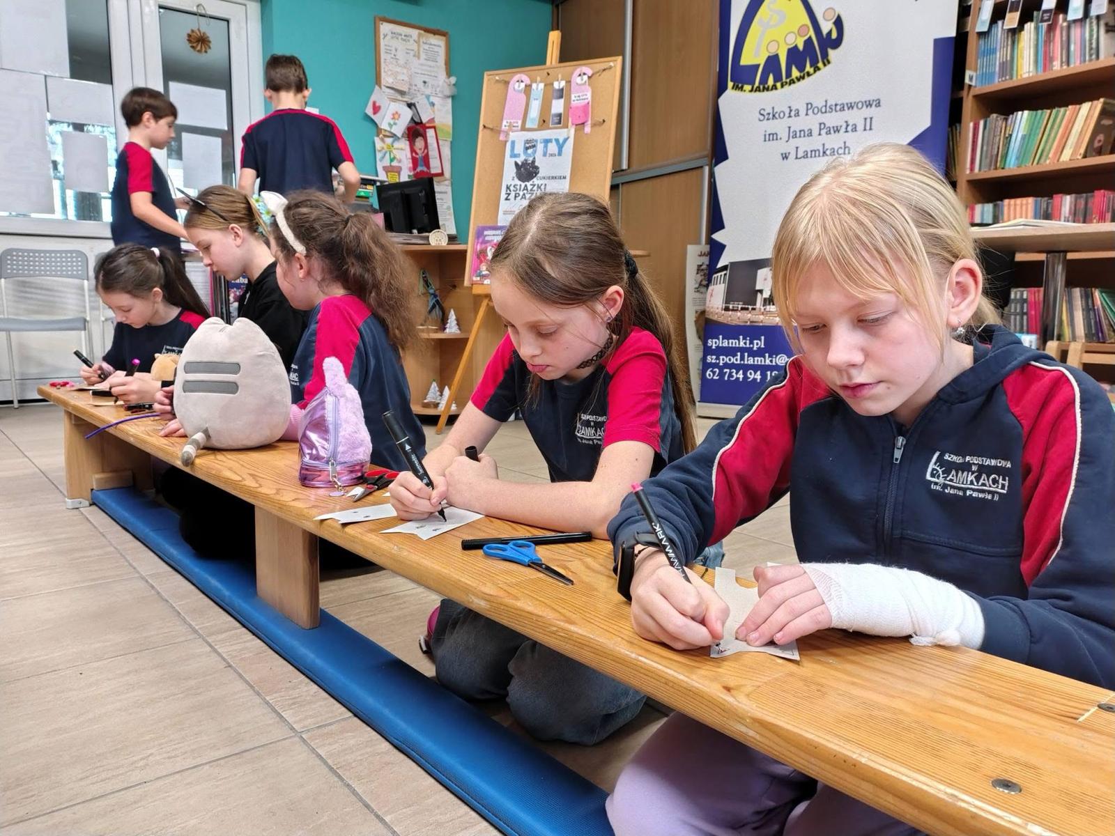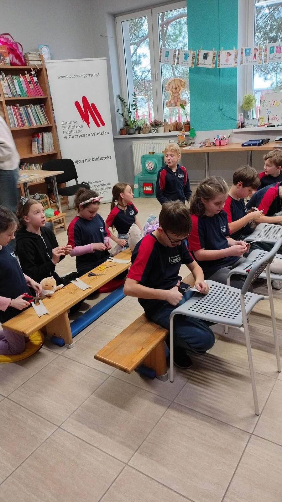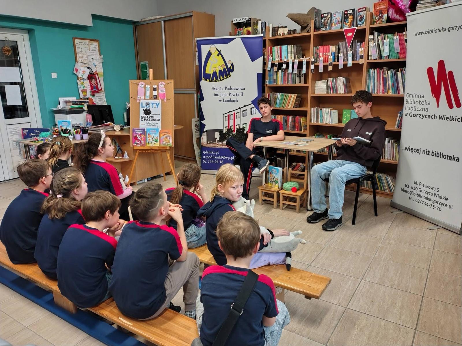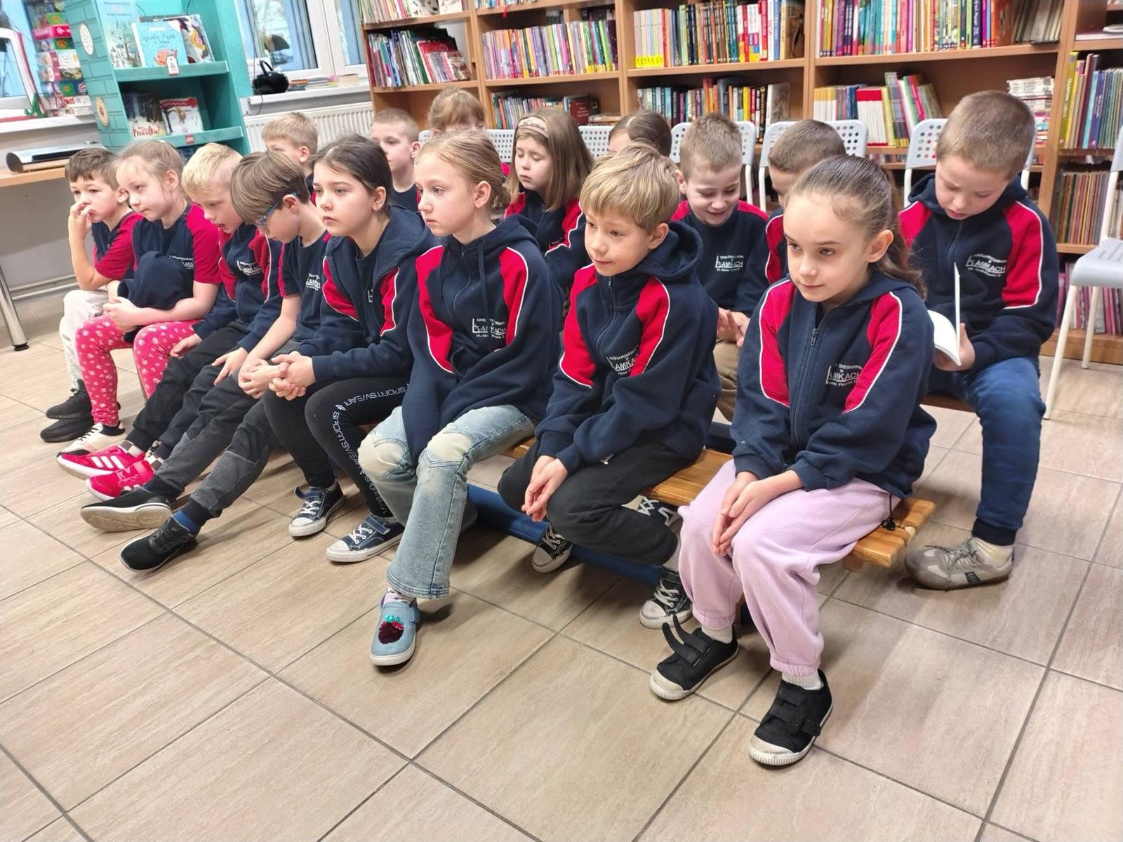 Jak zwykle spotkaliśmy się w bibliotece, jak zwykle dzięki wspólnemu działaniu Biblioteki Szkolnej i Gminnej Biblioteki Publicznej w Lamkach. Podczas spotkań z uczniami klas 1-3 wspólnie zgłębialiśmy lekturę „Cukierku, ty łobuzie!”, która bawi do łez zarówno dzieci, jak i dorosłych. Śledziliśmy ucieczkę Cukierka z domu, jego dzielną walkę ze „strasznym” swetrem z angory oraz niefortunne dekorowanie choinki. Głośne czytanie stało się pretekstem do rozmów o tym, jak odpowiedzialnie opiekować się zwierzętami i rozumieć ich potrzeby.