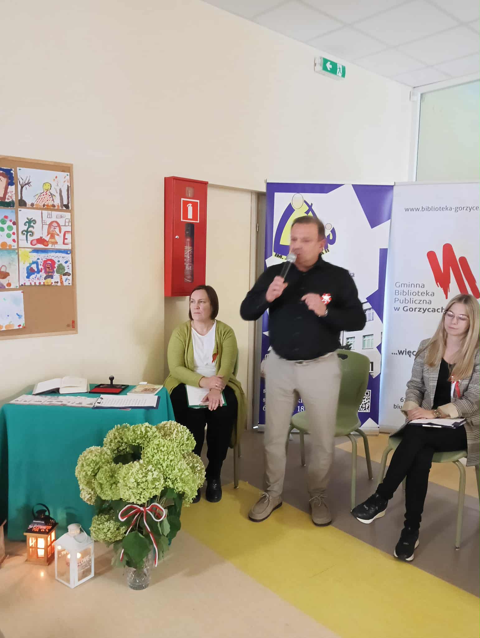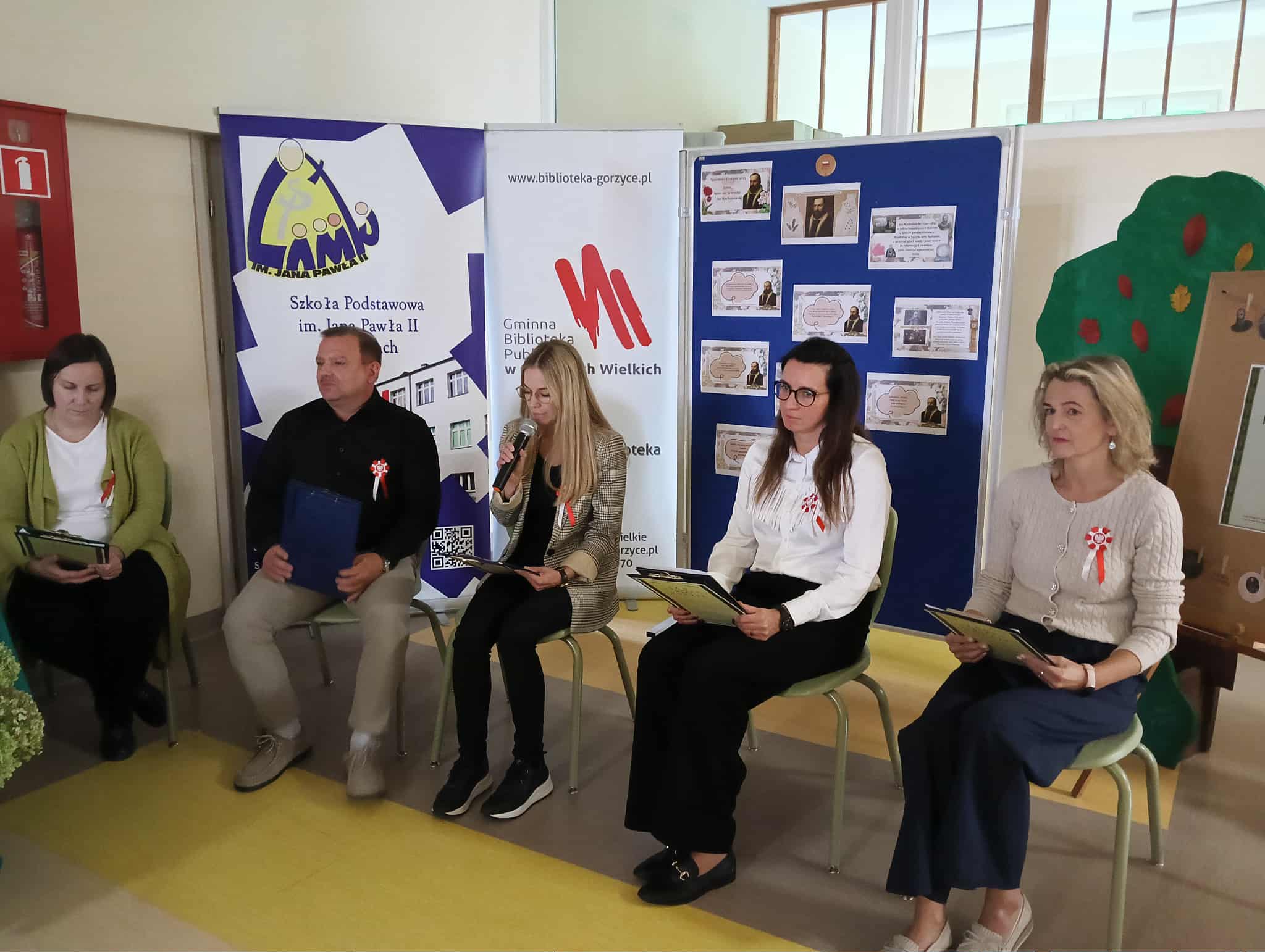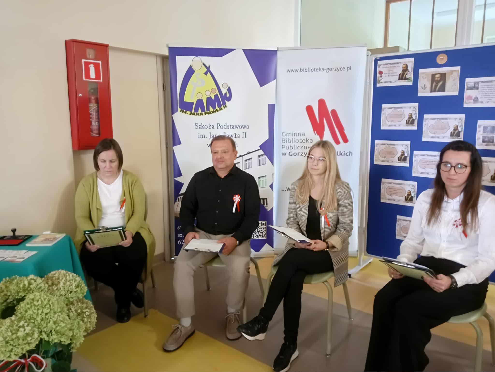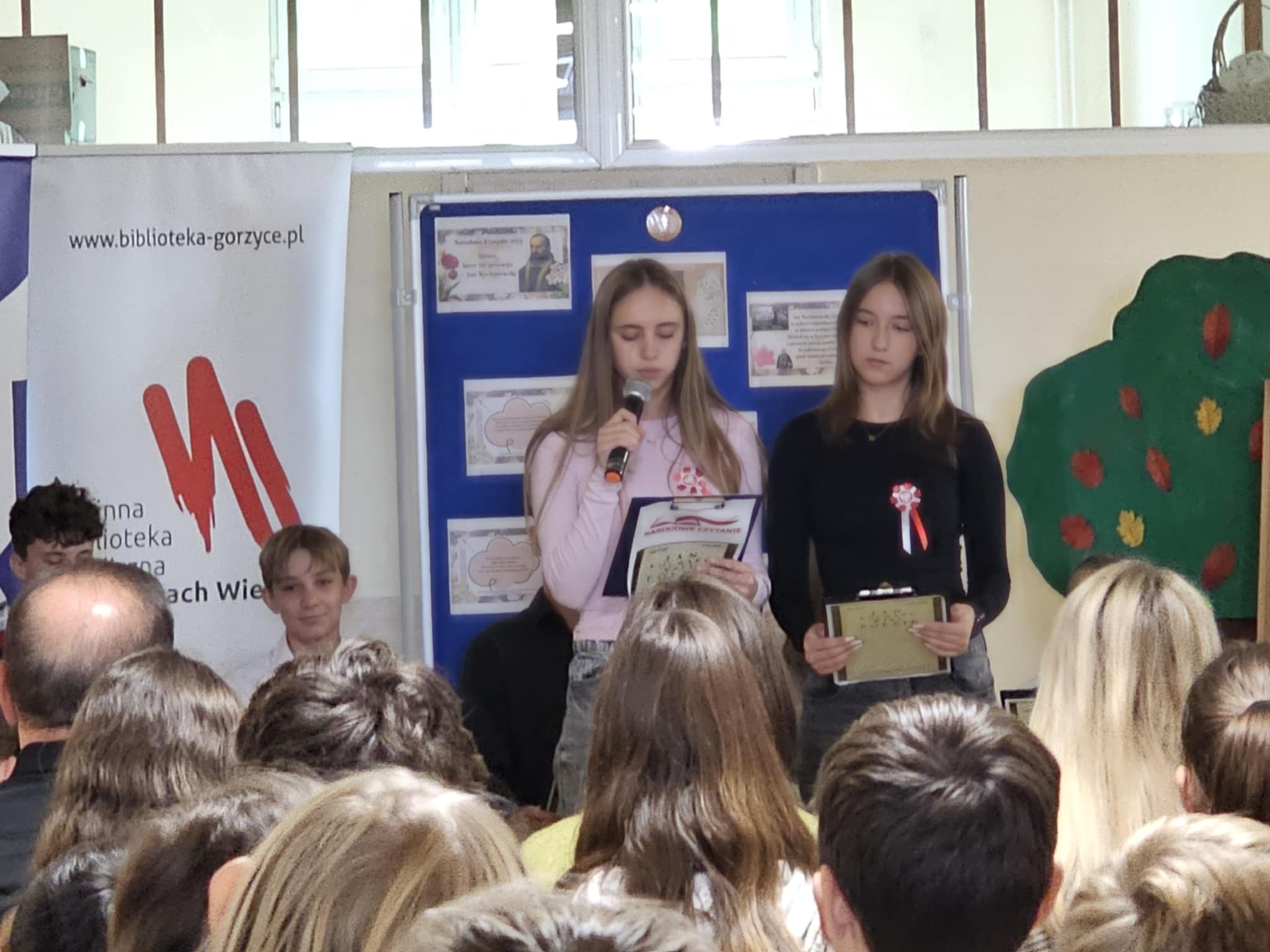 W poniedziałkowe przedpołudnie 29 września odbyło się w naszej szkole Narodowe Czytanie. Chociaż tradycję czytania dzieł znanych poetów i pisarzy polskich zainicjował już w 2012 roku ówczesny prezydent RP lekturą „Pan Tadeusz”, u nas czytanie odbyło się po raz pierwszy. W tym roku lekturą Narodowego Czytania była poezja Jana Kochanowskiego. To jeden z najwybitniejszych poetów i największych twórców europejskich epoki renesansu. Poezja Kochanowskiego porusza różnorodne tematy - od poważnych i doniosłych po lżejsze, refleksje moralne, nawiązania antyczne i biblijne. W wierszach odnajdujemy humanistyczną religijność, zachwyt życiem, ale też głęboką zadumę nad przemijaniem i ludzkim losem. Twórczość Kochanowskiego to m.in. treny poświęcone zmarłej córce, pieśni oraz prezentowane dziś fraszki, rymowane, krótkie utwory napisane w żartobliwy sposób, czasem złośliwy, zakończone puentą, czasem zaskakujące czytelnika. W pięknej, klimatycznej scenografii fraszki prezentowali uczniowie: Anastazja Borowczyk, Mateusz Kurkiewicz, Jakub Kruszyk, Adrian Grzesiak, Maja Rusek, Jagoda Pilarska, Gabriela Marciniak, Lena Strzelecka, Kacper Nyklewicz, a także: dyrektor Szkoły Podstawowej im. Jana Pawła II w Lamkach pan Tomasz Mocek, pani Joanna Wybierała, pani Izabela Stasiak oraz bibliotekarki, pani Sylwia Szymczak i pani Anita Kaczmarek z zaprzyjaźnionej biblioteki w Gorzycach Wielkich z filią w Lamkach. Nastrój był podniosły, uczniowe wraz z wychowawcami zasłuchani i skupieni. Po zakończeniu spotkania można było „ozdobić” swój prywatny tomik wierszy Jana Kochanowskiego pamiątkową pieczęcią z tegorocznego Narodowego Czytania. Z pewnością takie spotkania od dziś staną się tradycją w naszej szkole. S.Sz.