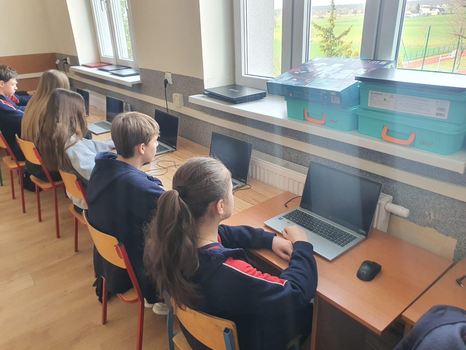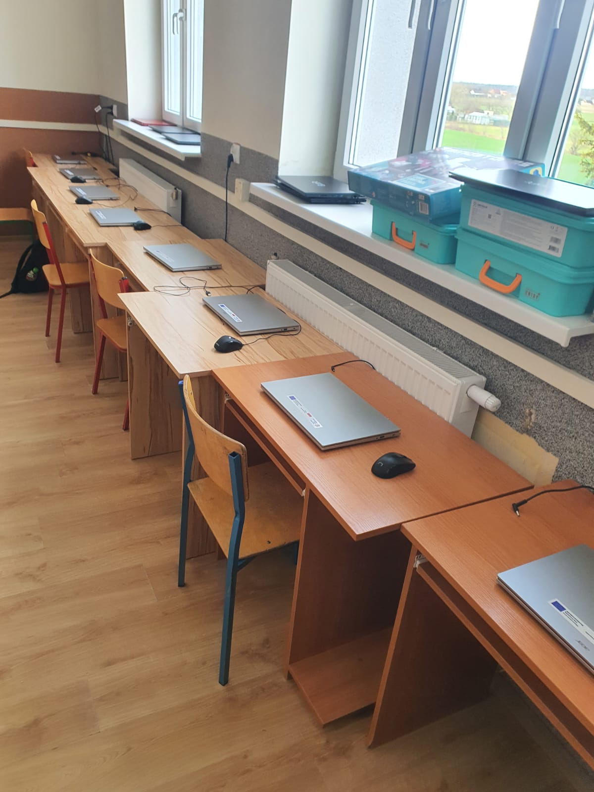 Dzięki środkom z Krajowego Planu Odbudowy (KPO) nasza szkoła wzbogaciła się o nowoczesny sprzęt komputerowy - 11 laptopów. Nowe wyposażenie umożliwia prowadzenie zajęć w sposób bardziej atrakcyjny, praktyczny oraz dostosowany do współczesnych potrzeb edukacyjnych, podnosząc tym samym jakość nauczania informatyki.