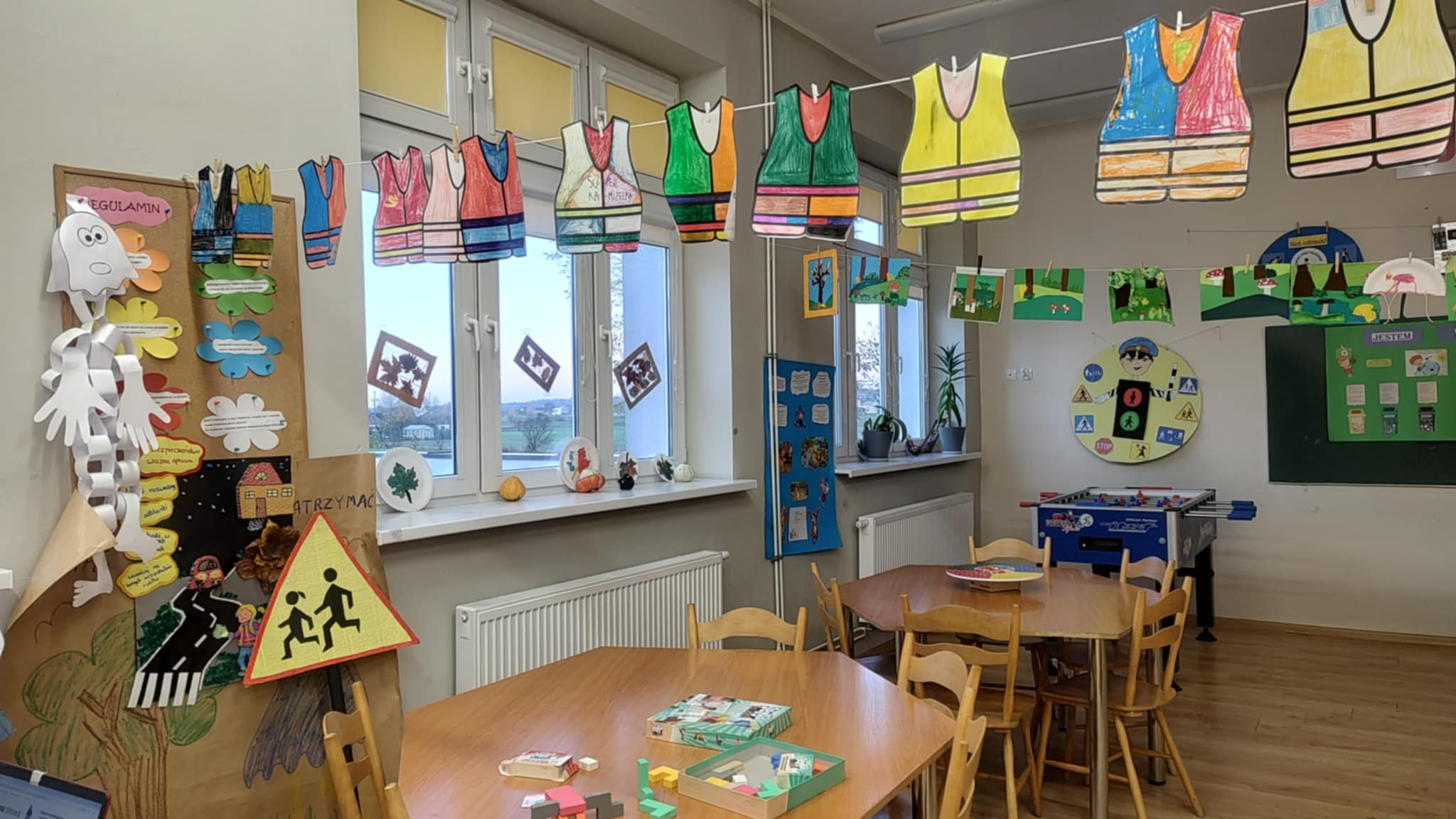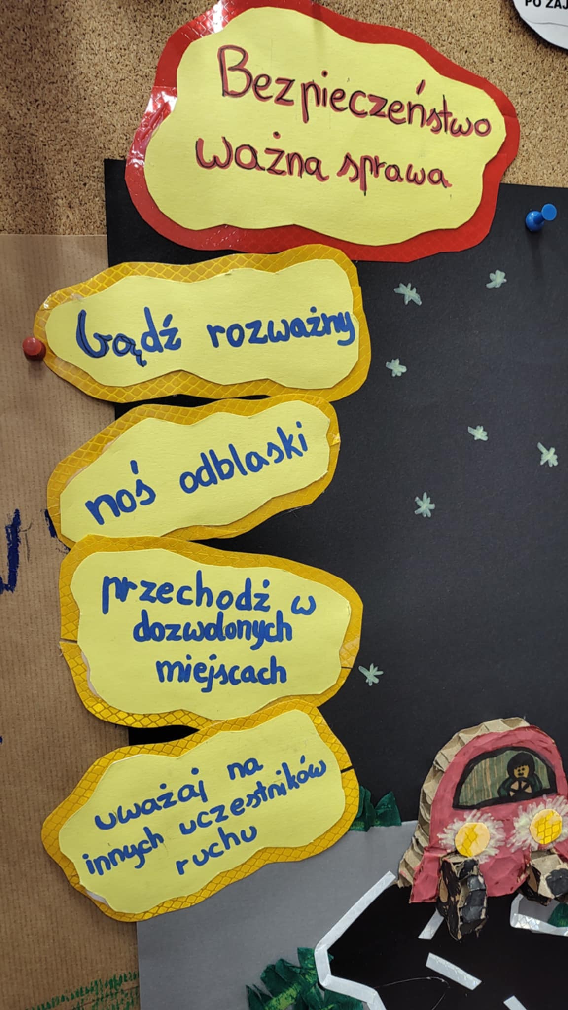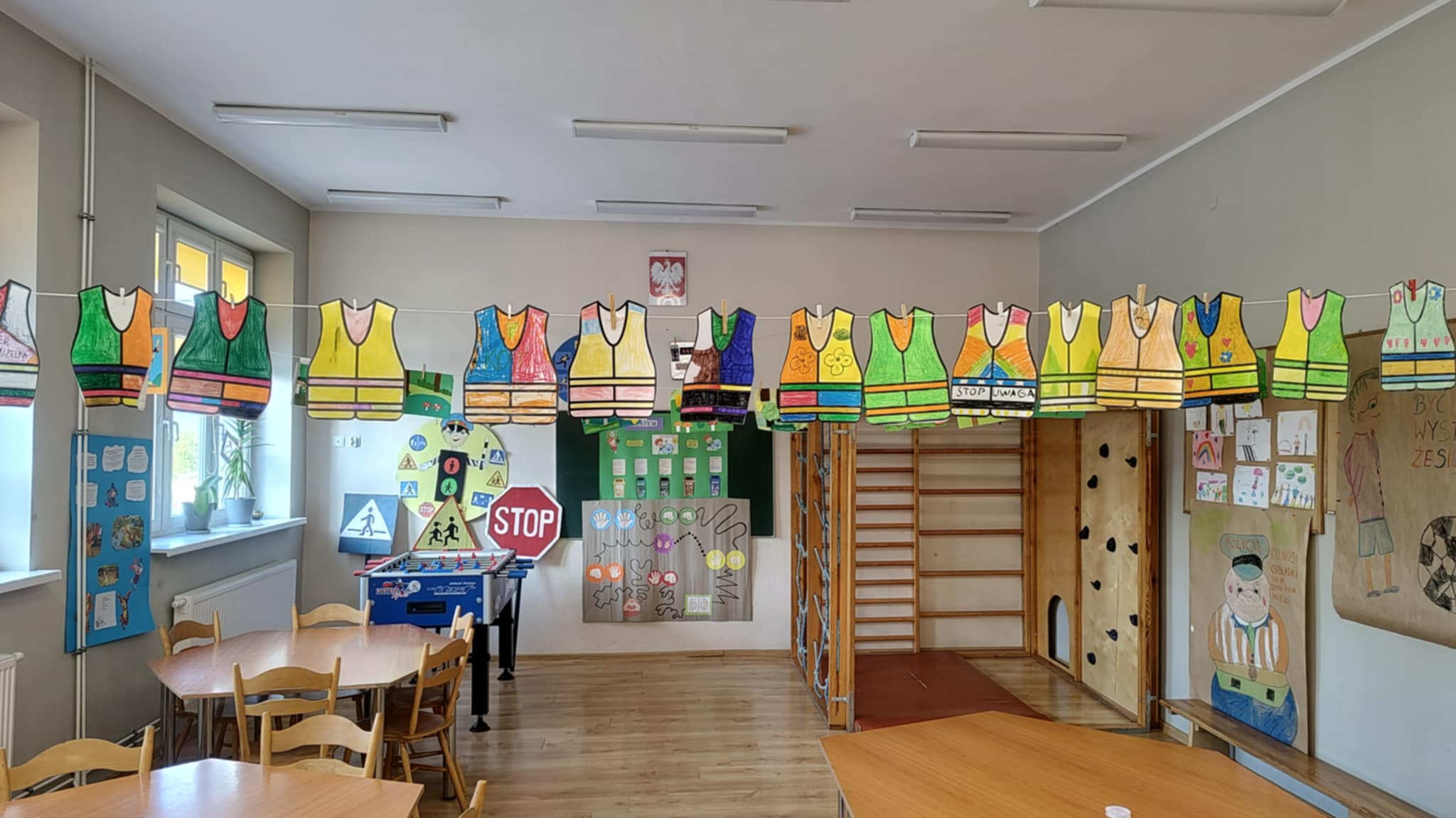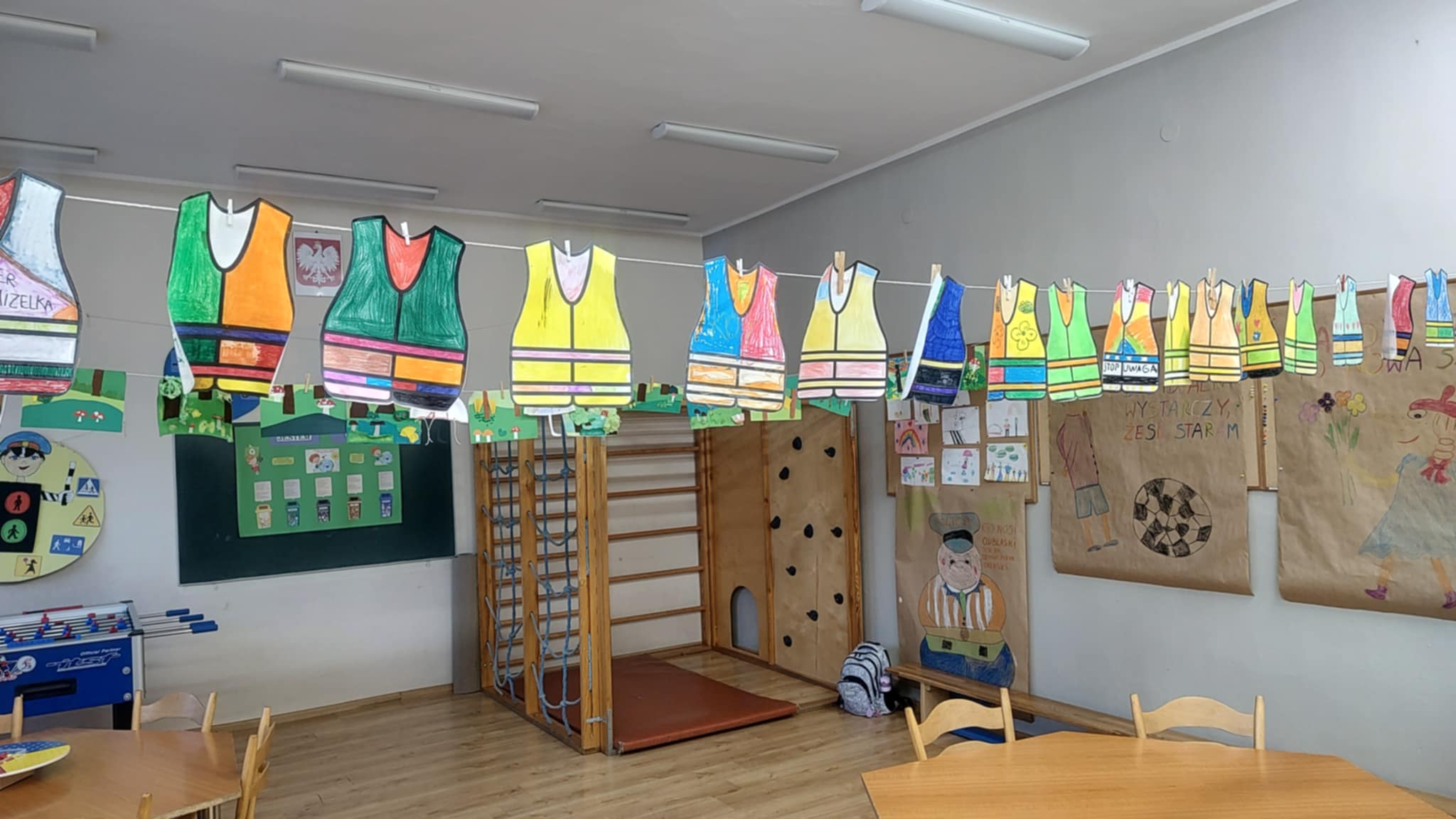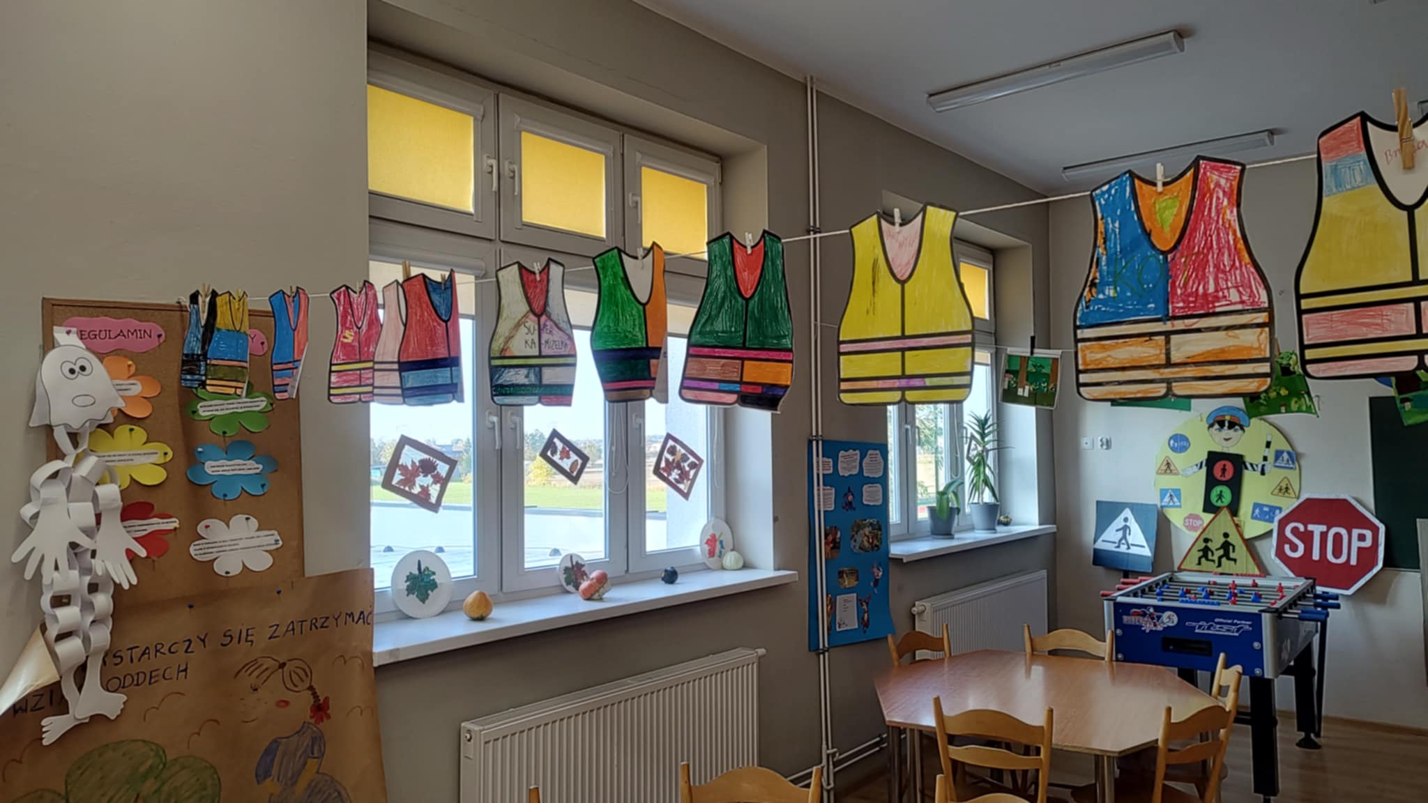 W ramach zajęć świetlicowych dzieci zaprojektowały własne kamizelki odblaskowe. Noszenie odblasków znacznie zwiększa bezpieczeństwo pieszych w ruchu drogowym . Świetlica świeci przykładem.