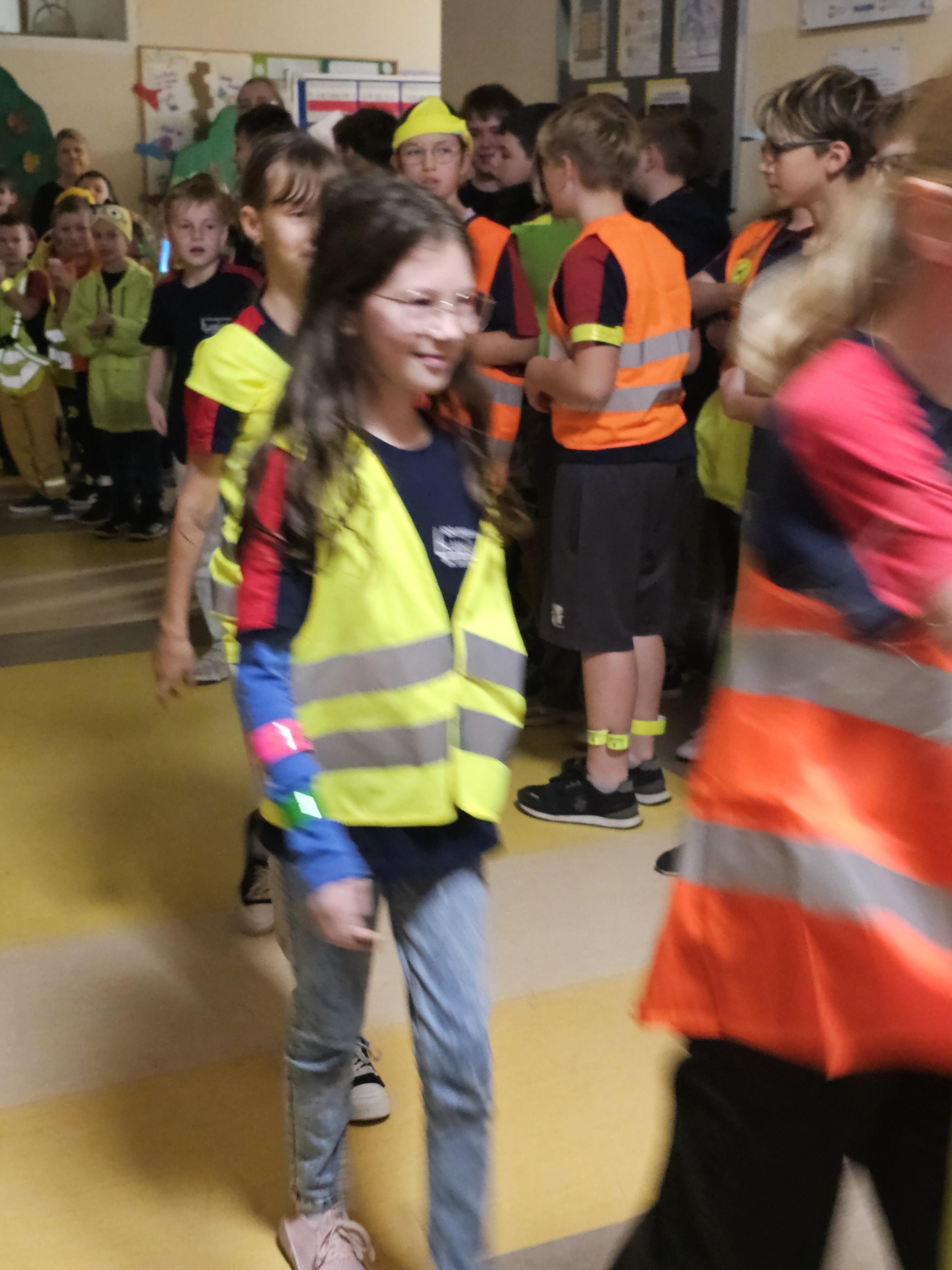 Uczniowie naszej szkoły wiedzą doskonale jak ważne jest noszenie elementów odblaskowych ,które znacznie zwiększają bezpieczeństwo w ruchu drogowym. 14 listopada zorganizowano " odblaskowy pokaz mody ". Chętni uczniowie z dumą prezentowali swoje stroje. Po głosowaniu i policzeniu głosów zwycięzcą okazał się Adam Przeniczny z klasy 4. Drugie miejsce przyznano Zosi Wróbel z klasy drugiej, a trzecie miejsce Ameli Siudy z klasy czwartej. Wszyscy uczniowie zasłużyli na pochwałę i wyróżnienie. To był bardzo dobry pokaz mody ,którego nie powstydziłby się żaden światowej sławy projektant. Dziękujemy zaangażowanym Uczniom i Rodzicom.