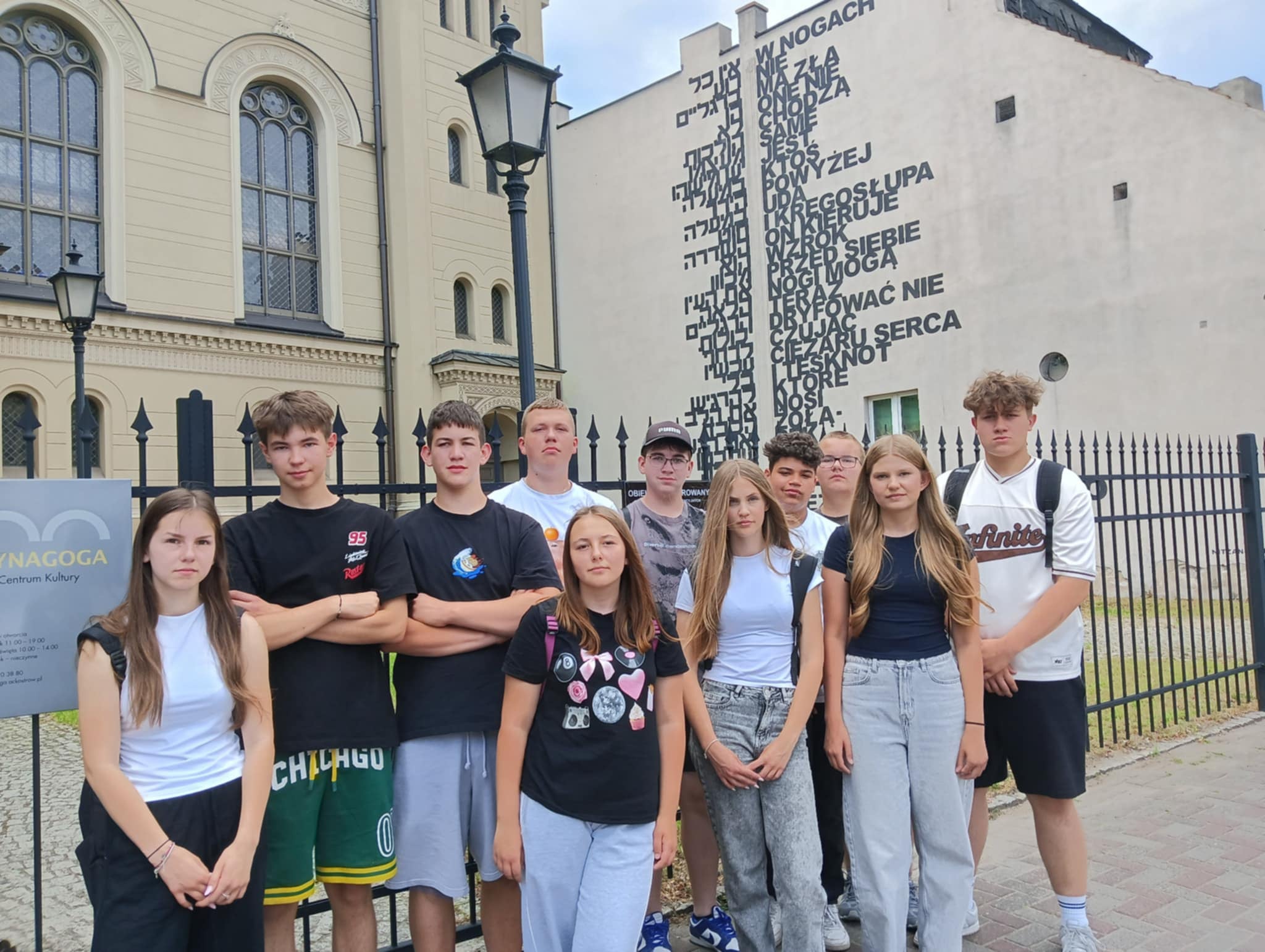 Podczas spaceru po centrum uczniowie poznali budowlę dawnej  Synagogi – dziś Centrum Kultury, które robi wrażenie zarówno swoją architekturą, jak i historią. Nie zabrakło również krótkiego wspomnienia o jednej z ważnych postaci związanych z Ostrowem – Stefanie Rowińskim, zasłużonym księgarzu, drukarzu i wydawcy, który odegrał istotną rolę w krzewieniu kultury i edukacji w regionie.