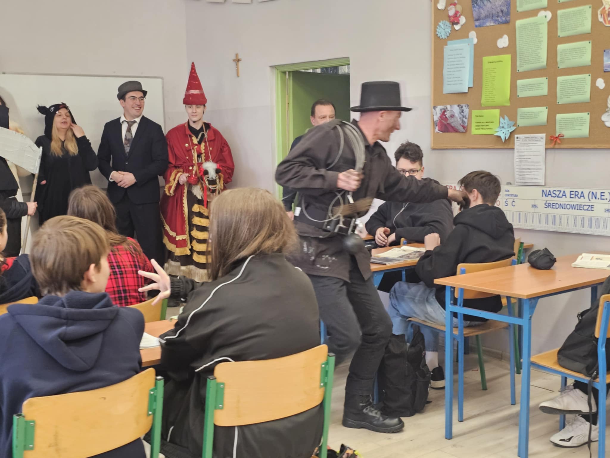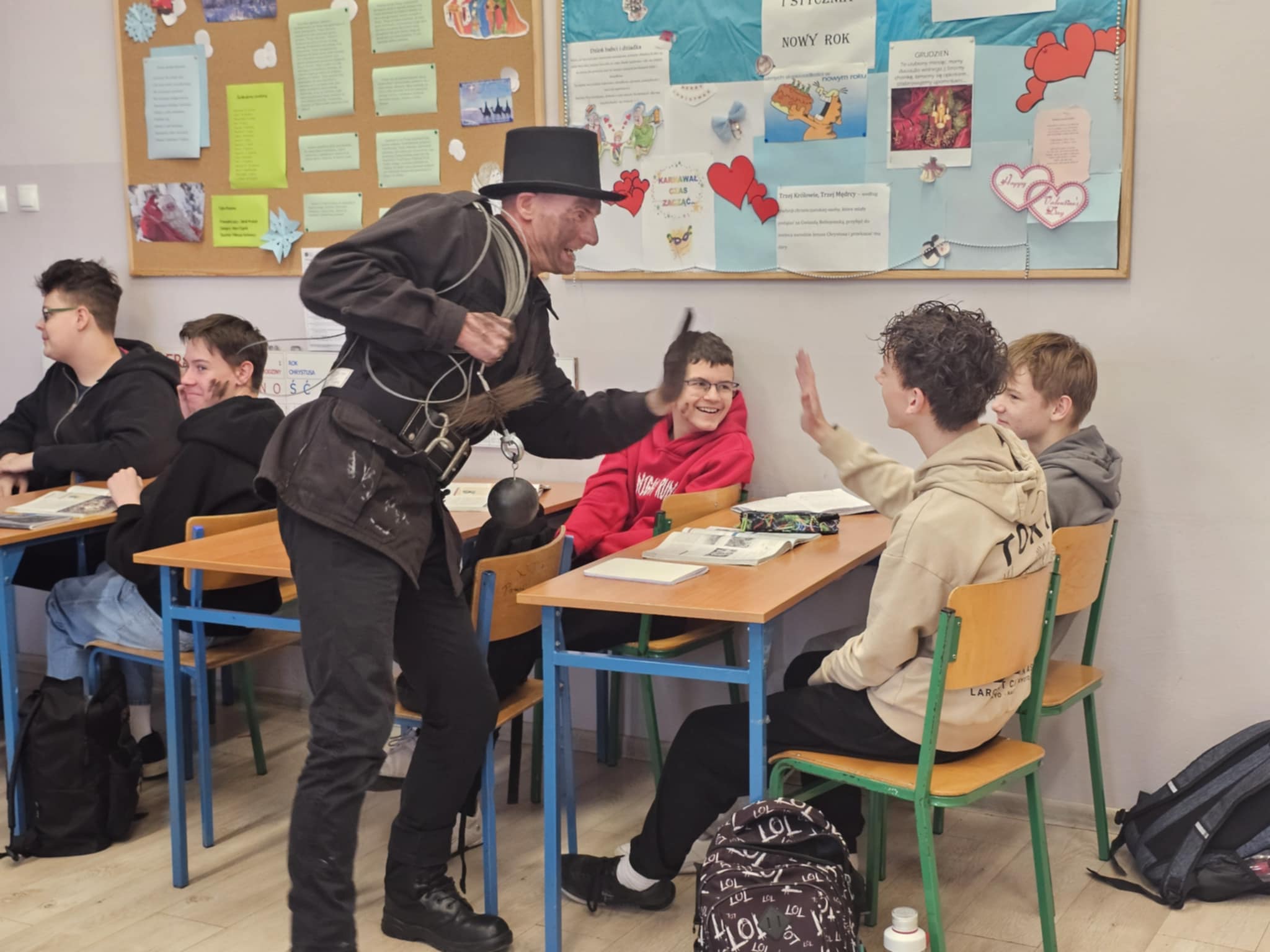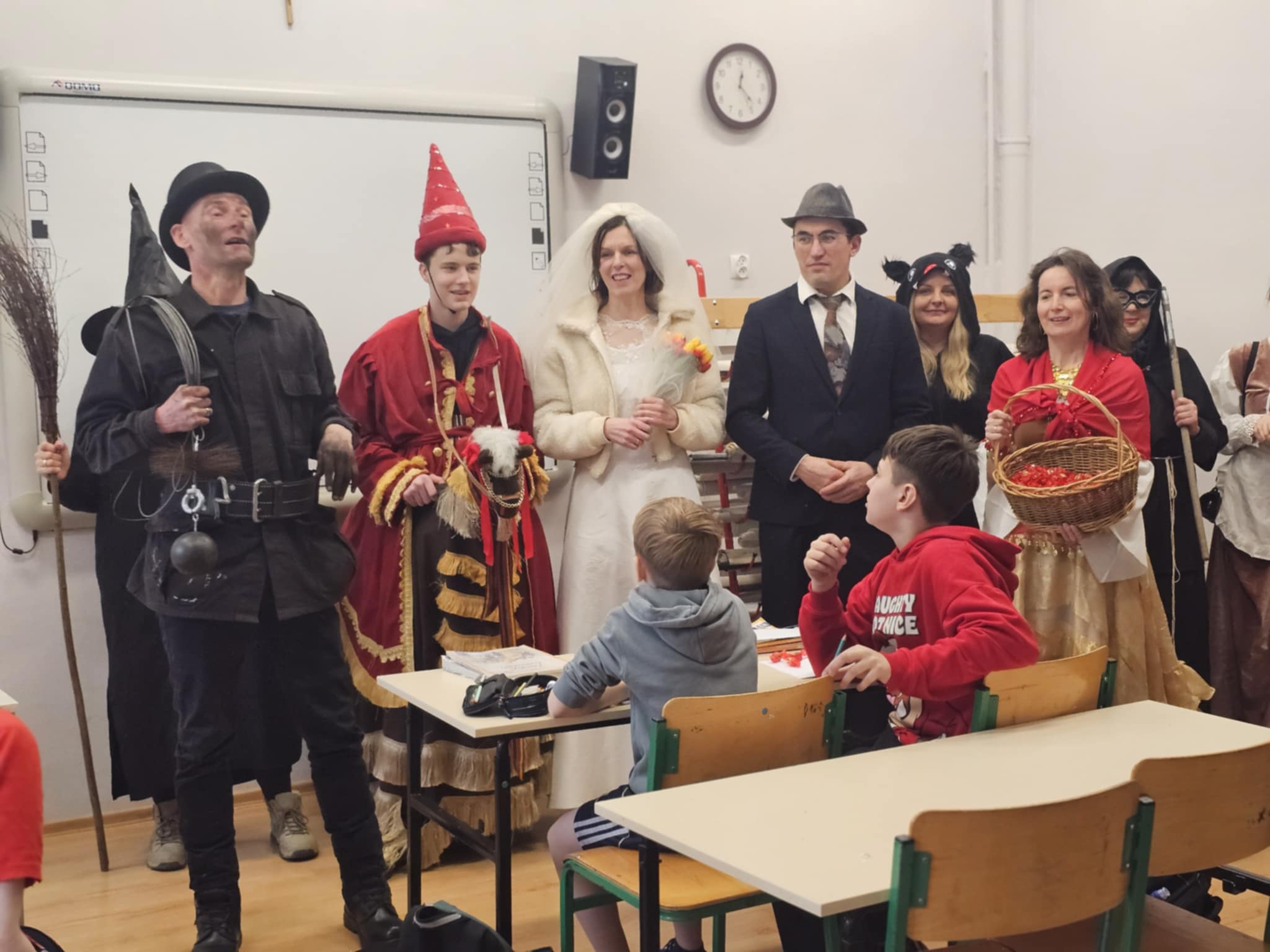 Jak głosi tradycja, podkoziołek, ostatki lub jak kto woli, zapustny wtorek, to ludowa zabawa karnawałowa z regionów Wielkopolski i Kujaw. To inaczej ostatni dzień przed wielkim postem, koniec hucznych zabaw i imprez. I taka podkoziołkowa niespodzianka spotkała dziś uczniów i pracowników naszej szkoły. Ciszę lekcyjną przerwała skoczna muzyka akordeonowa i ludowe przyśpiewki oraz goście w postaci rodziców, znajomych i przyjaciół szkoły. Wesołe zaczepki poczynili dziś społeczności szkolnej m.in młoda para cyganka, kominiarz, dziewczęta w strojach ludowych i inne pomysłowe postaci, z imponujących rozmiarów Lajkonikiem na czele. To piękny zwyczaj, niosący radość.