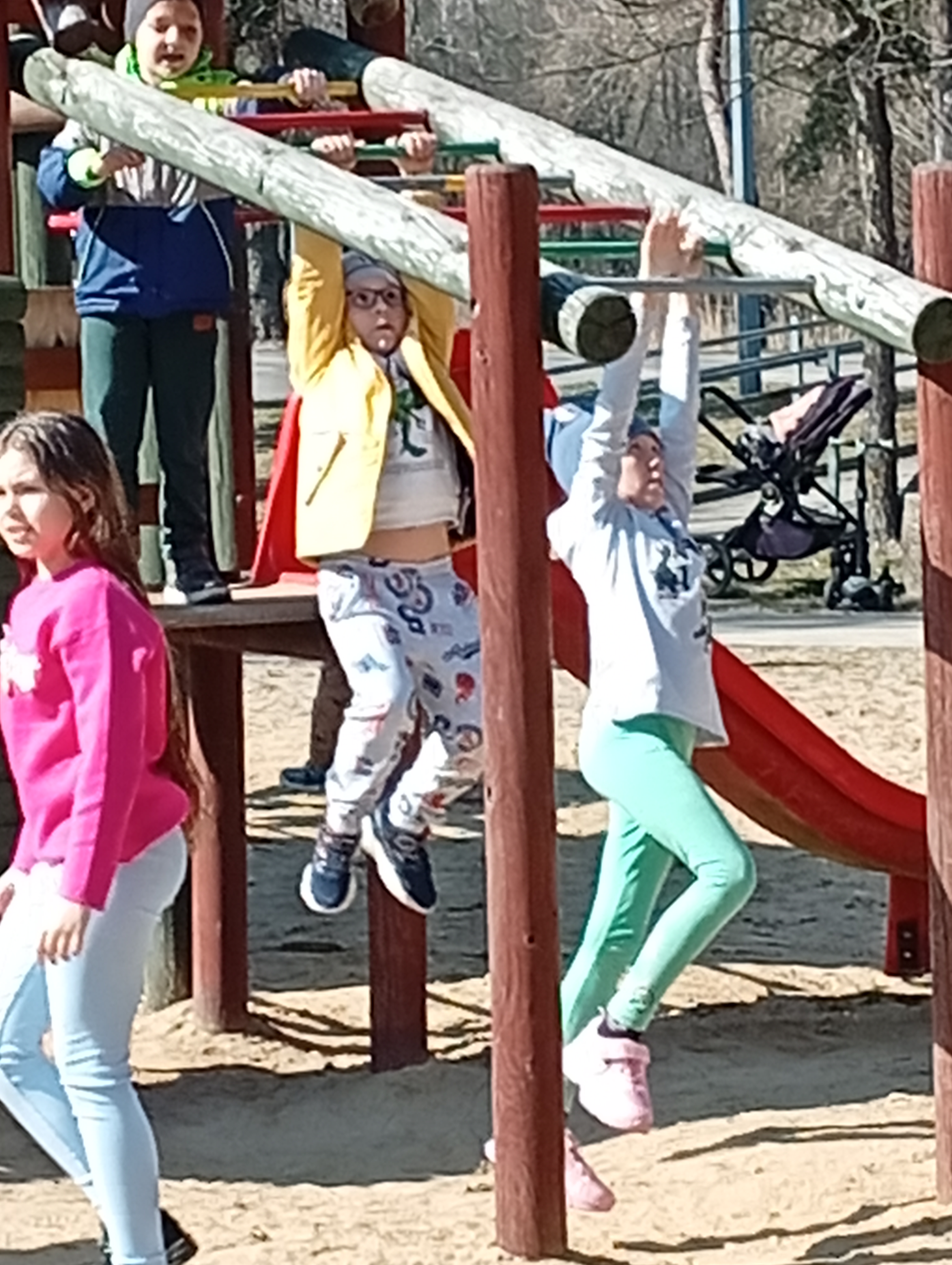 Po zakończonym seansie udaliśmy się na wycieczkę na Piaski - Szczygliczka w celu obserwacji  zwiastunów wiosennej przyrody. Kolejnym przystankiem naszej wycieczki był plac zabaw. Dzieci szybko znalazły na nim  swoje ulubione miejsca na zabawę. Po chwili zaczął on tętnić życiem. Powitanie wiosny na placu zabaw okazało się nie tylko doskonałą okazją do aktywności fizycznej, ale również świetnym  sposobem  integracji uczniów, wzmocnienie więzi koleżeńskiej oraz cieszenia się pierwszymi promieniami wiosennego słońca.