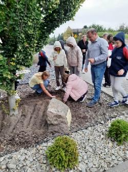 Przedstawiciele wszystkich klas wraz z panem Tomaszem Mockiem, dyrektorem szkoły, zasadzili na szkolnej rabacie 100 nowych cebulek. Na efekty naszej pracy musimy poczekać do wiosny, kiedy to wraz z pierwszymi promieniami słońca żonkile zaczną wychylać swoje piękne główki, stając się symbolem nadziei.