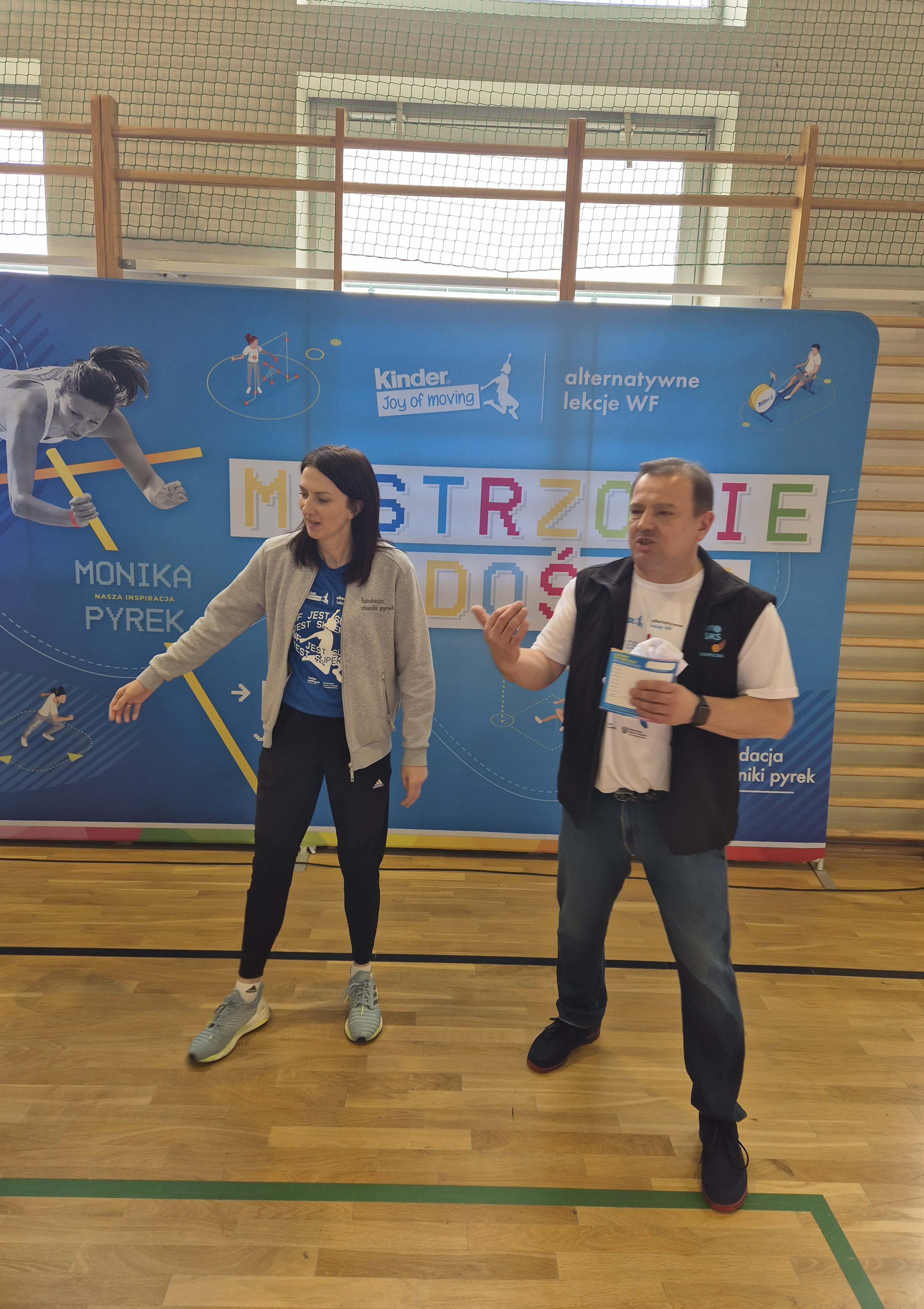 Społeczność uczniowska klas 4-8 wraz z panem dyrektorem Tomaszem Mockiem, wuefistą oraz z wychowawcami udała się na pieszą wędrówkę do Gorzyc Wielkich na spotkanie z jedną z najlepszych polskich lekkoatletek w historii dyscypliny, specjalizującą się w skoku o tyczce, Moniką Pyrek. Pani Monika ma na swoim koncie dwa srebrne i jeden brązowy medal Mistrzostw Świata, a także srebro Mistrzostw Europy i dwa brązy Halowych Mistrzostw Europy. Po zakończeniu kariery sportowej nadal działa na rzecz promocji sportu i jako ambasadorka programu Kinder Joy of moving w Polsce, inspiruje najmłodszych oraz ich rodziny do prowadzenia aktywnego stylu życia, realizując projekt „Alternatywne Lekcje WF”.