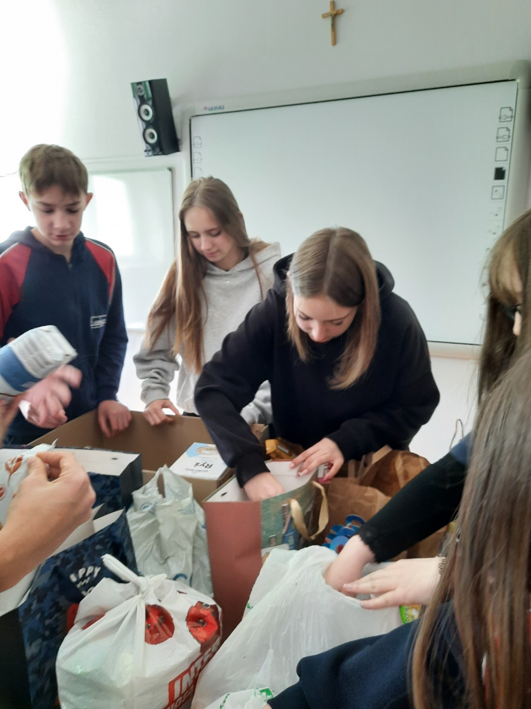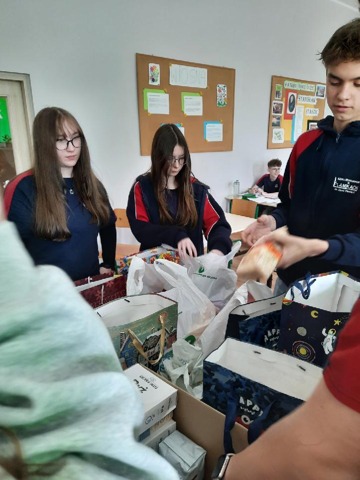 Dziękujemy całej społeczności szkolnej za włączenie się w przedświąteczną akcję charytatywną, którą zorganizowało Szkolne Koło Wolontariatu. Przez cały ubiegły tydzień zbieraliśmy słodycze i inne artykuły spożywcze o przedłużonym terminie przydatności do spożycia. W poniedziałek 30 marca wszystkie zebrane produkty zostały przekazane