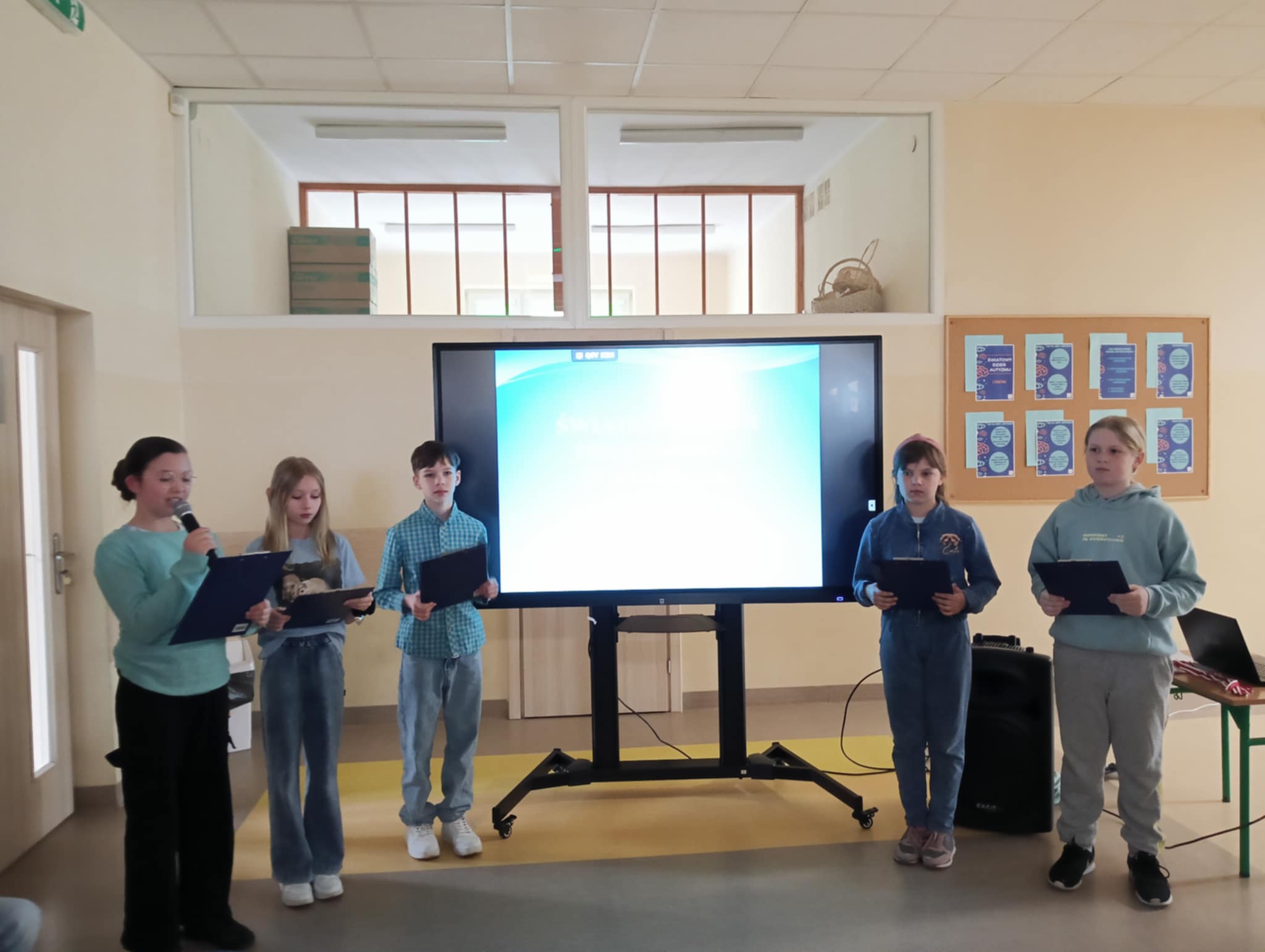 W dniu 1.04.25r. spotkaliśmy się w przeddzień obchodów Światowego Dnia Świadomości Autyzmu, aby solidaryzować się z osobami z autyzmem oraz zapoznać się z najważniejszymi informacjami, dotyczącymi tego zaburzenia. Uczniowie klasy IV przybliżyli społeczności szkolnej definicję autyzmu, omówili objawy oraz cechy, a także zapoznali z zasadami komunikowania się z osobami ze spektrum autyzmu. Na znak solidaryzowania się uczniowie ubrali się na niebiesko.