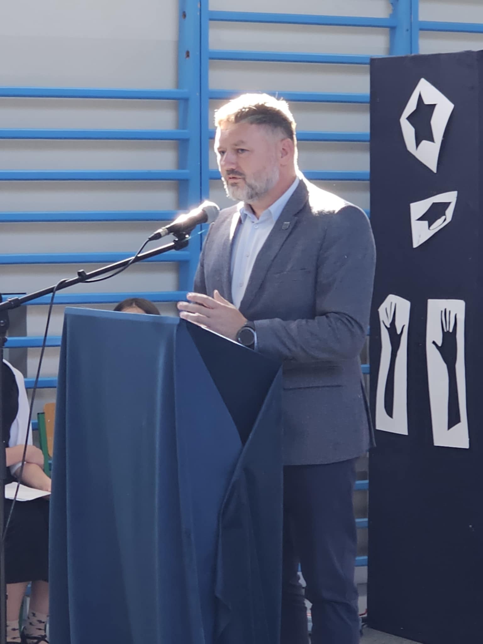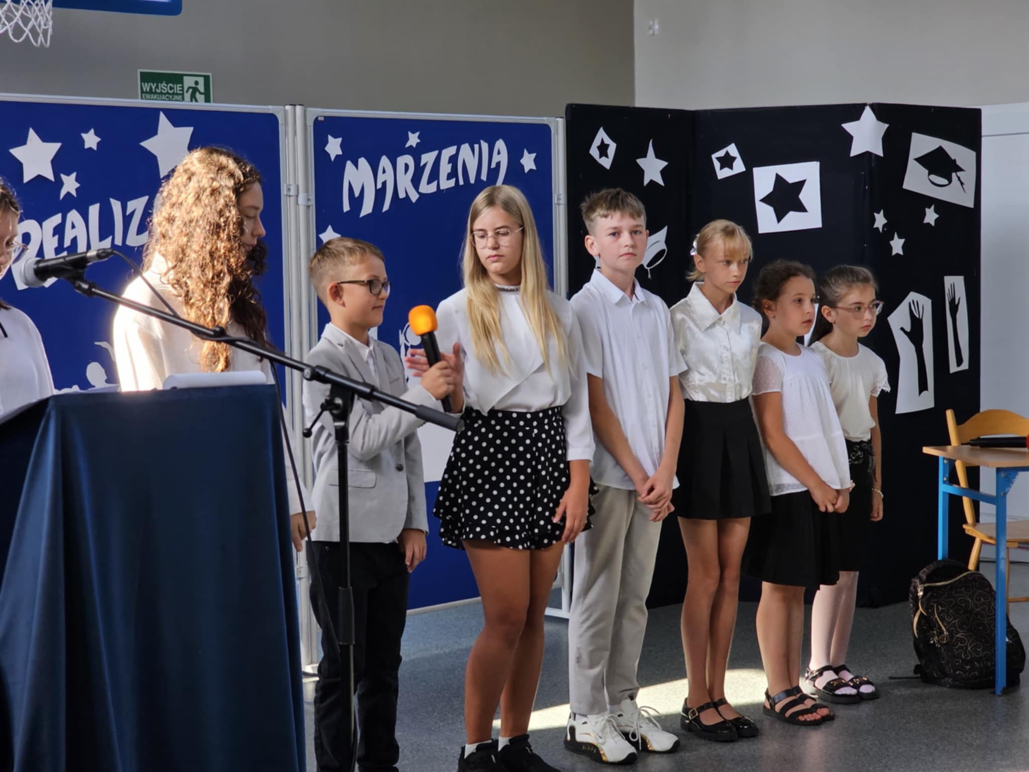 Dzisiaj z radością powitaliśmy nowy rok szkolny 2025/2026. Wspólnie odśpiewaliśmy hymn Polski, uczciliśmy 86 rocznicę wybuchu II wojny światowej, wysłuchaliśmy krótką część artystyczną. Następnie dyrektor szkoły Tomasz Mocek przypomniał zgromadzonym podstawowe informacje na temat organizacji pracy w nowym roku szkolnym oraz życzył uczniom i pracownikom szkoły wielu sukcesów, ciekawych doświadczeń i radosnych chwil spędzonych w naszej szkole. Życzenia z okazji rozpoczęcia roku szkolnego złożył również zastępca wójta Paweł Małuszek.