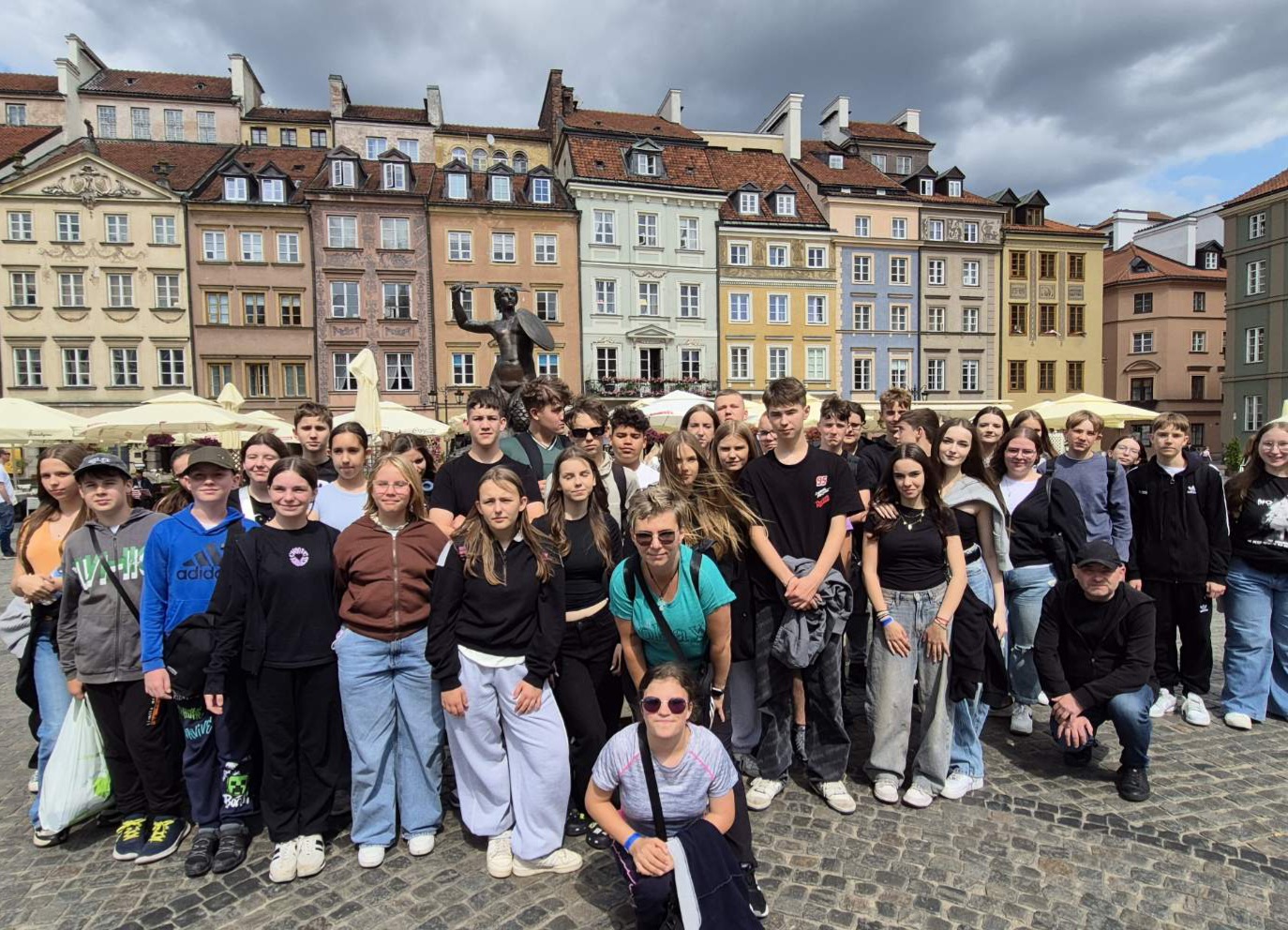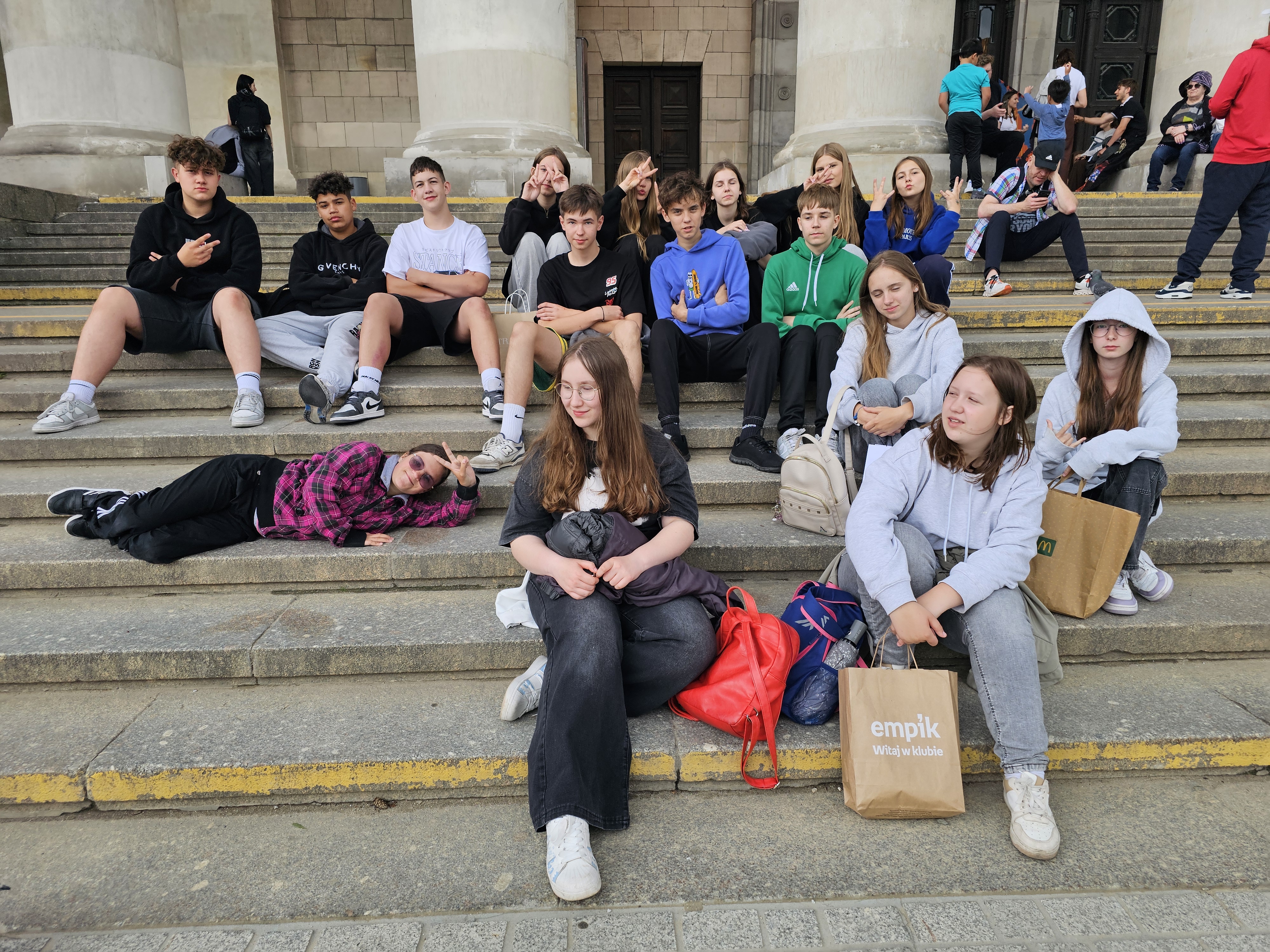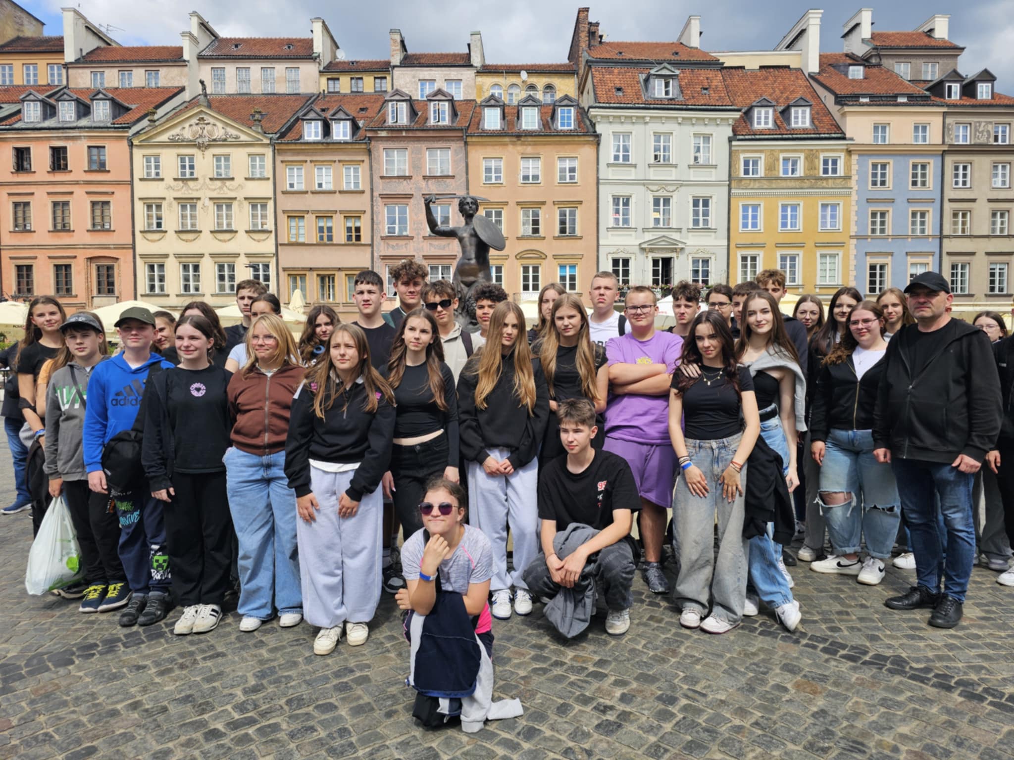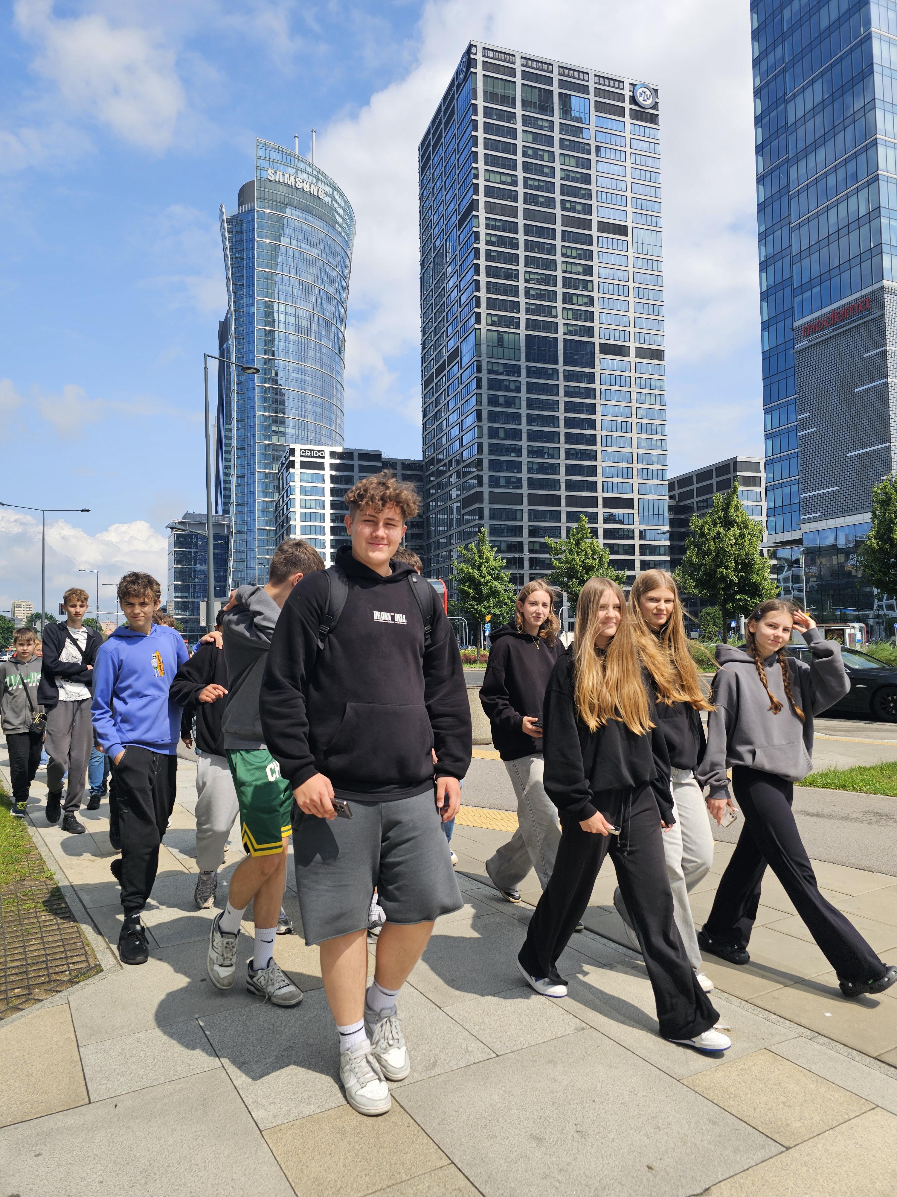 W dniach 11 i 12 czerwca uczniowie klas 7 i 8 zwiedzali stolicę. Po przyjemnej i płynnej podróży pociągiem nawet deszcz nie był nam straszny. Mokrzy, ale szczęśliwi dotarliśmy do naszego hostelu. Pierwszego dnia zwiedziliśmy okolice Pałacu Kultury. Podziwialiśmy panoramę Warszawy 360° z tarasu widokowego na 30 piętrze Pałacu Kultury. Kolejną atrakcją było Muzeum Powstania Warszawskiego. Mimo, że deszcz nie dawał nam spokoju, po ponad 15km na nogach wróciliśmy szczęśliwi do hostelu. Następnego dnia po śniadaniu wyruszyliśmy na wykład doktora Artura Małolepszego do Politechniki Warszawskiej. Wykład dotyczył tematyki węgla i ogniw paliwowych. Zwiedziliśmy wydział inżynierii chemicznej i procesowej, który mieści się w gmachu im. Janusza Cibrowskiego. Przyglądaliśmy się laboratoriom wydziału słuchając ciekawostek dotyczących badań przeprowadzanych w tych laboratoriach. Po wykładach bardzo przyjemny okazał się spacer rynkiem Starego Miasta. Czekała na nas oświetlona promieniami słońca Syrenka Warszawska. Pogoda w drugim dniu pobytu wynagrodziła nam niedogodności, których doświadczyliśmy pierwszego dnia. Organizatorem wycieczki był Pan Rafał Jakubowski. Uczniowie zmęczeni, ale wdzięczni i szczęśliwi wrócili do domu. J. Nowacka
