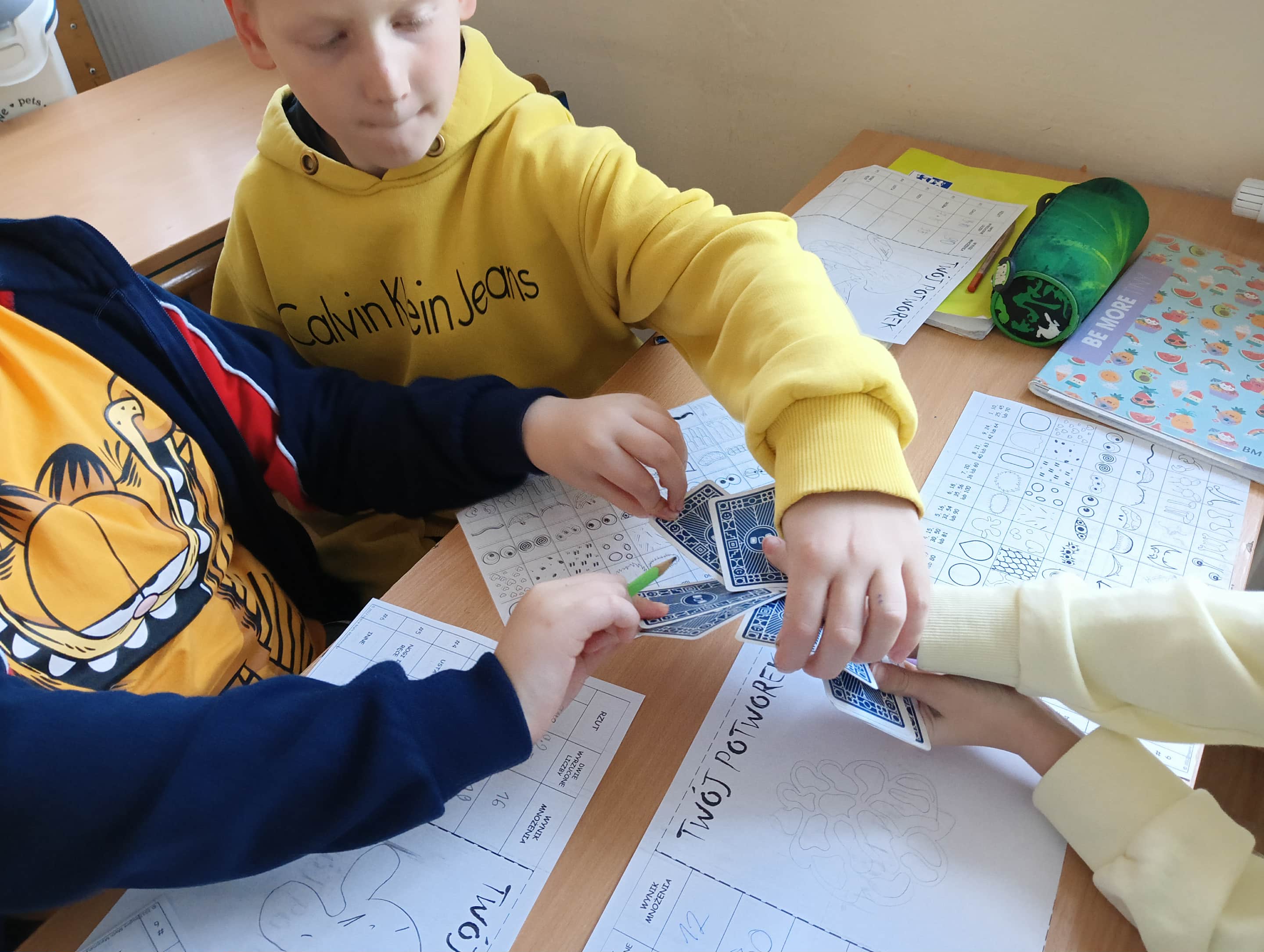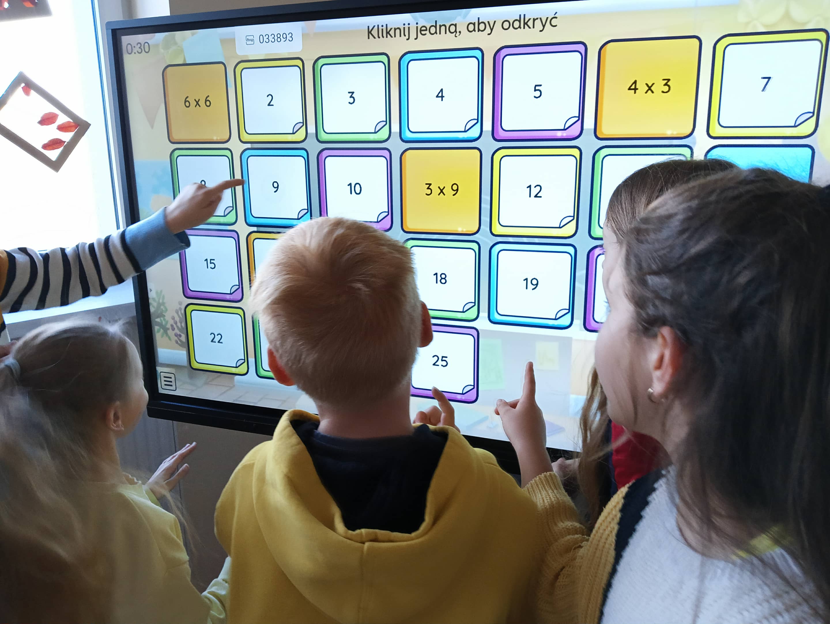 Nie zabrakło również nowoczesnych form nauki – uczniowie kodowali wiadomości do kolegów za pomocą działań z tabliczki mnożenia, grali w zabawy multimedialne na tablicy interaktywnej, a także korzystali z popularnych Kart Grabowskiego.