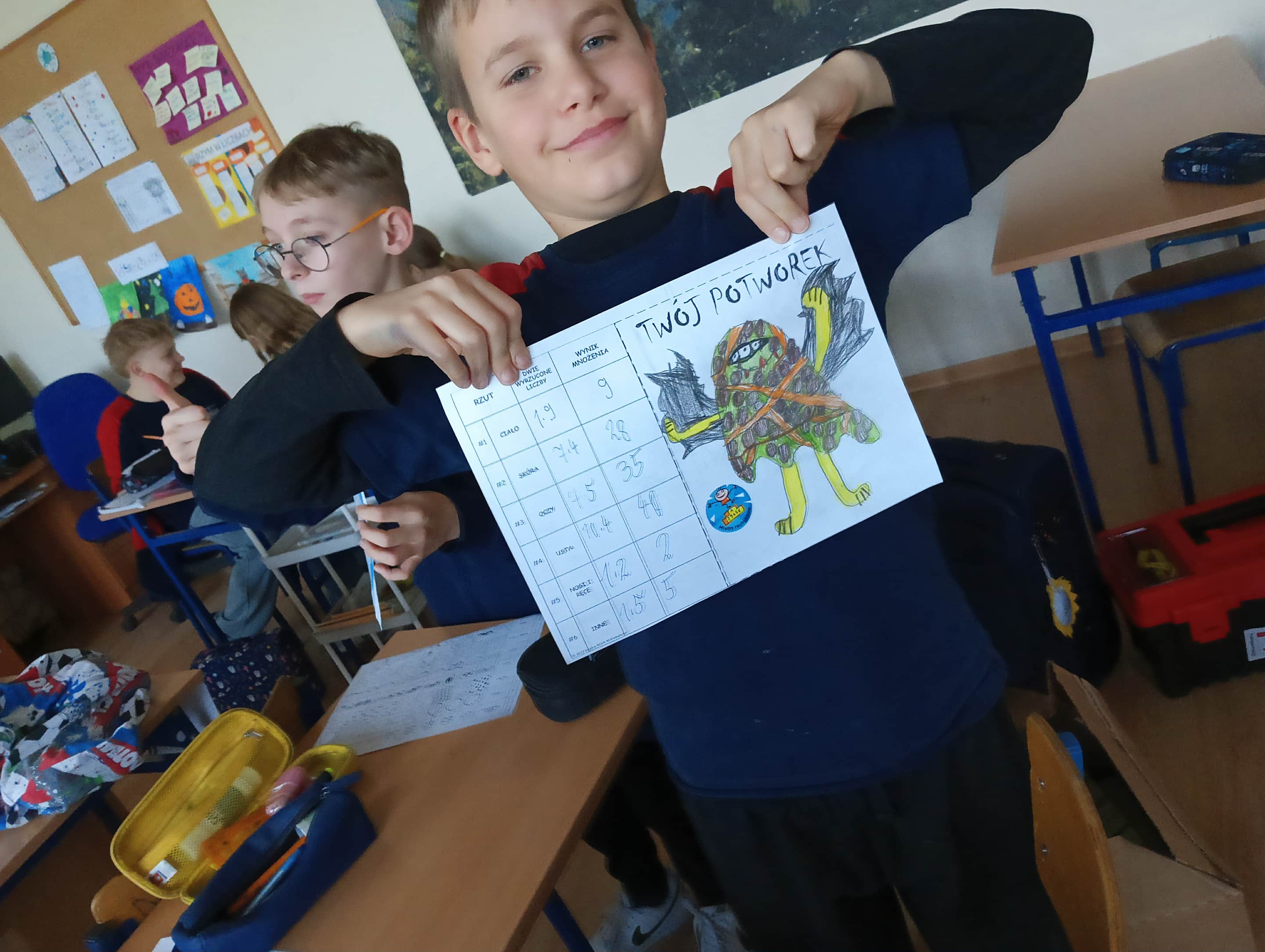 W ramach obchodów uczniowie tworzyli własne „potworki matematyczne”, grając w gry oparte na tabliczce mnożenia. Przy okazji mogli wykazać się także talentami polonistycznymi – każdy potworek został opisany w ciekawy i pomysłowy sposób. Bezkonkurencyjnym autorem opisu okazał się Franek, którego praca zachwyciła kreatywnością i humorem.