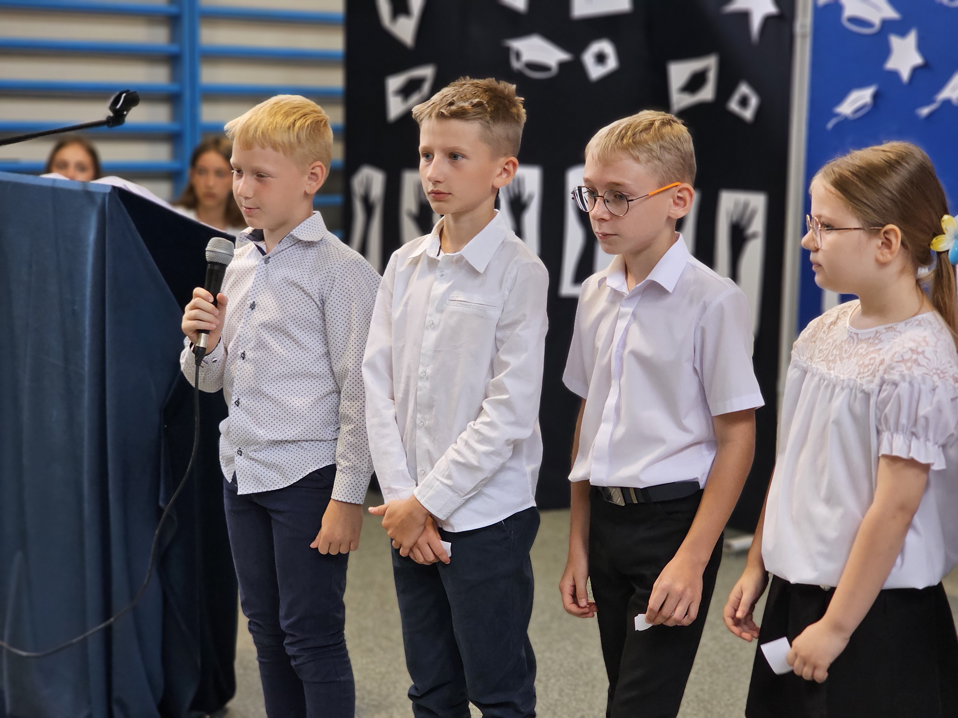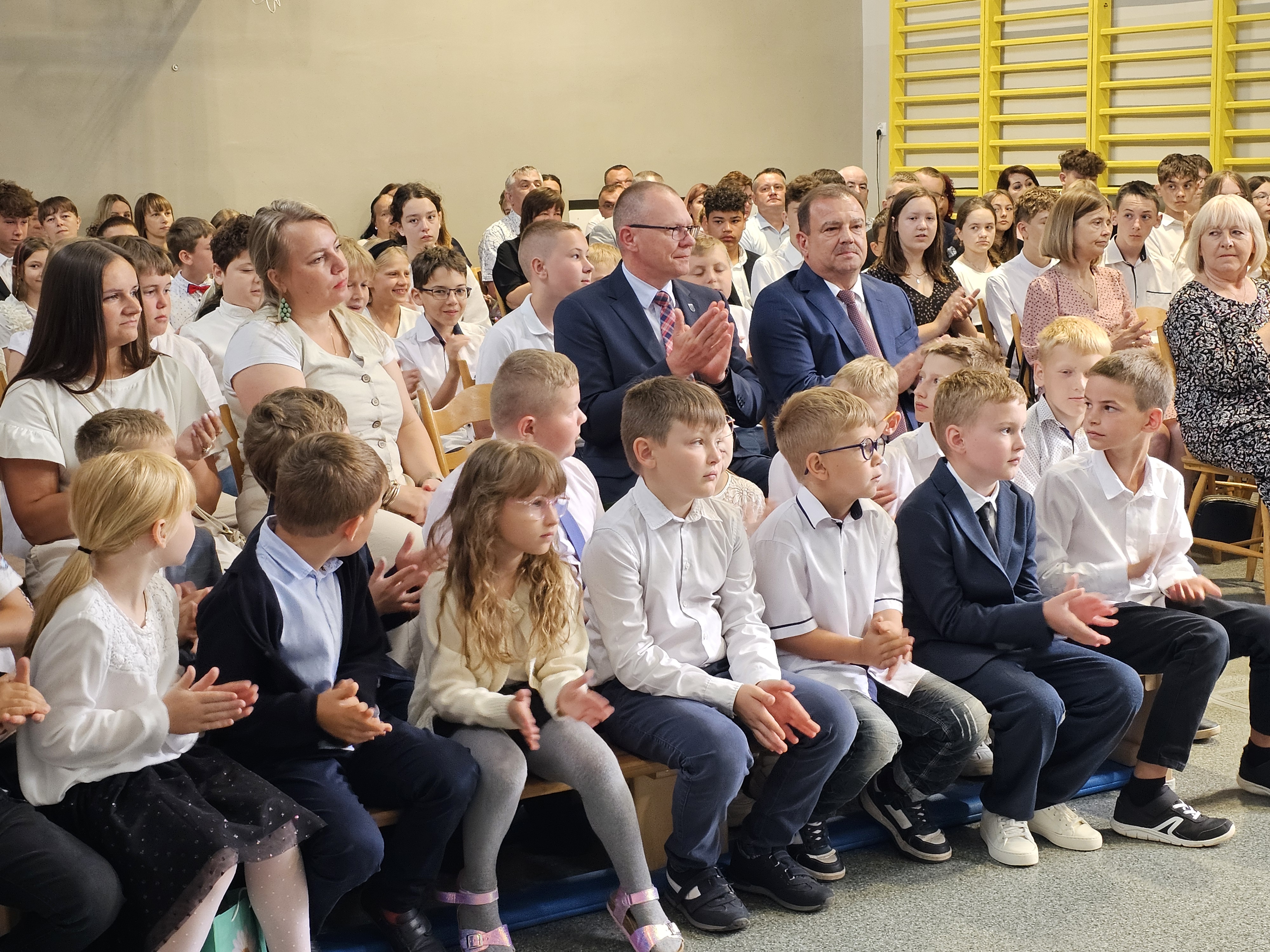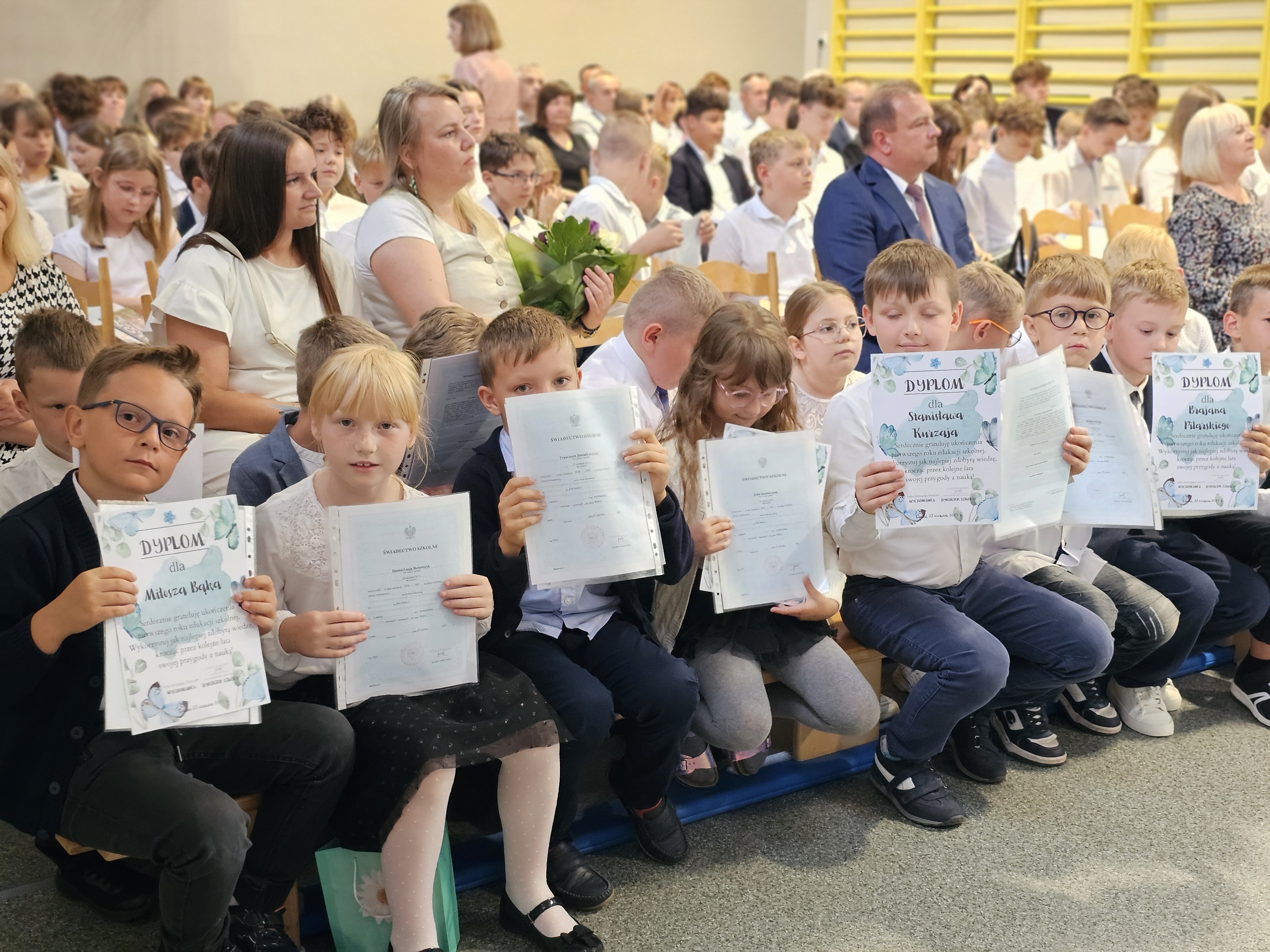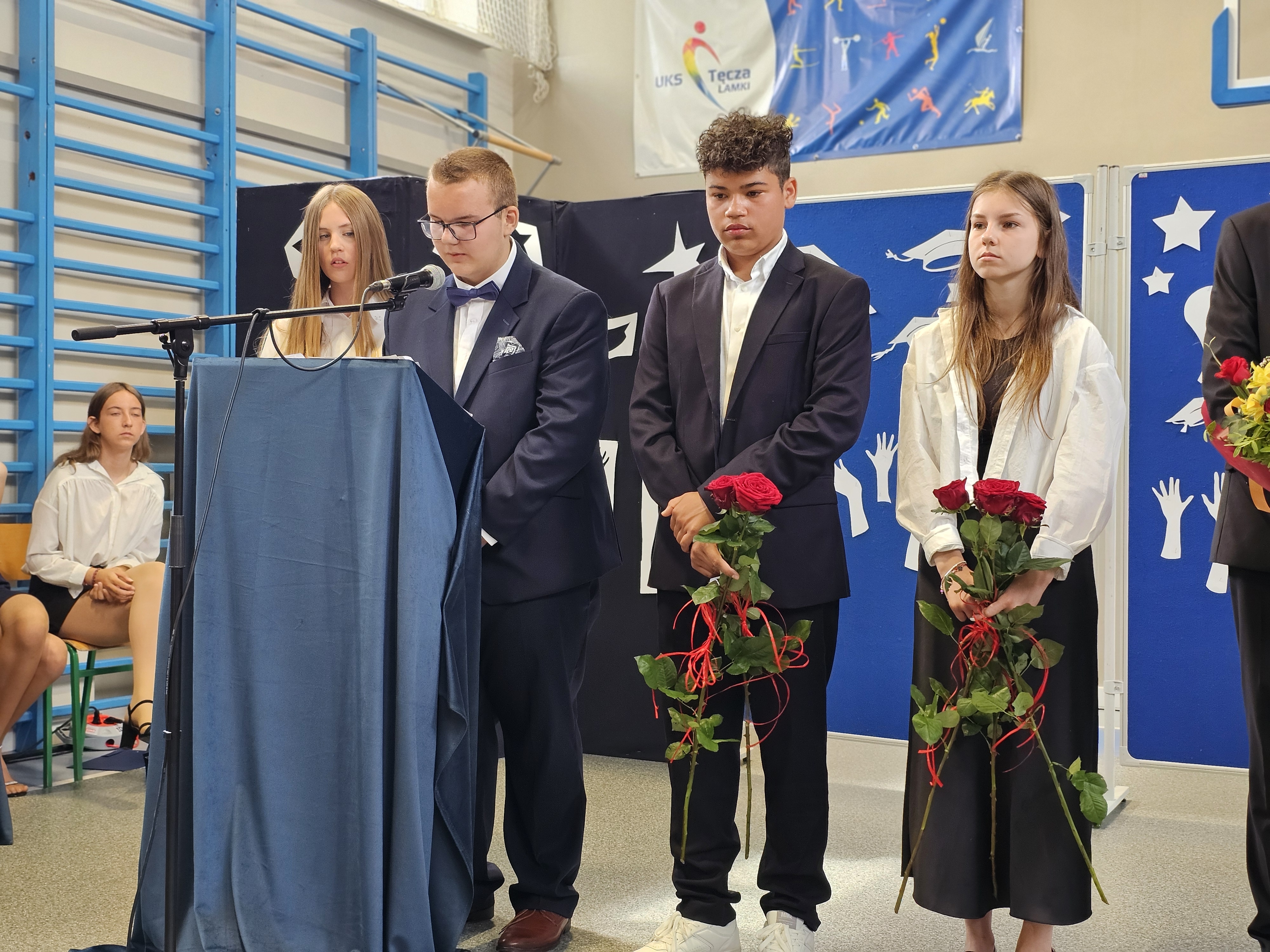 Kolejny piękny i pracowity rok szkolny za nami. Zakończenie roku to zawsze wzruszający czas podziękowań, podsumowań i pożegnań. Każdy chce coś powiedzieć, kogoś wyróżnić, o kimś wspomnieć, spróbować nie pominąć. To czas płynącej z serca nostalgii. Podczas uroczystej akademii starsze koleżanki i kolega powierzyli siódmoklasistom opiekę nad sztandarem szkoły. Odśpiewano „Mazurka Dąbrowskiego” i hymn szkoły. To bardzo uroczysty moment i niezwykle wzruszający. Następnie uczennice klasy czwartej podziękowały dyrektorowi szkoły i wszystkim nauczycielom za pracę, przekazywanie wiedzy, zrozumienie, serce, dobre słowo i zaangażowanie. Uczniowie klasy siódmej wraz z wychowawczynią pożegnali uczniów klasy ósmej. Popłynęły łzy wzruszenia, panowała piękna atmosfera. Absolwenci otrzymali statuetki za przyznane im tytuły, każdemu co do jego zasług znanych mniejszej i szerszej publiczności. Oczywiście z przymrużeniem oka. Upominkami dziękował wszystkim za współpracę również Samorząd Uczniowski. Pan dyrektor Tomasz Mocek, w swoim przemówieniu podsumował kończący się rok szkolny. Podziękował nauczycielom, pracownikom szkoły, rodzicom i uczniom za współpracę i życzył udanego i bezpiecznego wypoczynku. Swoje pięć minut mieli również uczniowie klasy ósmej żegnający się ze szkołą, wychowawczynią i nauczycielami oraz klasa trzecia, której uczniowie krótko, ale z humorem wspomnieli o swoich dwóch paniach. Piękne, ciepłe słowa do społeczności Szkoły Podstawowej im. Jana Pawła II w Lamkach skierował również wójt Gminy Ostrów Wielkopolski, pan Dariusz Pryczak. Następnie przystąpiono do wręczania świadectw, wyróżnień, listów gratulacyjnych i nagród książkowych. Te otrzymali zarówno uczniowie z wysoką średnią, jak i sportowcy kończący szkołę, a także dwoje uczniów z klasy pierwszej, którzy zdobyli tytuł Czytelników Roku w bibliotece szkolnej. Byli to: Zofia Wróbel i Antoni Wojciechowski. Wiele pięknych słów padło dziś podczas tego ostatniego w roku szkolnym spotkania. To właśnie ten czas, gdy można pobyć jeszcze przez chwilę razem, a potem już pożegnać się prawie na zawsze, powiedzieć żegnaj lub tylko do zobaczenia. Wszystkim bez wyjątku, pracownikom szkoły, rodzicom, uczniom i przyjaciołom, życzymy pięknych, słonecznych, radosnych, wymarzonych wakacji, spokojnego urlopu i aktywnego wypoczynku. Do zobaczenia wkrótce.