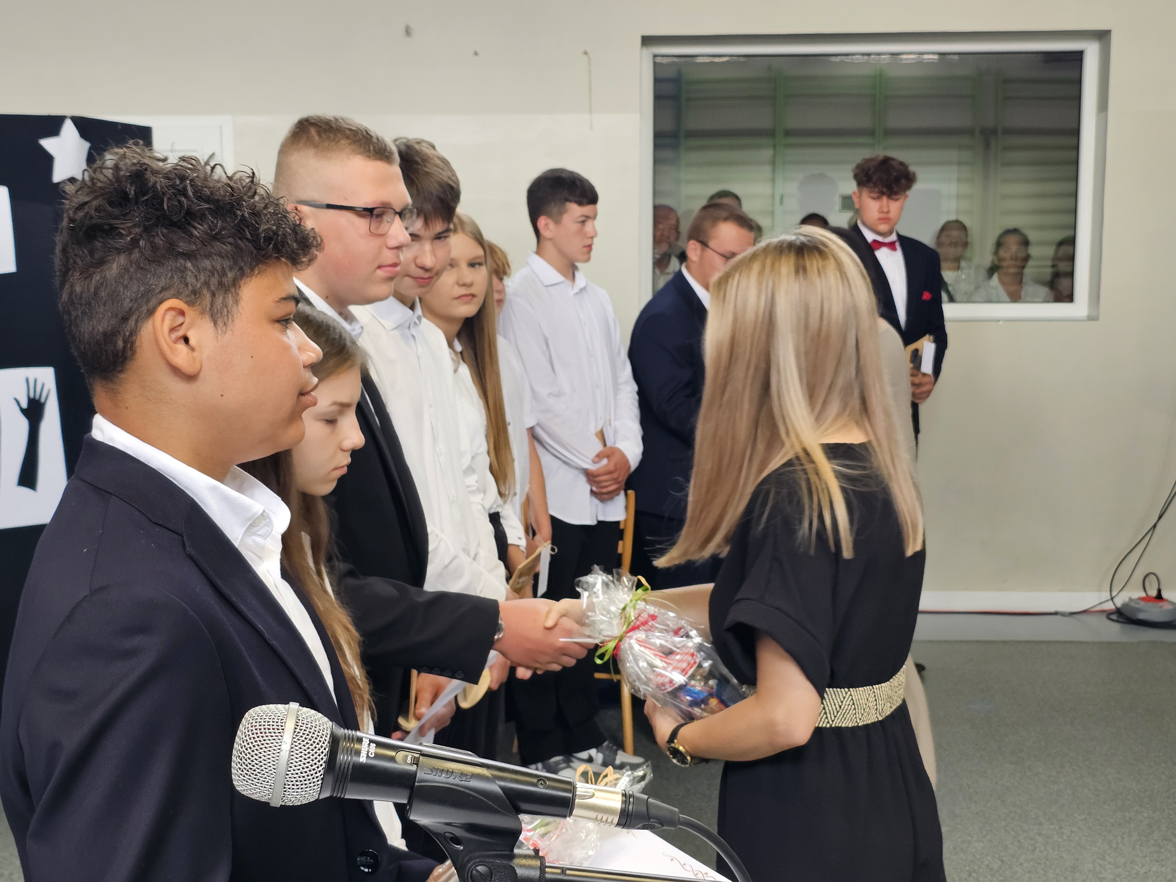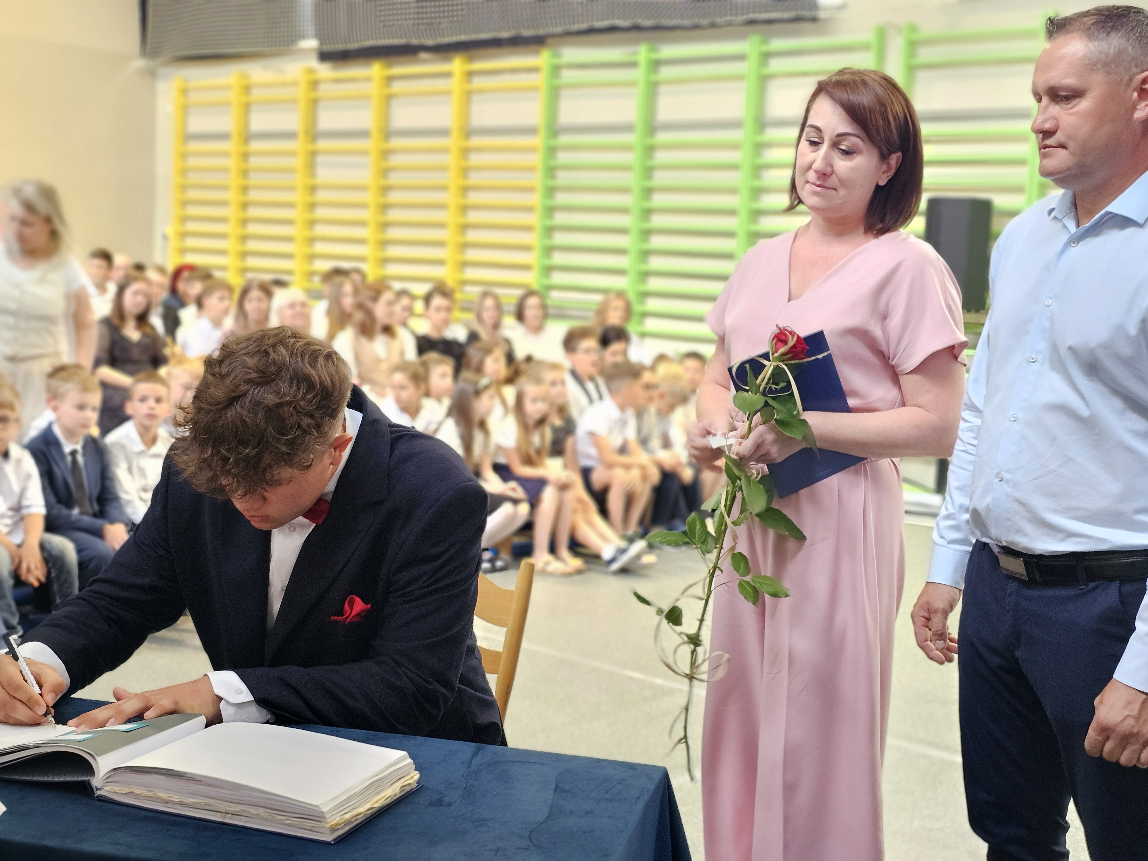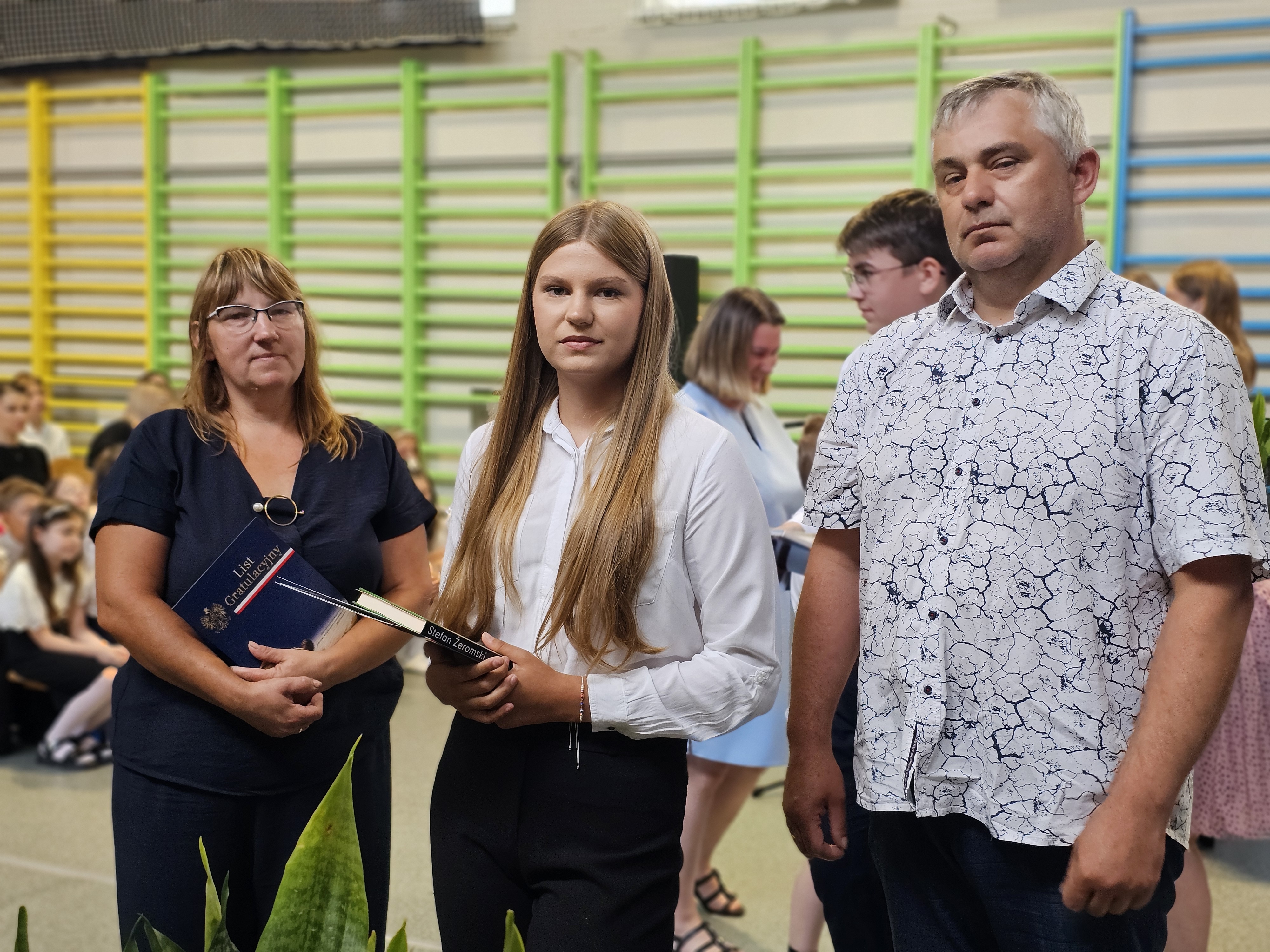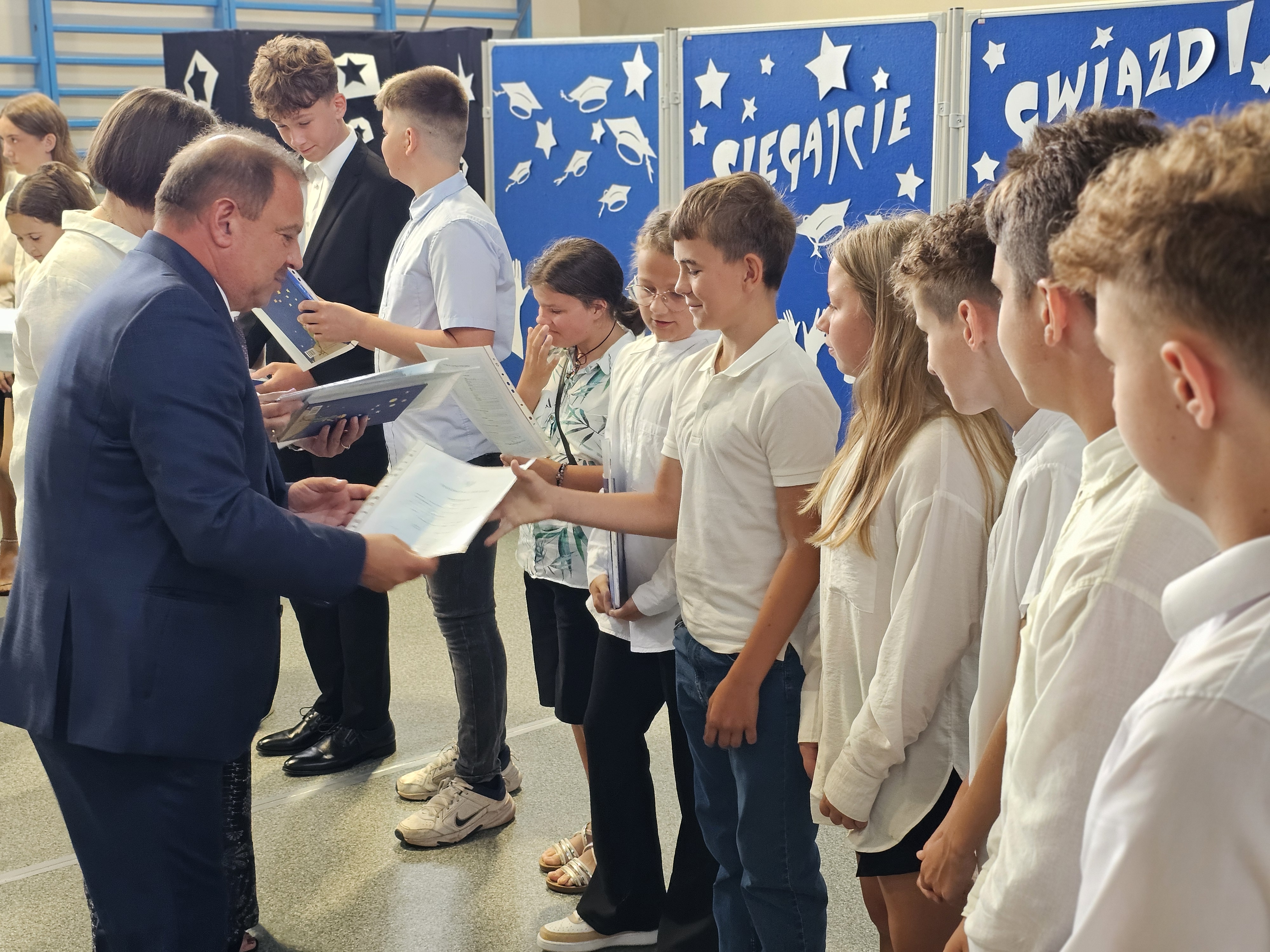 Kolejny piękny i pracowity rok szkolny za nami. Zakończenie roku to zawsze wzruszający czas podziękowań, podsumowań i pożegnań. Każdy chce coś powiedzieć, kogoś wyróżnić, o kimś wspomnieć, spróbować nie pominąć. To czas płynącej z serca nostalgii. Podczas uroczystej akademii starsze koleżanki i kolega powierzyli siódmoklasistom opiekę nad sztandarem szkoły. Odśpiewano „Mazurka Dąbrowskiego” i hymn szkoły. To bardzo uroczysty moment i niezwykle wzruszający. Następnie uczennice klasy czwartej podziękowały dyrektorowi szkoły i wszystkim nauczycielom za pracę, przekazywanie wiedzy, zrozumienie, serce, dobre słowo i zaangażowanie. Uczniowie klasy siódmej wraz z wychowawczynią pożegnali uczniów klasy ósmej. Popłynęły łzy wzruszenia, panowała piękna atmosfera. Absolwenci otrzymali statuetki za przyznane im tytuły, każdemu co do jego zasług znanych mniejszej i szerszej publiczności. Oczywiście z przymrużeniem oka. Upominkami dziękował wszystkim za współpracę również Samorząd Uczniowski. Pan dyrektor Tomasz Mocek, w swoim przemówieniu podsumował kończący się rok szkolny. Podziękował nauczycielom, pracownikom szkoły, rodzicom i uczniom za współpracę i życzył udanego i bezpiecznego wypoczynku. Swoje pięć minut mieli również uczniowie klasy ósmej żegnający się ze szkołą, wychowawczynią i nauczycielami oraz klasa trzecia, której uczniowie krótko, ale z humorem wspomnieli o swoich dwóch paniach. Piękne, ciepłe słowa do społeczności Szkoły Podstawowej im. Jana Pawła II w Lamkach skierował również wójt Gminy Ostrów Wielkopolski, pan Dariusz Pryczak. Następnie przystąpiono do wręczania świadectw, wyróżnień, listów gratulacyjnych i nagród książkowych. Te otrzymali zarówno uczniowie z wysoką średnią, jak i sportowcy kończący szkołę, a także dwoje uczniów z klasy pierwszej, którzy zdobyli tytuł Czytelników Roku w bibliotece szkolnej. Byli to: Zofia Wróbel i Antoni Wojciechowski. Wiele pięknych słów padło dziś podczas tego ostatniego w roku szkolnym spotkania. To właśnie ten czas, gdy można pobyć jeszcze przez chwilę razem, a potem już pożegnać się prawie na zawsze, powiedzieć żegnaj lub tylko do zobaczenia. Wszystkim bez wyjątku, pracownikom szkoły, rodzicom, uczniom i przyjaciołom, życzymy pięknych, słonecznych, radosnych, wymarzonych wakacji, spokojnego urlopu i aktywnego wypoczynku. Do zobaczenia wkrótce.