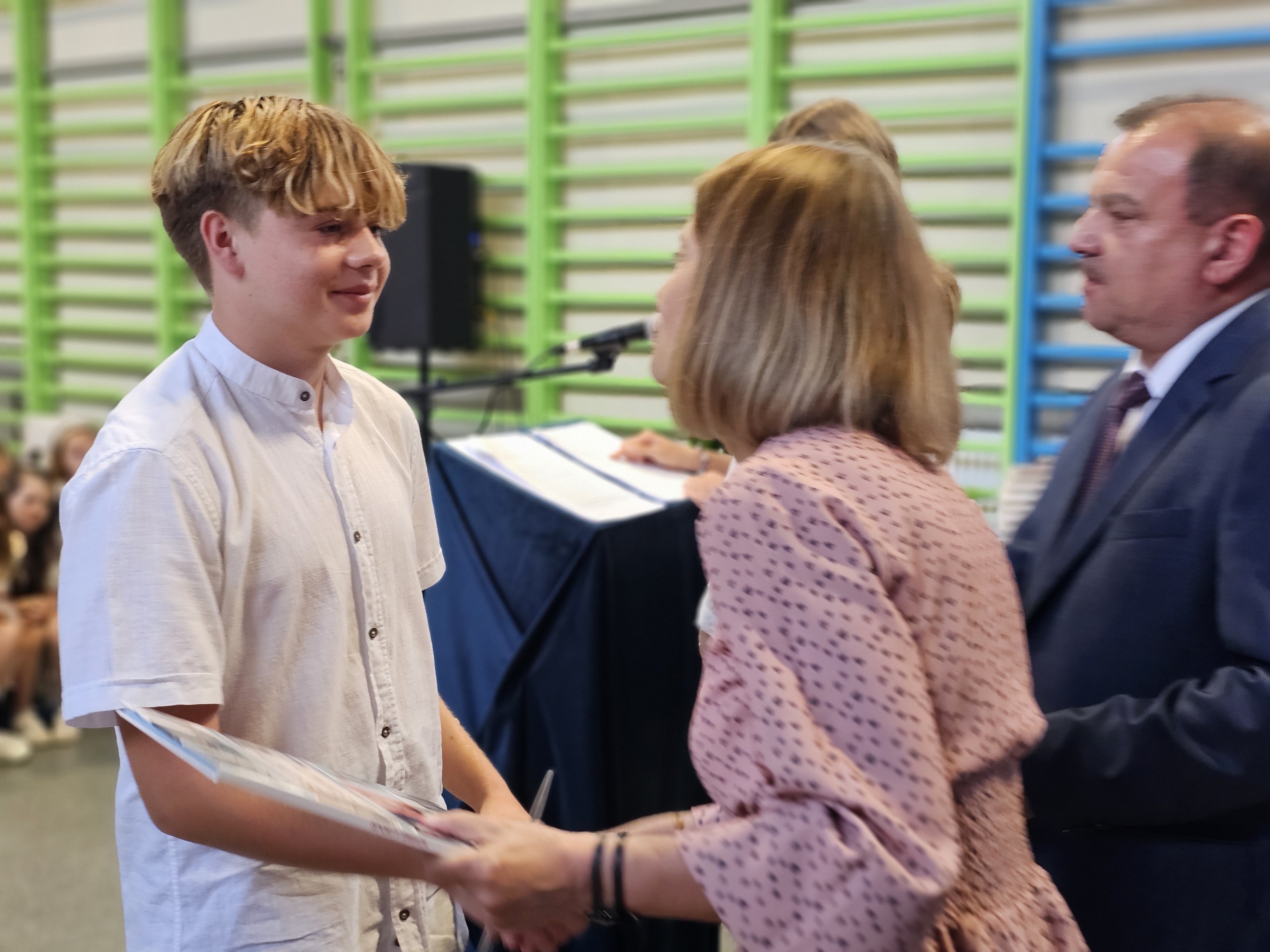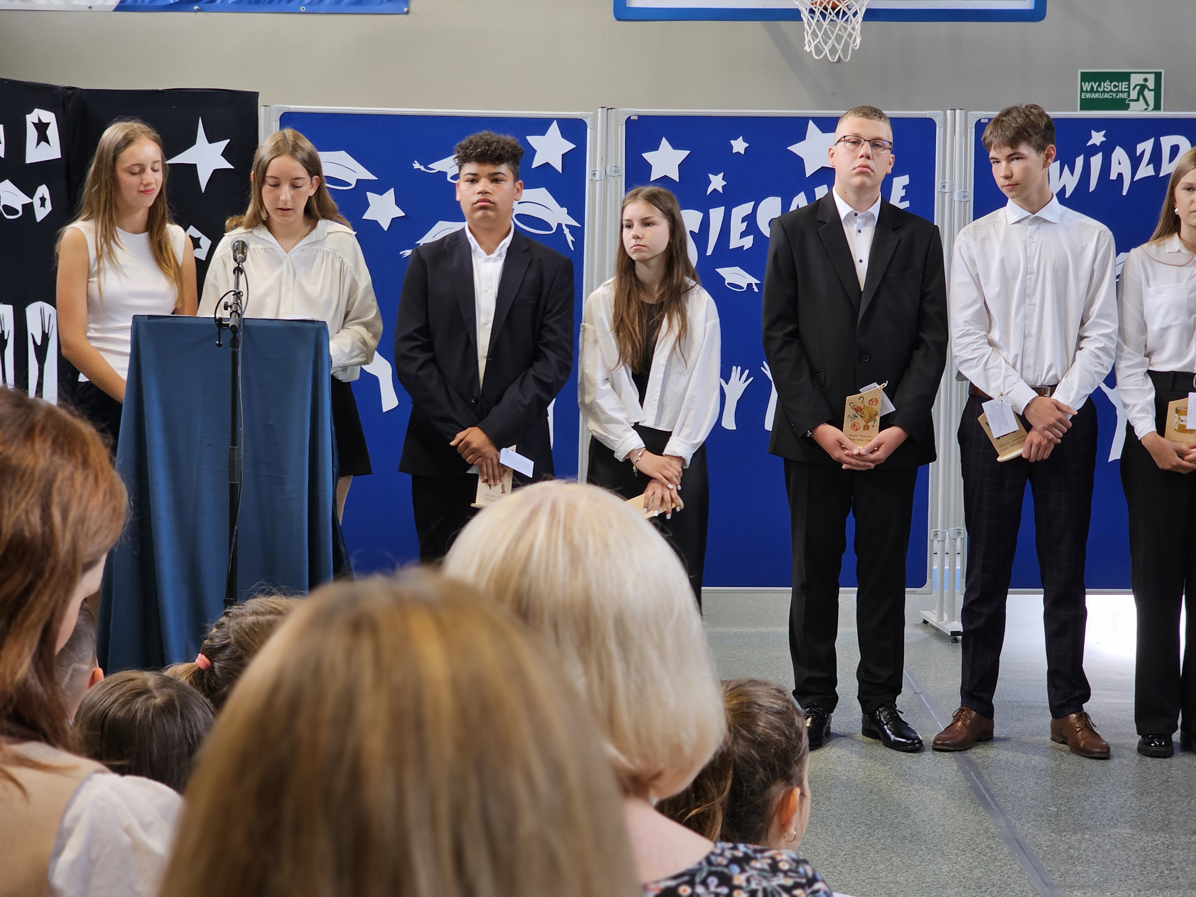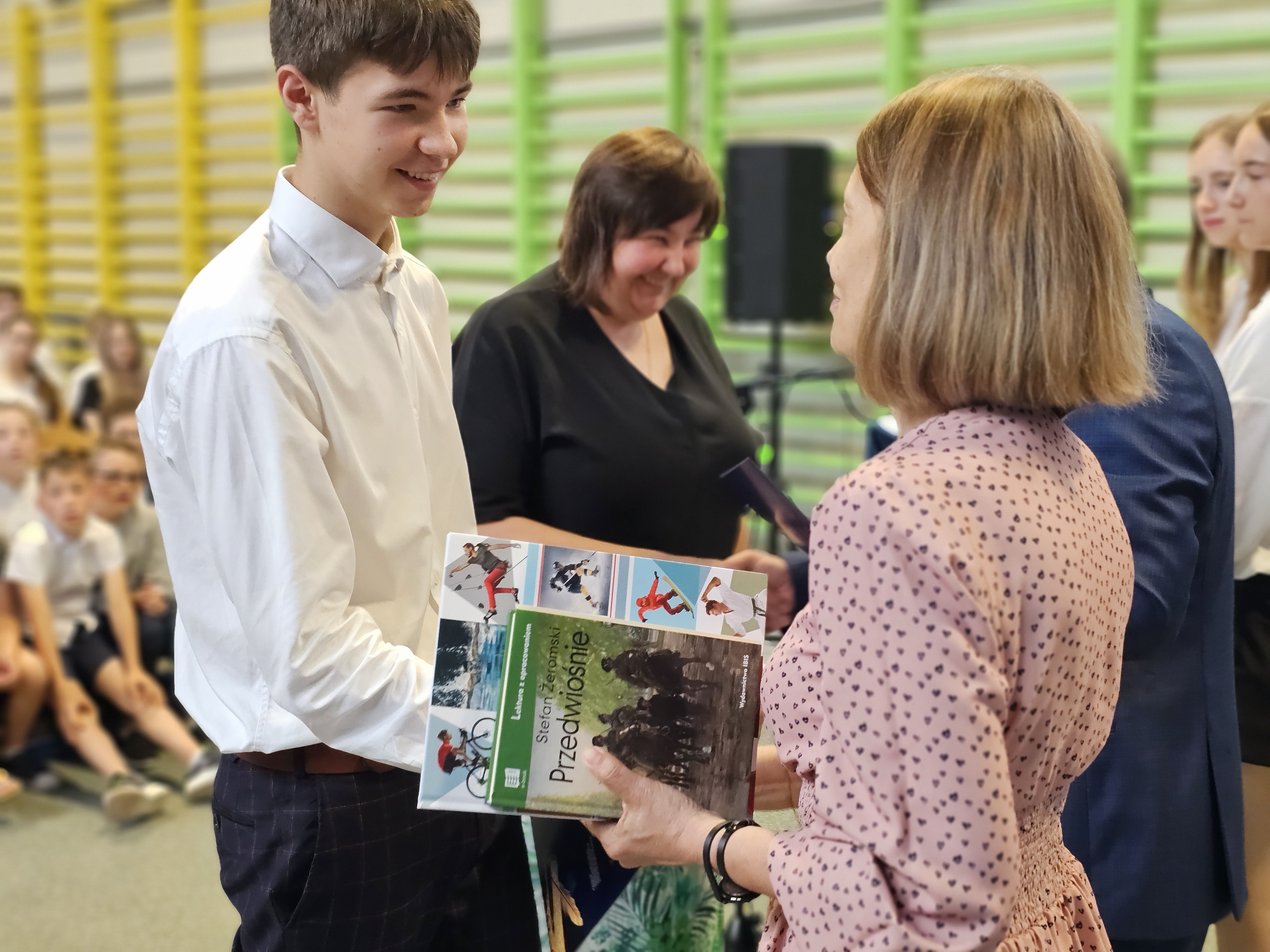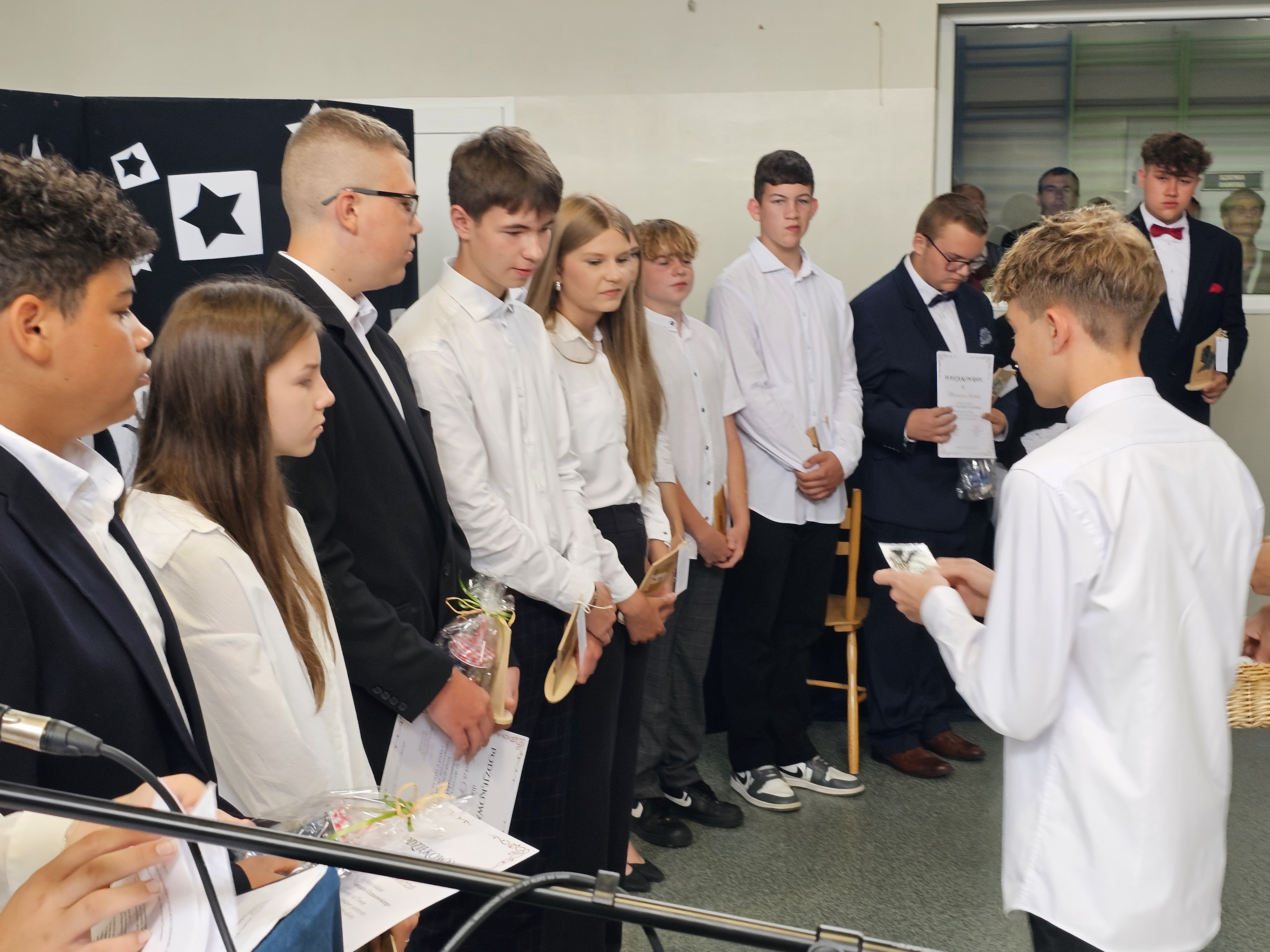 Kolejny piękny i pracowity rok szkolny za nami. Zakończenie roku to zawsze wzruszający czas podziękowań, podsumowań i pożegnań. Każdy chce coś powiedzieć, kogoś wyróżnić, o kimś wspomnieć, spróbować nie pominąć. To czas płynącej z serca nostalgii. Podczas uroczystej akademii starsze koleżanki i kolega powierzyli siódmoklasistom opiekę nad sztandarem szkoły. Odśpiewano „Mazurka Dąbrowskiego” i hymn szkoły. To bardzo uroczysty moment i niezwykle wzruszający. Następnie uczennice klasy czwartej podziękowały dyrektorowi szkoły i wszystkim nauczycielom za pracę, przekazywanie wiedzy, zrozumienie, serce, dobre słowo i zaangażowanie. Uczniowie klasy siódmej wraz z wychowawczynią pożegnali uczniów klasy ósmej. Popłynęły łzy wzruszenia, panowała piękna atmosfera. Absolwenci otrzymali statuetki za przyznane im tytuły, każdemu co do jego zasług znanych mniejszej i szerszej publiczności. Oczywiście z przymrużeniem oka. Upominkami dziękował wszystkim za współpracę również Samorząd Uczniowski. Pan dyrektor Tomasz Mocek, w swoim przemówieniu podsumował kończący się rok szkolny. Podziękował nauczycielom, pracownikom szkoły, rodzicom i uczniom za współpracę i życzył udanego i bezpiecznego wypoczynku. Swoje pięć minut mieli również uczniowie klasy ósmej żegnający się ze szkołą, wychowawczynią i nauczycielami oraz klasa trzecia, której uczniowie krótko, ale z humorem wspomnieli o swoich dwóch paniach. Piękne, ciepłe słowa do społeczności Szkoły Podstawowej im. Jana Pawła II w Lamkach skierował również wójt Gminy Ostrów Wielkopolski, pan Dariusz Pryczak. Następnie przystąpiono do wręczania świadectw, wyróżnień, listów gratulacyjnych i nagród książkowych. Te otrzymali zarówno uczniowie z wysoką średnią, jak i sportowcy kończący szkołę, a także dwoje uczniów z klasy pierwszej, którzy zdobyli tytuł Czytelników Roku w bibliotece szkolnej. Byli to: Zofia Wróbel i Antoni Wojciechowski. Wiele pięknych słów padło dziś podczas tego ostatniego w roku szkolnym spotkania. To właśnie ten czas, gdy można pobyć jeszcze przez chwilę razem, a potem już pożegnać się prawie na zawsze, powiedzieć żegnaj lub tylko do zobaczenia. Wszystkim bez wyjątku, pracownikom szkoły, rodzicom, uczniom i przyjaciołom, życzymy pięknych, słonecznych, radosnych, wymarzonych wakacji, spokojnego urlopu i aktywnego wypoczynku. Do zobaczenia wkrótce.