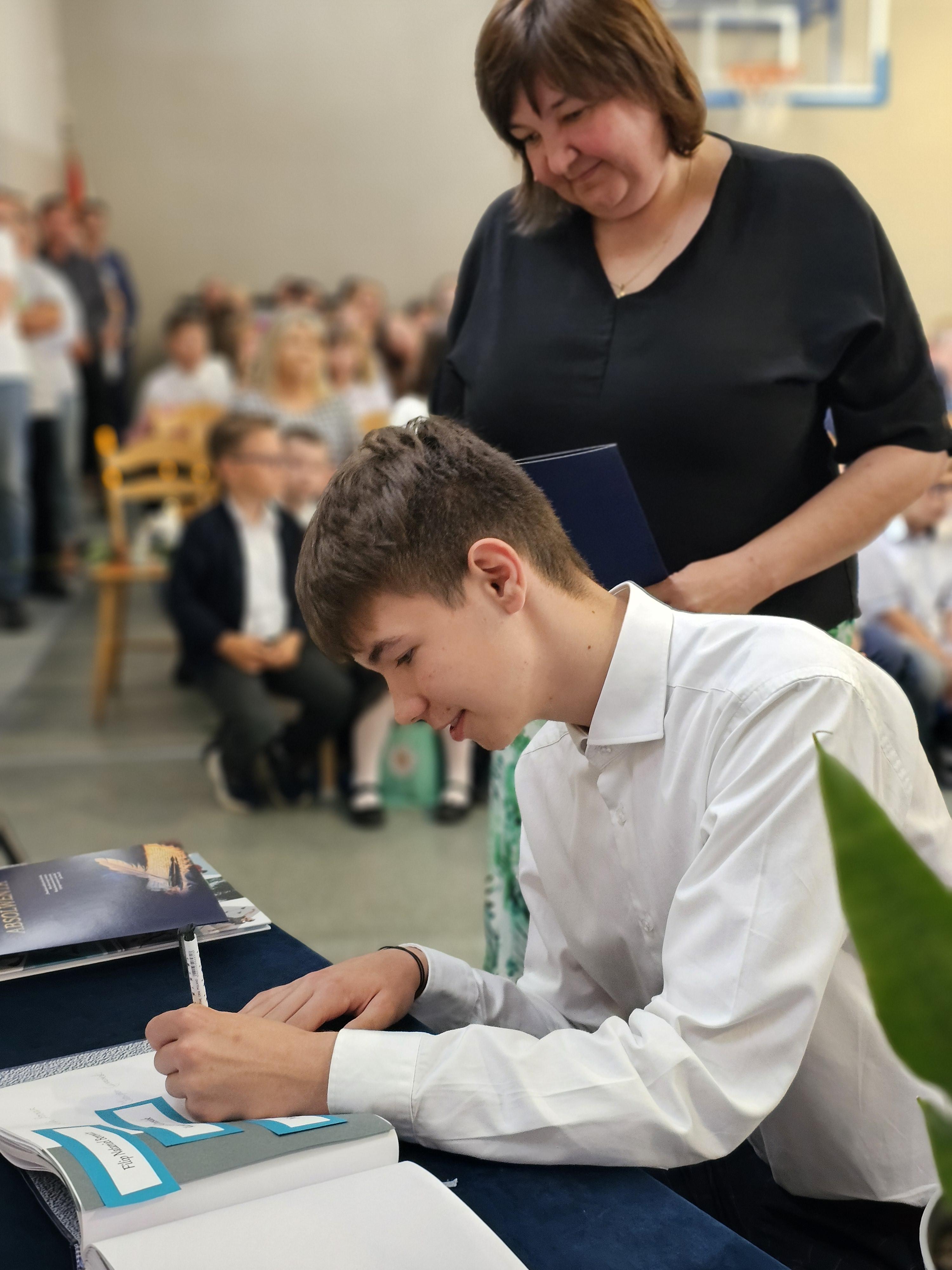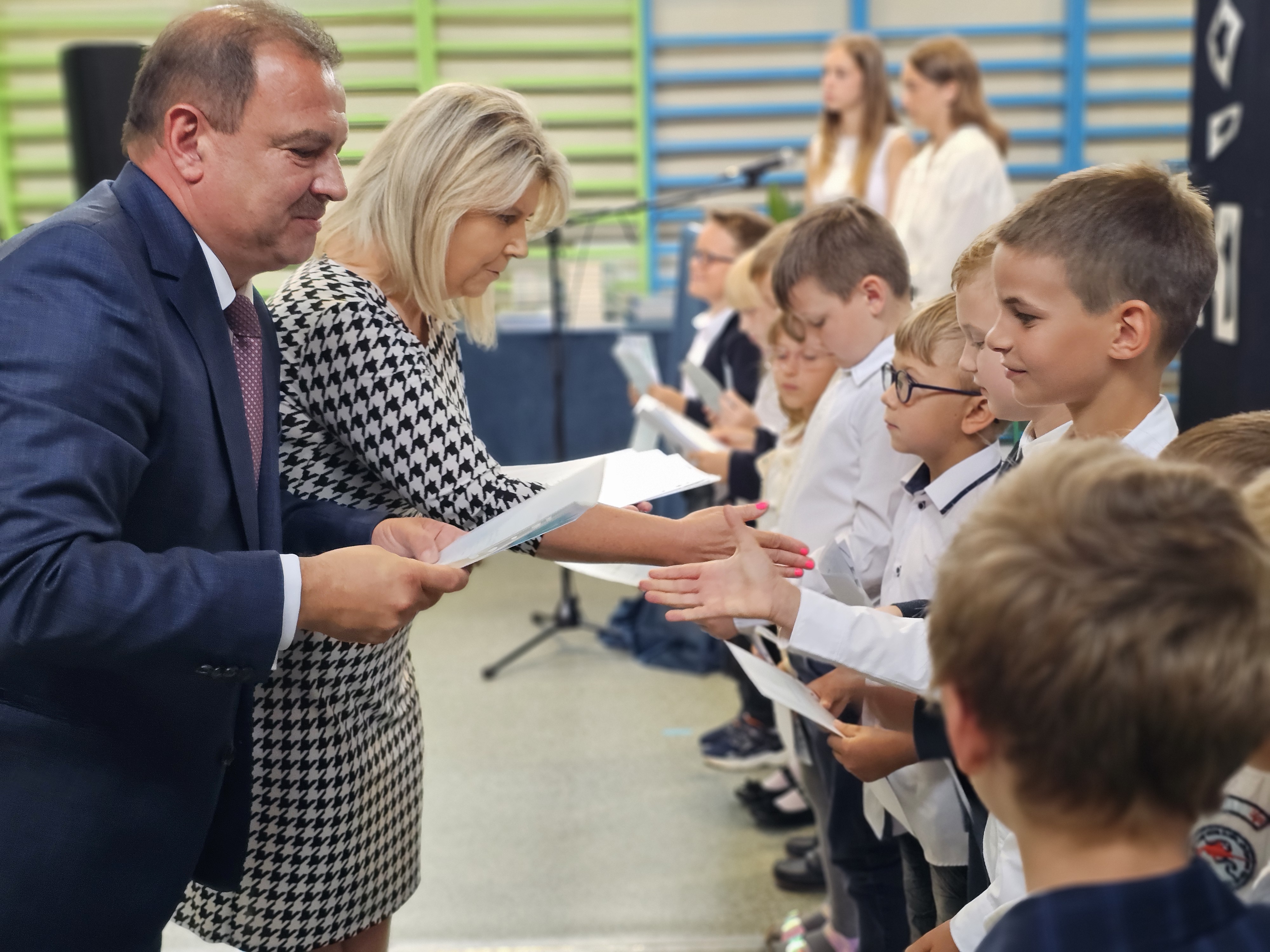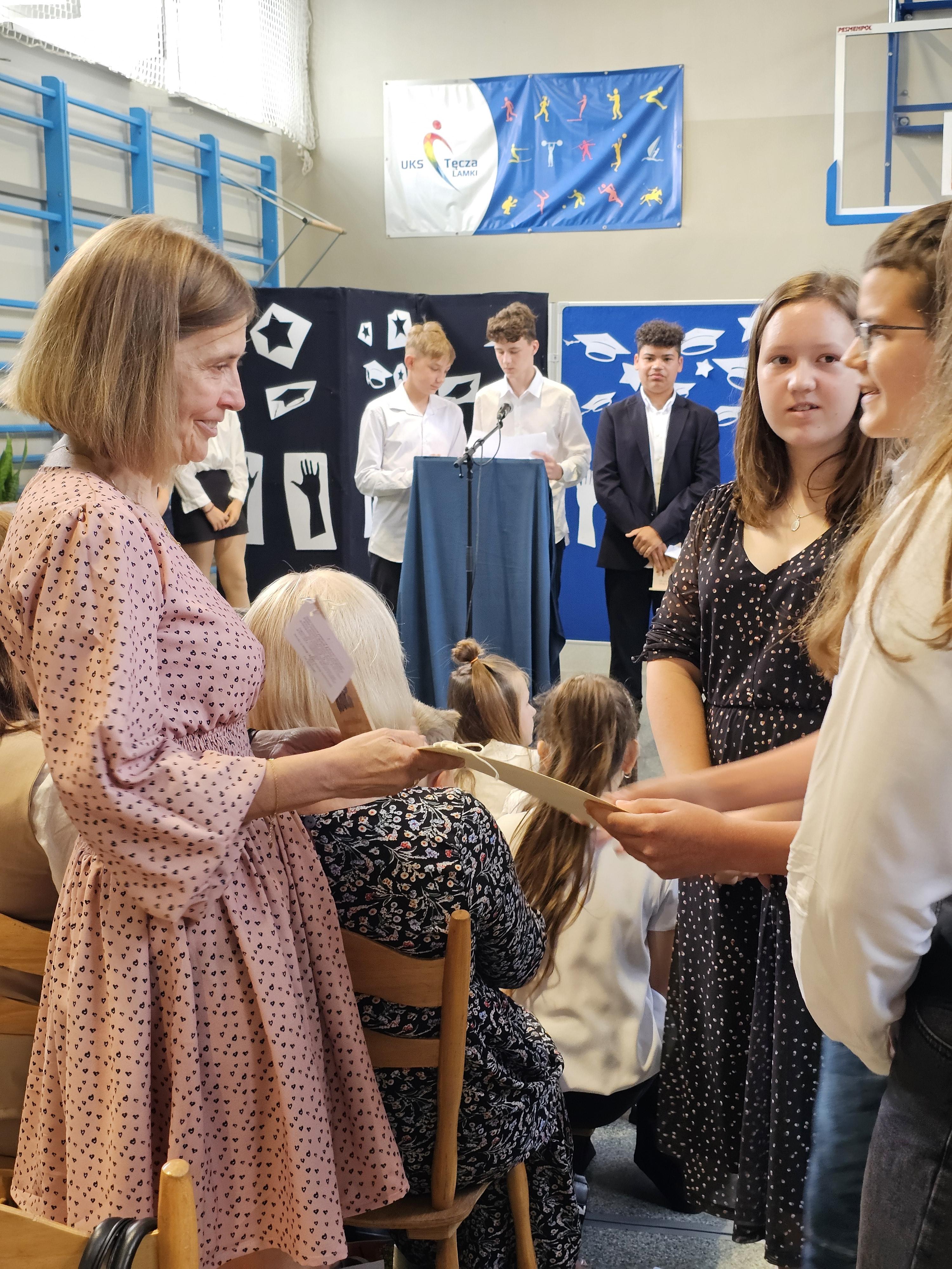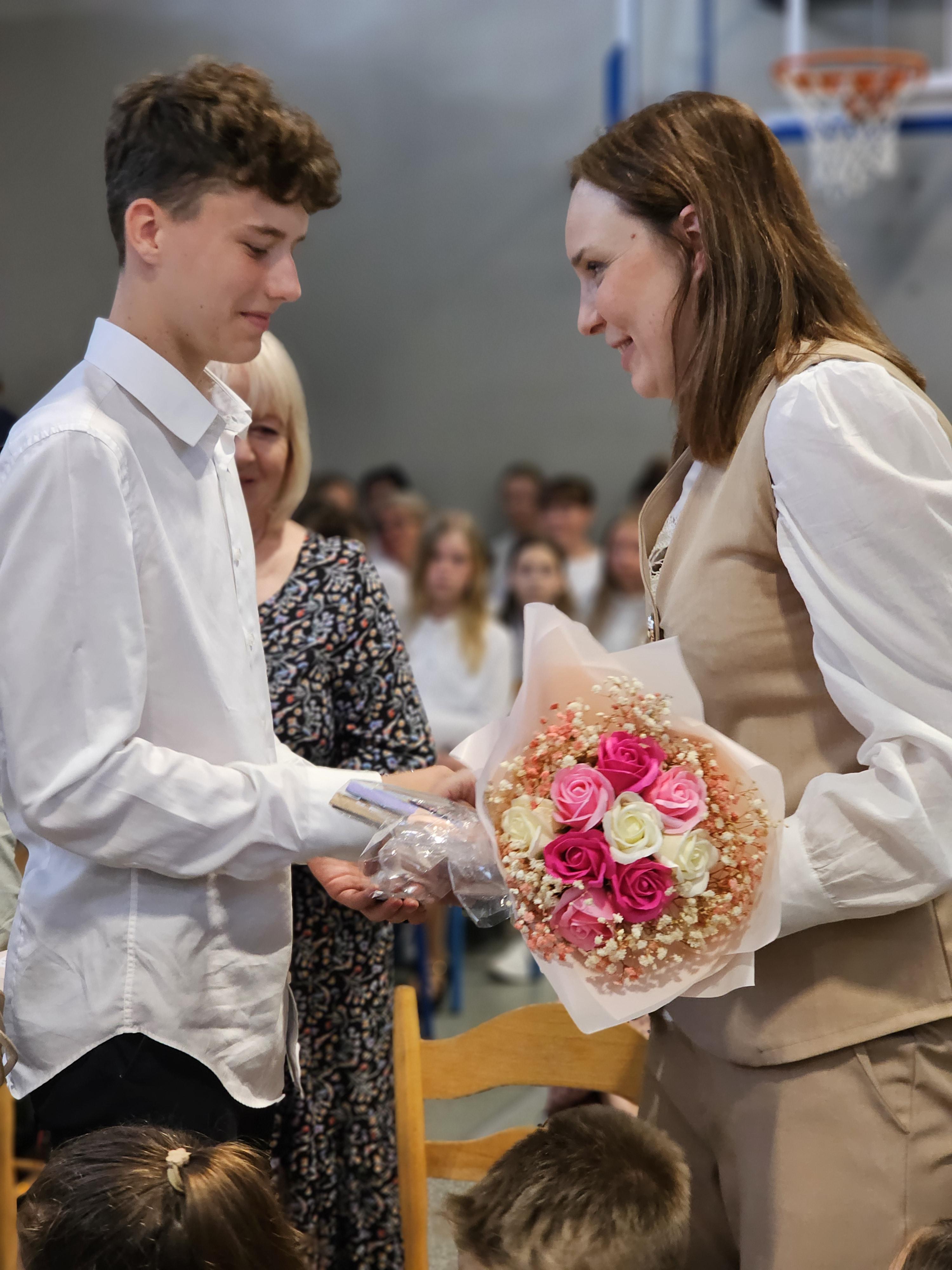 Kolejny piękny i pracowity rok szkolny za nami. Zakończenie roku to zawsze wzruszający czas podziękowań, podsumowań i pożegnań. Każdy chce coś powiedzieć, kogoś wyróżnić, o kimś wspomnieć, spróbować nie pominąć. To czas płynącej z serca nostalgii. Podczas uroczystej akademii starsze koleżanki i kolega powierzyli siódmoklasistom opiekę nad sztandarem szkoły. Odśpiewano „Mazurka Dąbrowskiego” i hymn szkoły. To bardzo uroczysty moment i niezwykle wzruszający. Następnie uczennice klasy czwartej podziękowały dyrektorowi szkoły i wszystkim nauczycielom za pracę, przekazywanie wiedzy, zrozumienie, serce, dobre słowo i zaangażowanie. Uczniowie klasy siódmej wraz z wychowawczynią pożegnali uczniów klasy ósmej. Popłynęły łzy wzruszenia, panowała piękna atmosfera. Absolwenci otrzymali statuetki za przyznane im tytuły, każdemu co do jego zasług znanych mniejszej i szerszej publiczności. Oczywiście z przymrużeniem oka. Upominkami dziękował wszystkim za współpracę również Samorząd Uczniowski. Pan dyrektor Tomasz Mocek, w swoim przemówieniu podsumował kończący się rok szkolny. Podziękował nauczycielom, pracownikom szkoły, rodzicom i uczniom za współpracę i życzył udanego i bezpiecznego wypoczynku. Swoje pięć minut mieli również uczniowie klasy ósmej żegnający się ze szkołą, wychowawczynią i nauczycielami oraz klasa trzecia, której uczniowie krótko, ale z humorem wspomnieli o swoich dwóch paniach. Piękne, ciepłe słowa do społeczności Szkoły Podstawowej im. Jana Pawła II w Lamkach skierował również wójt Gminy Ostrów Wielkopolski, pan Dariusz Pryczak. Następnie przystąpiono do wręczania świadectw, wyróżnień, listów gratulacyjnych i nagród książkowych. Te otrzymali zarówno uczniowie z wysoką średnią, jak i sportowcy kończący szkołę, a także dwoje uczniów z klasy pierwszej, którzy zdobyli tytuł Czytelników Roku w bibliotece szkolnej. Byli to: Zofia Wróbel i Antoni Wojciechowski. Wiele pięknych słów padło dziś podczas tego ostatniego w roku szkolnym spotkania. To właśnie ten czas, gdy można pobyć jeszcze przez chwilę razem, a potem już pożegnać się prawie na zawsze, powiedzieć żegnaj lub tylko do zobaczenia. Wszystkim bez wyjątku, pracownikom szkoły, rodzicom, uczniom i przyjaciołom, życzymy pięknych, słonecznych, radosnych, wymarzonych wakacji, spokojnego urlopu i aktywnego wypoczynku. Do zobaczenia wkrótce.